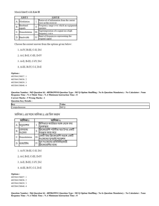 A. Modulation I. Retrieval of information from the carrier wave at the receiver