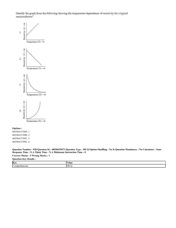 Identify the graph from the following showing the temperature dependence of resistivity for a typical semiconductor?