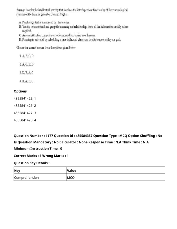 Arrange in order the intellectual activity that involves the interdependent functioning of three neurological systems of the brain as given by Das and Naglieri: