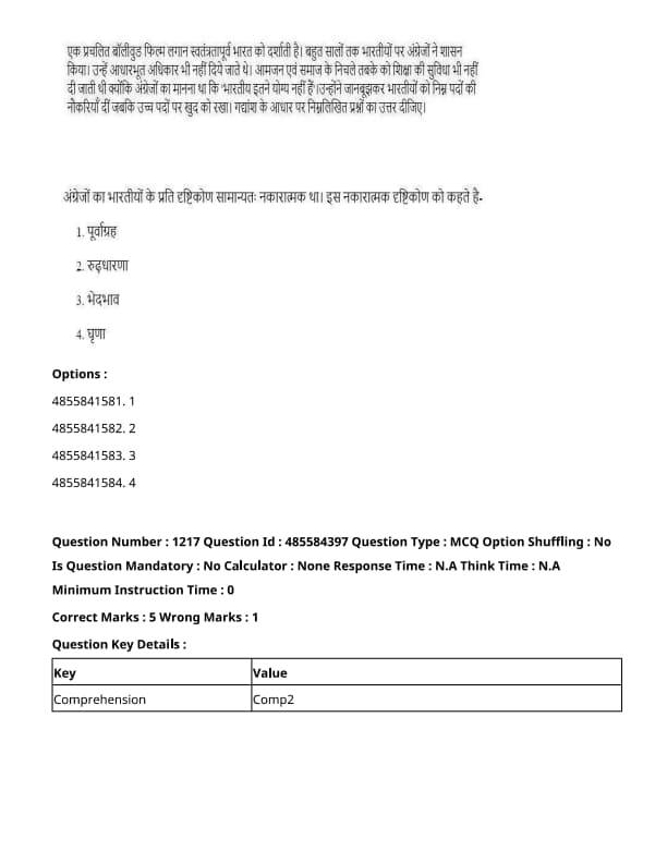 Britishers' attitude towards Indians was usually negative. Such negative attitude is termed as ...........