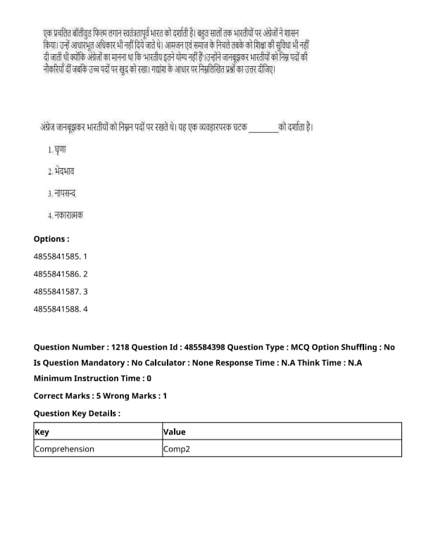 Britishers deliberately gave Indians unqualified jobs. This shows ............., a behavioural component.