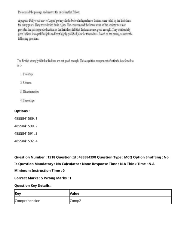 The British strongly felt that Indians are not good enough. This cognitive component of attitude is referred to as: