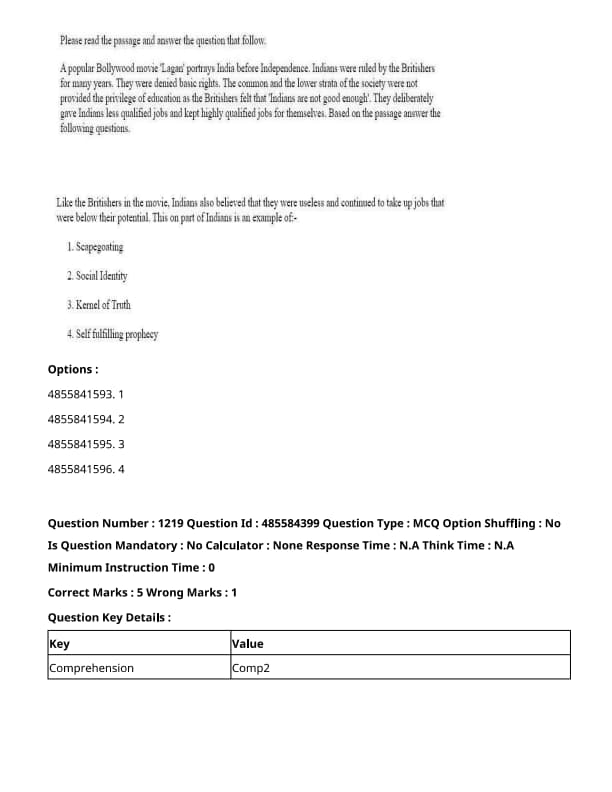 Like the Britishers in the movie, Indians also believed that they were useless and continued to take up jobs that were below their potential. This on part of Indians is an example of: