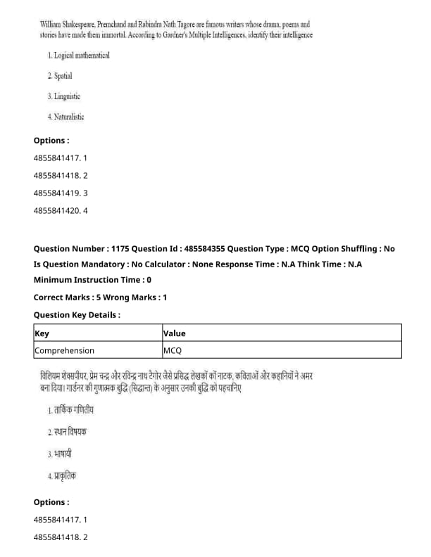William Shakespeare, Premchand and Rabindra Nath Tagore are famous writers whose drama, poems, and stories have made them immortal. According to Gardner's Multiple Intelligences, identify their intelligence: