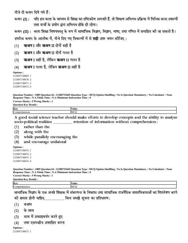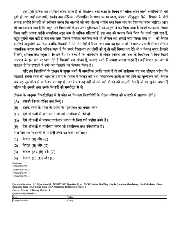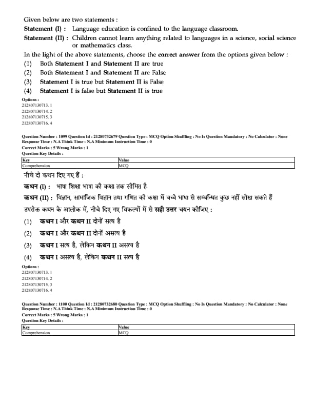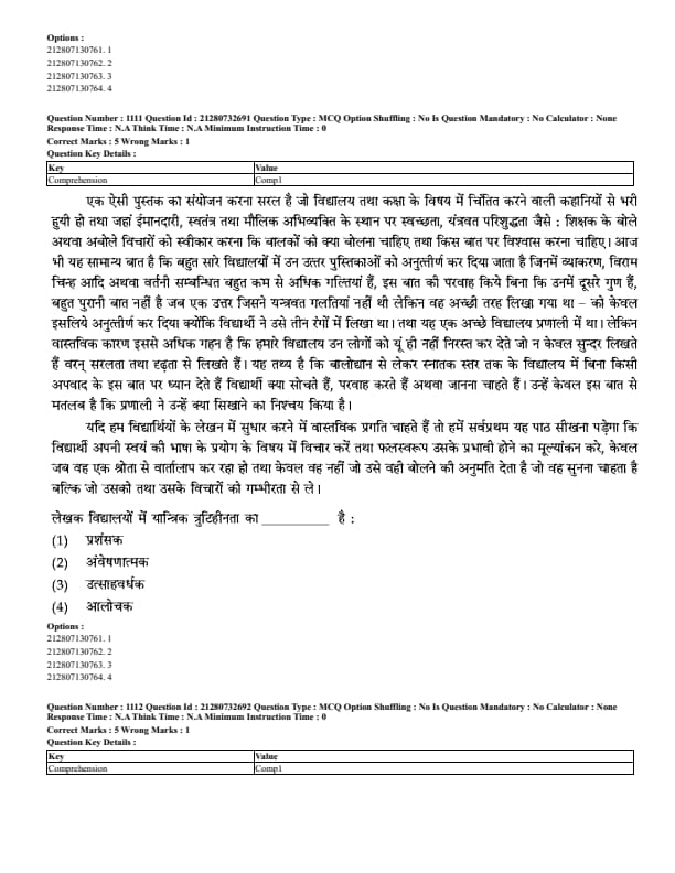 CUET Teaching Aptitude Question Paper 2023 PDF Download