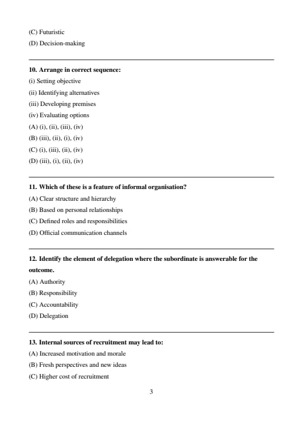 (A) Division of work, (B) Departmentalisation, (C) Assignment of duties, (D) Authority relationships