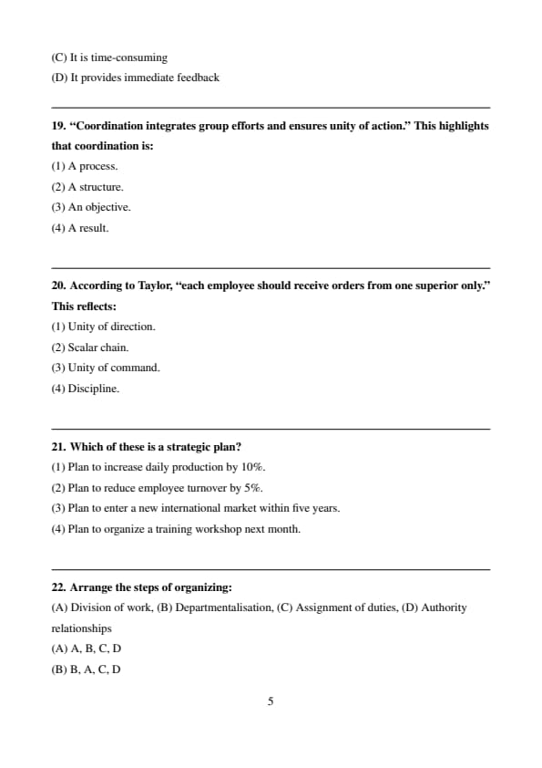 According to Taylor, “each employee should receive orders from one superior only.” This reflects: