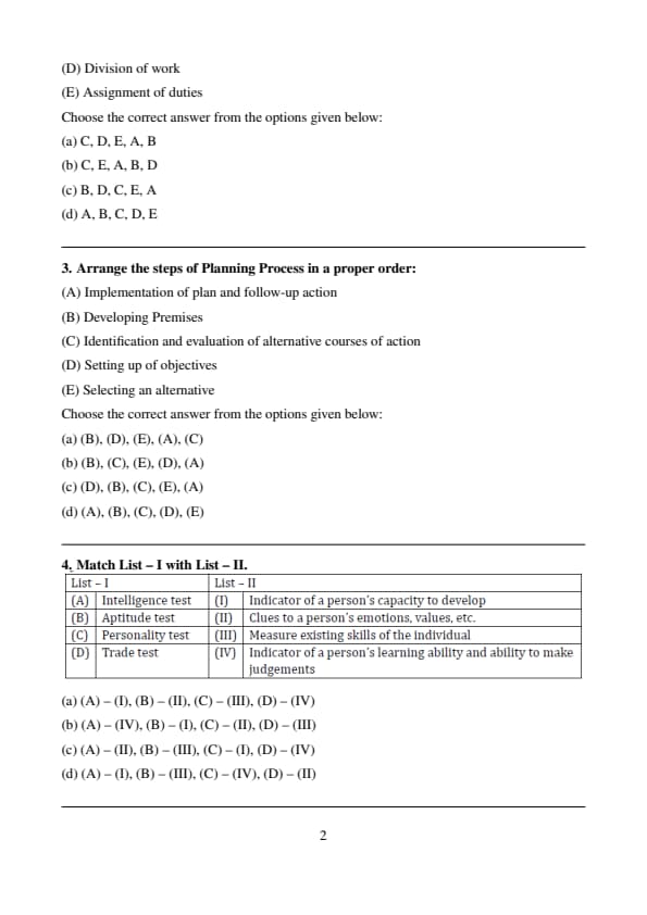 (D) - (III): Trade tests assess a person’s practical, hands-on skills required for specific jobs, such as carpentry, electrical work, etc.