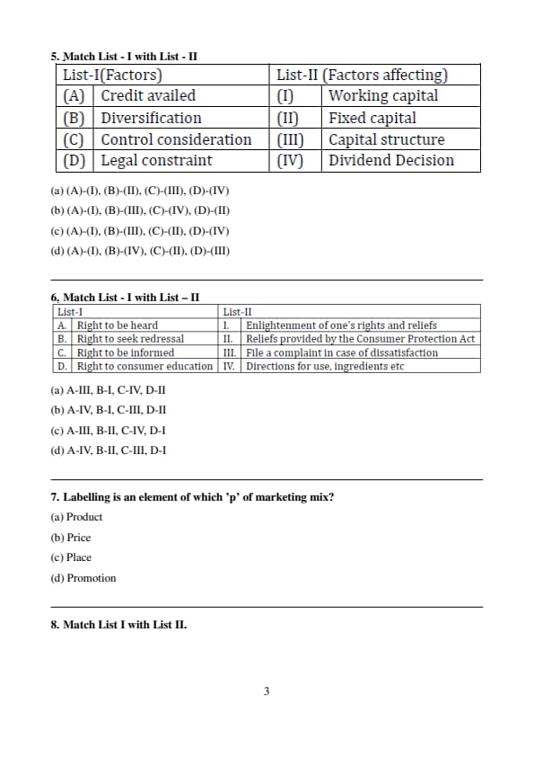 (B) - (II): Right to seek redressal enables consumers to seek remedies or compensation when they are wronged, through legal means or consumer protection channels.