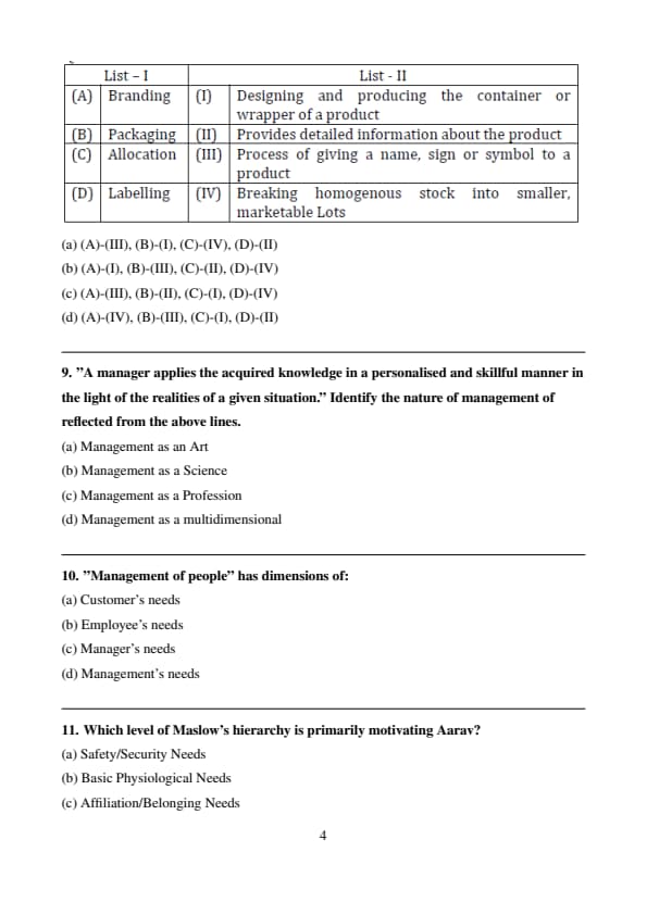 (D) - (II): Labeling provides consumers with detailed information about the product, including its ingredients, instructions, and other relevant information that aids in decision-making. Quick Tip: Brand = Name/Symbol. Package = Container/Wrapper. Label = Information. Allocation = Managing Stock.