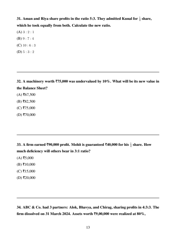 - Partner 1 bears = \(3 \times Rs.4,375 = Rs.13,125\)