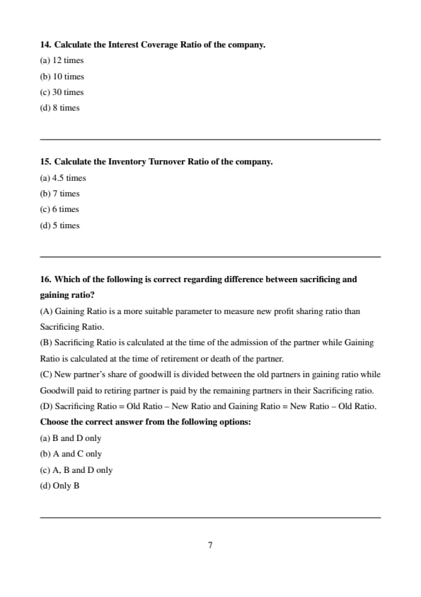 (D) Sacrificing Ratio = Old Ratio – New Ratio and Gaining Ratio = New Ratio – Old Ratio.