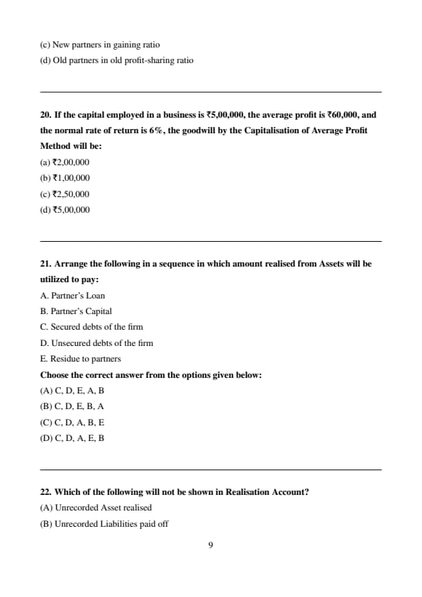 firm dissolved on 31 March 2024. Assets worth Rs.9,00,000 were realized at 80%,