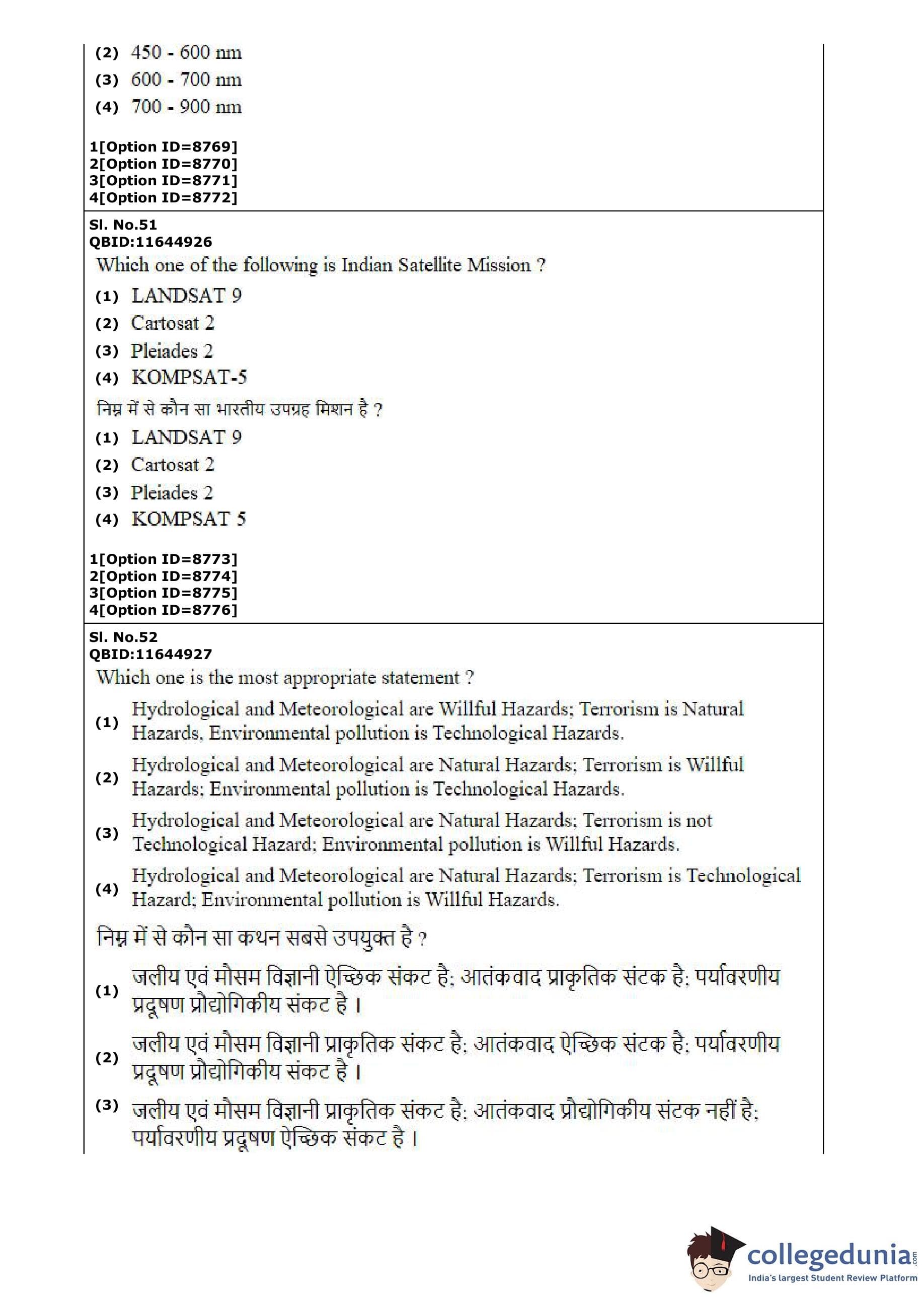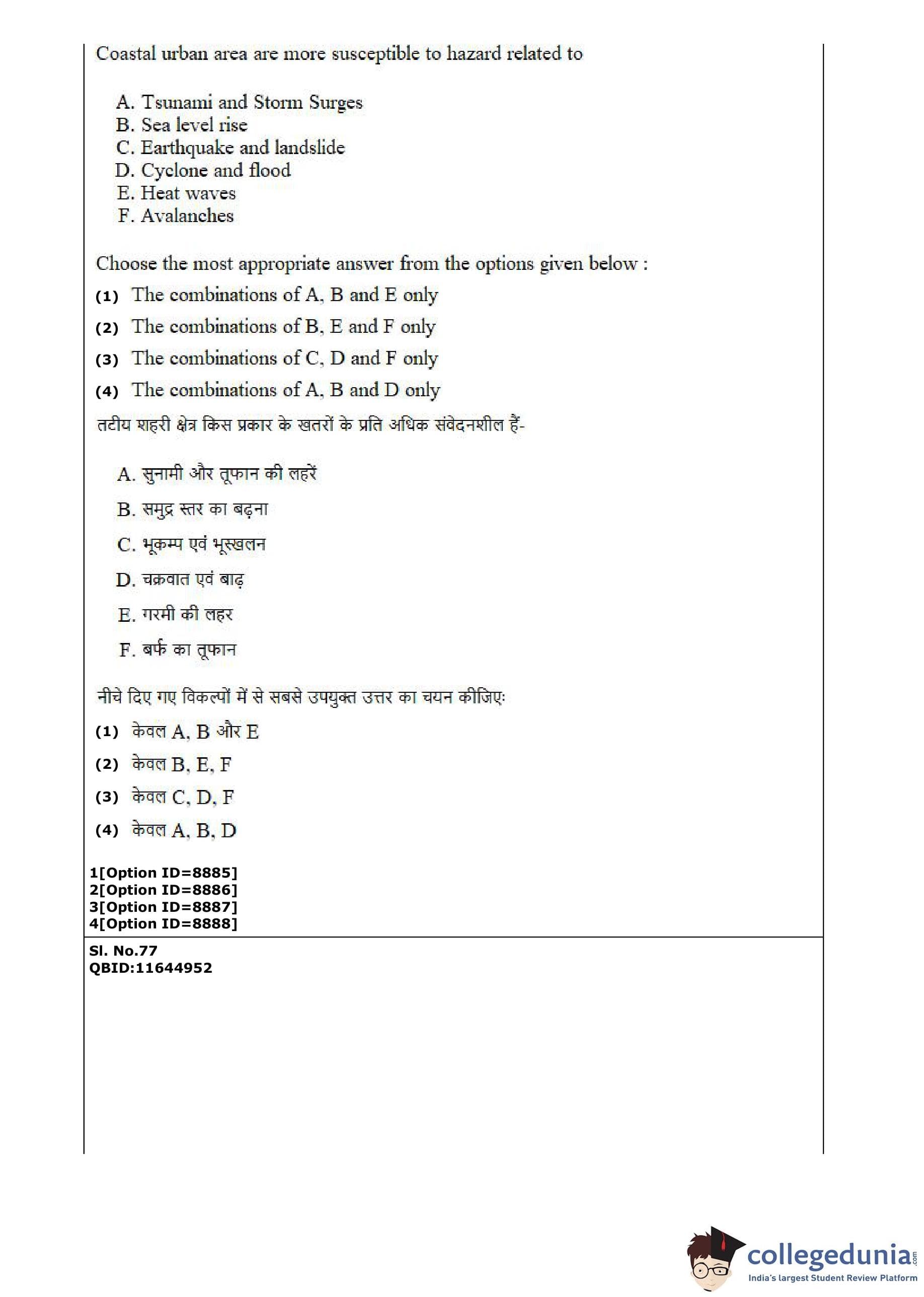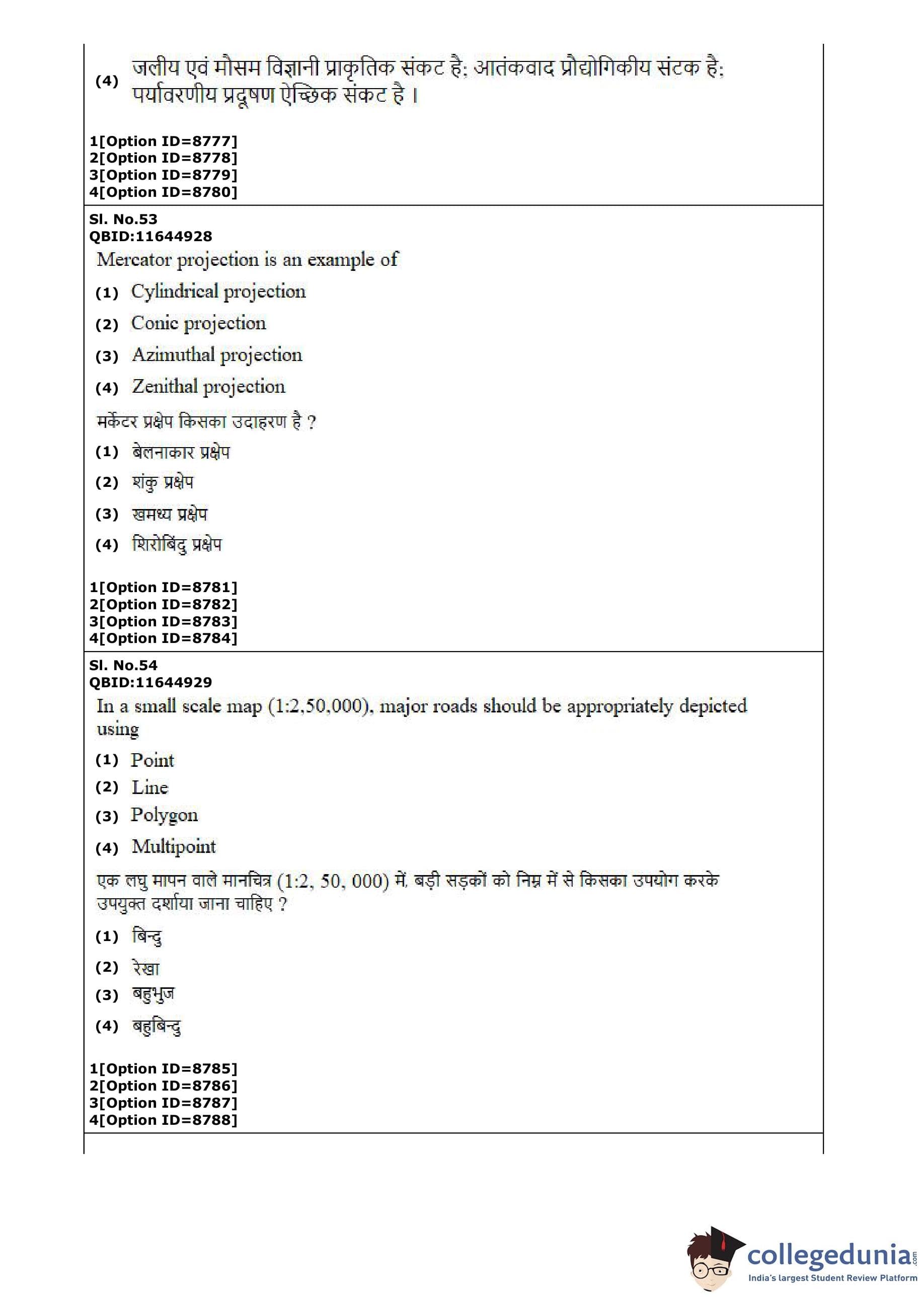 CUET PG 2022 Applied Geography and Geoinformatics Question Paper with Answer Key PDF