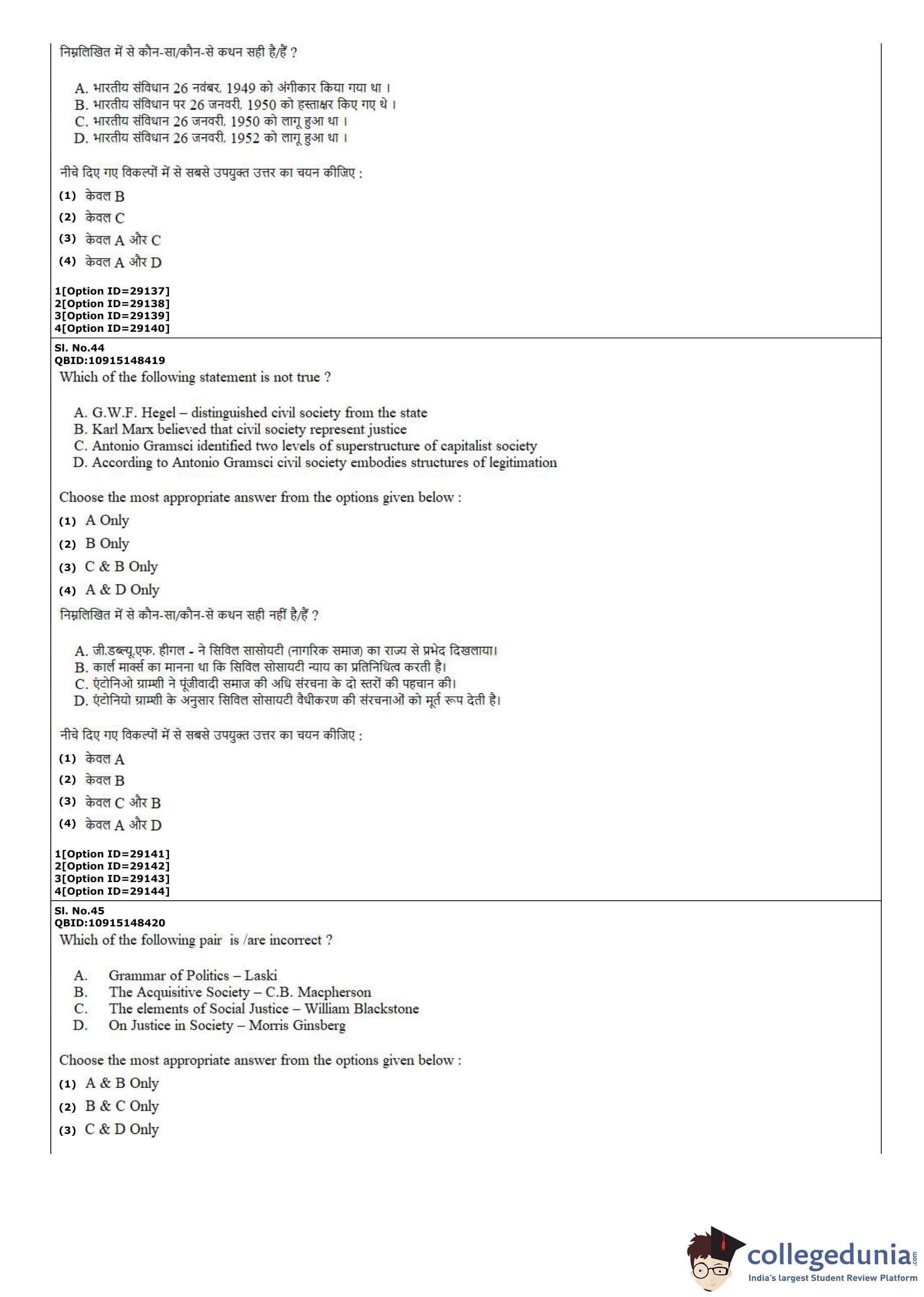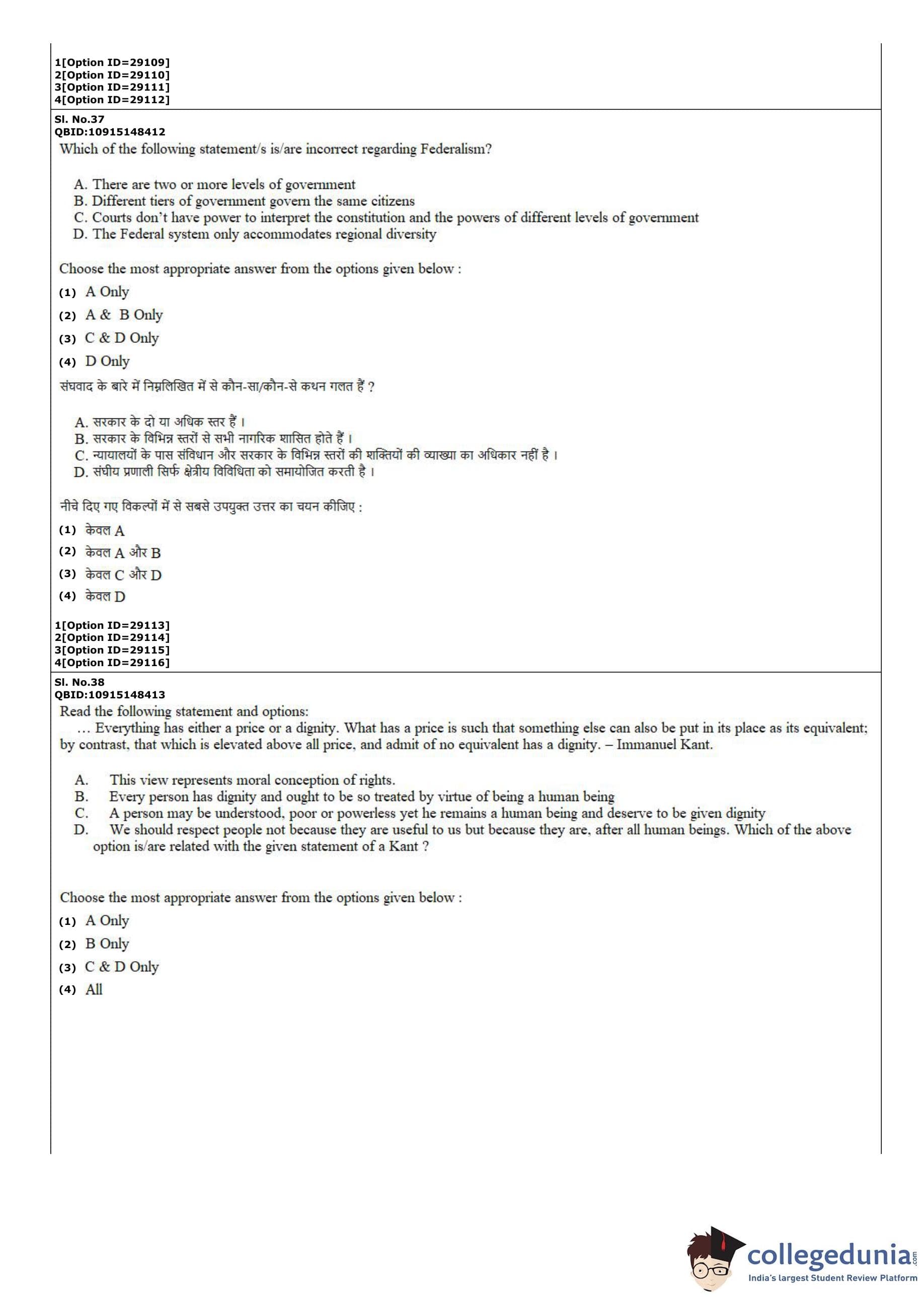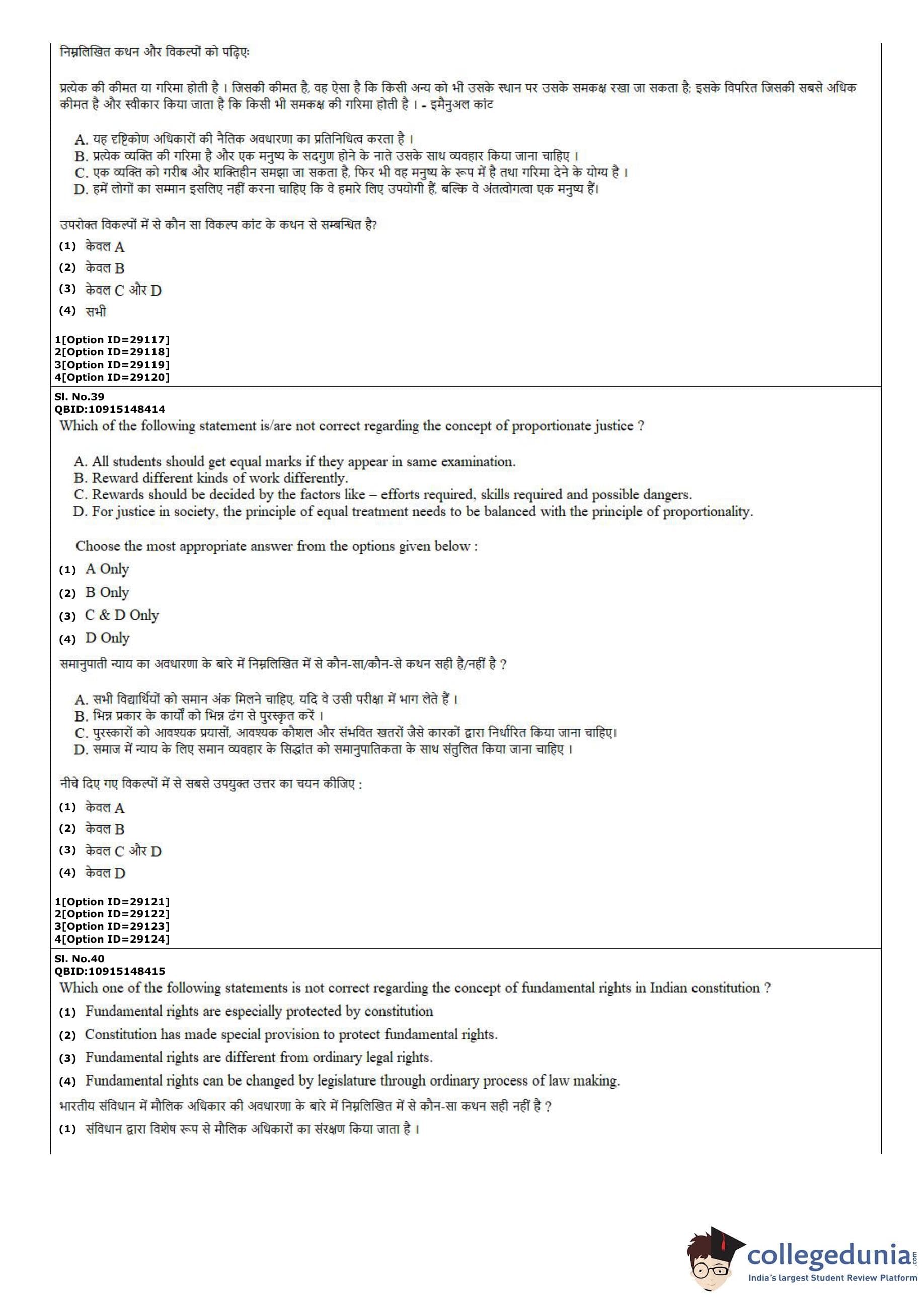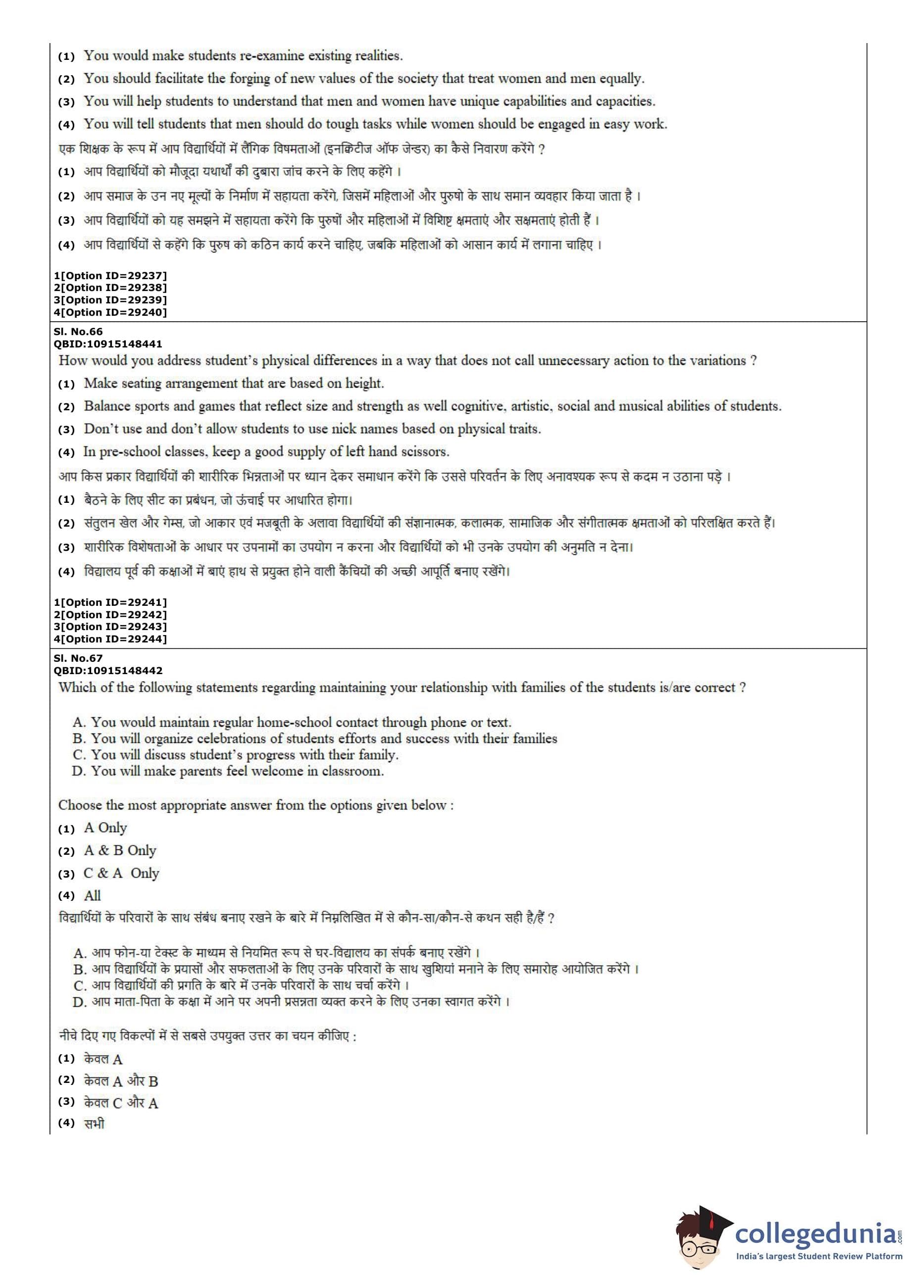 CUET PG 2022 B.Ed Humanities and Social Sciences Question Paper with Answer Key PDF