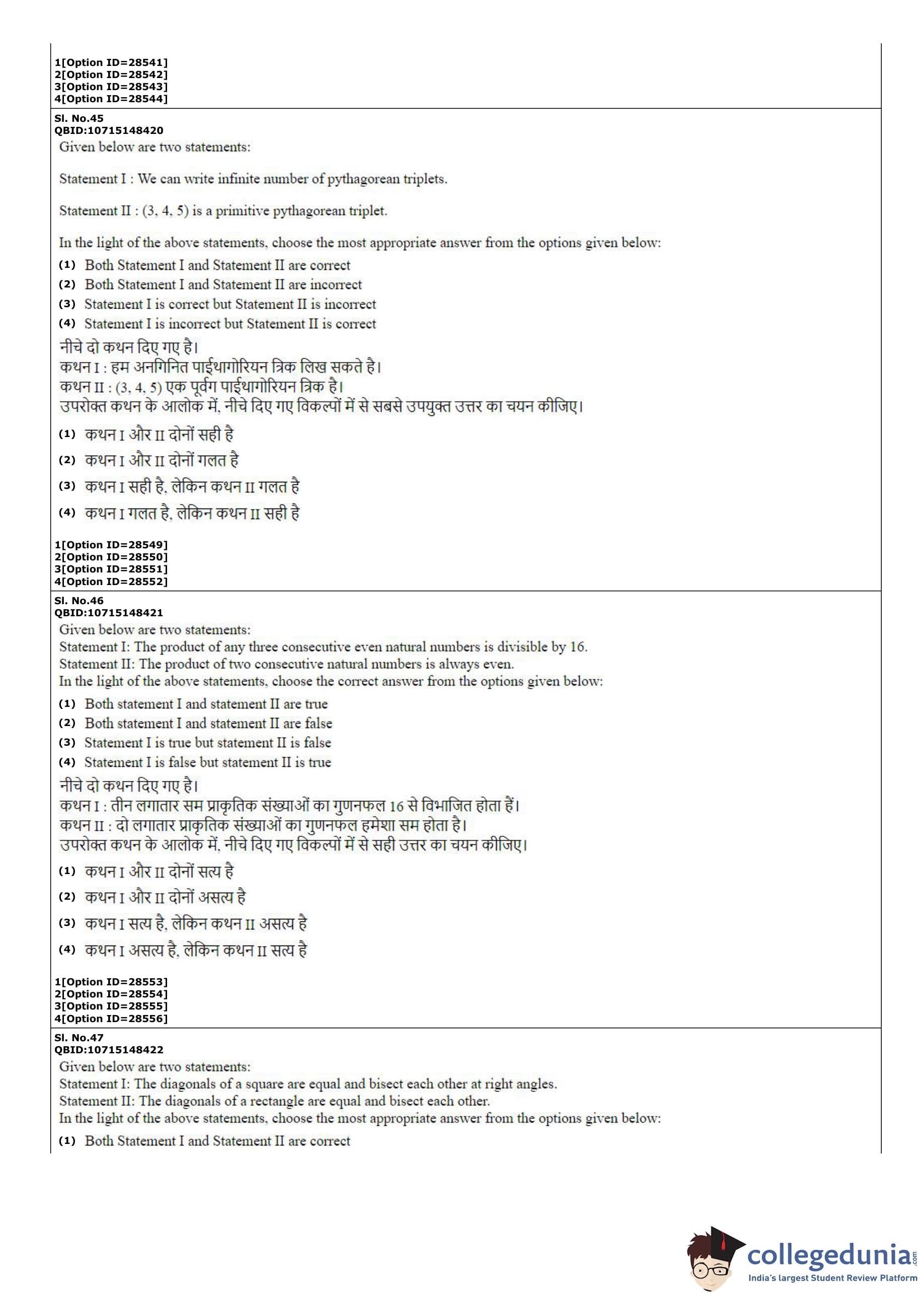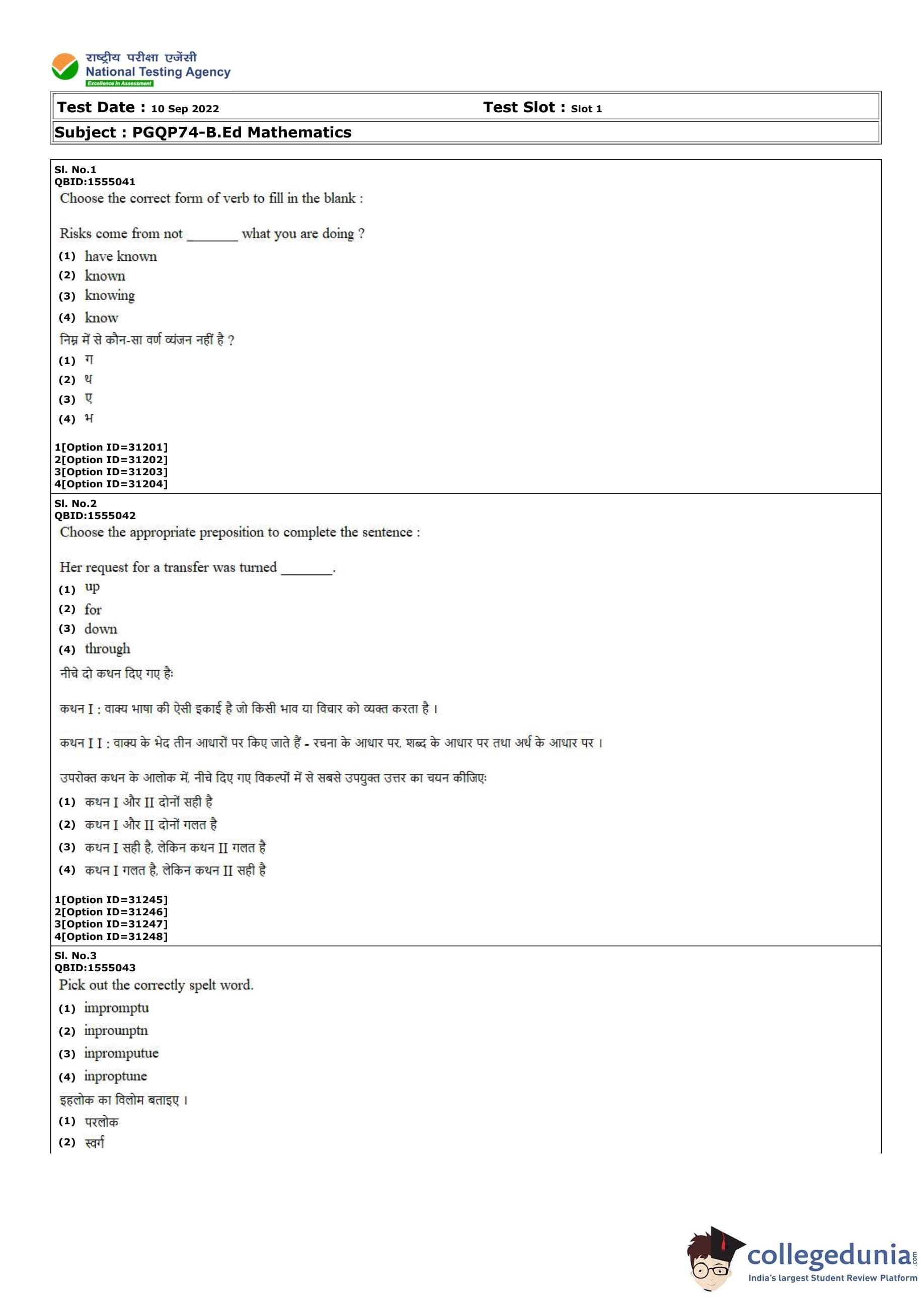 CUET PG B.Ed Mathematics Question Paper 2022 is available for download. CUET PG 2022 B.Ed Mathematics paper was conducted by National Testing Agency (NTA) on September 10, 2022 in Shift 1. The question paper comprised a total of 100 questions.