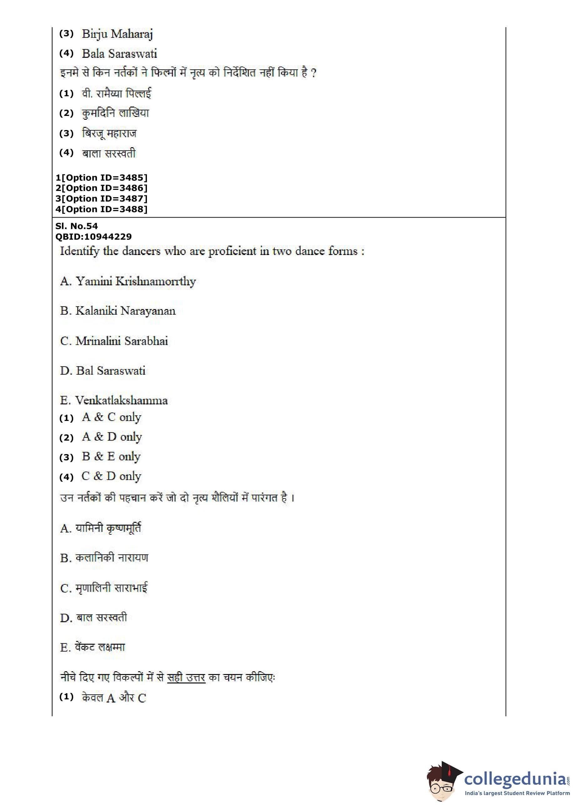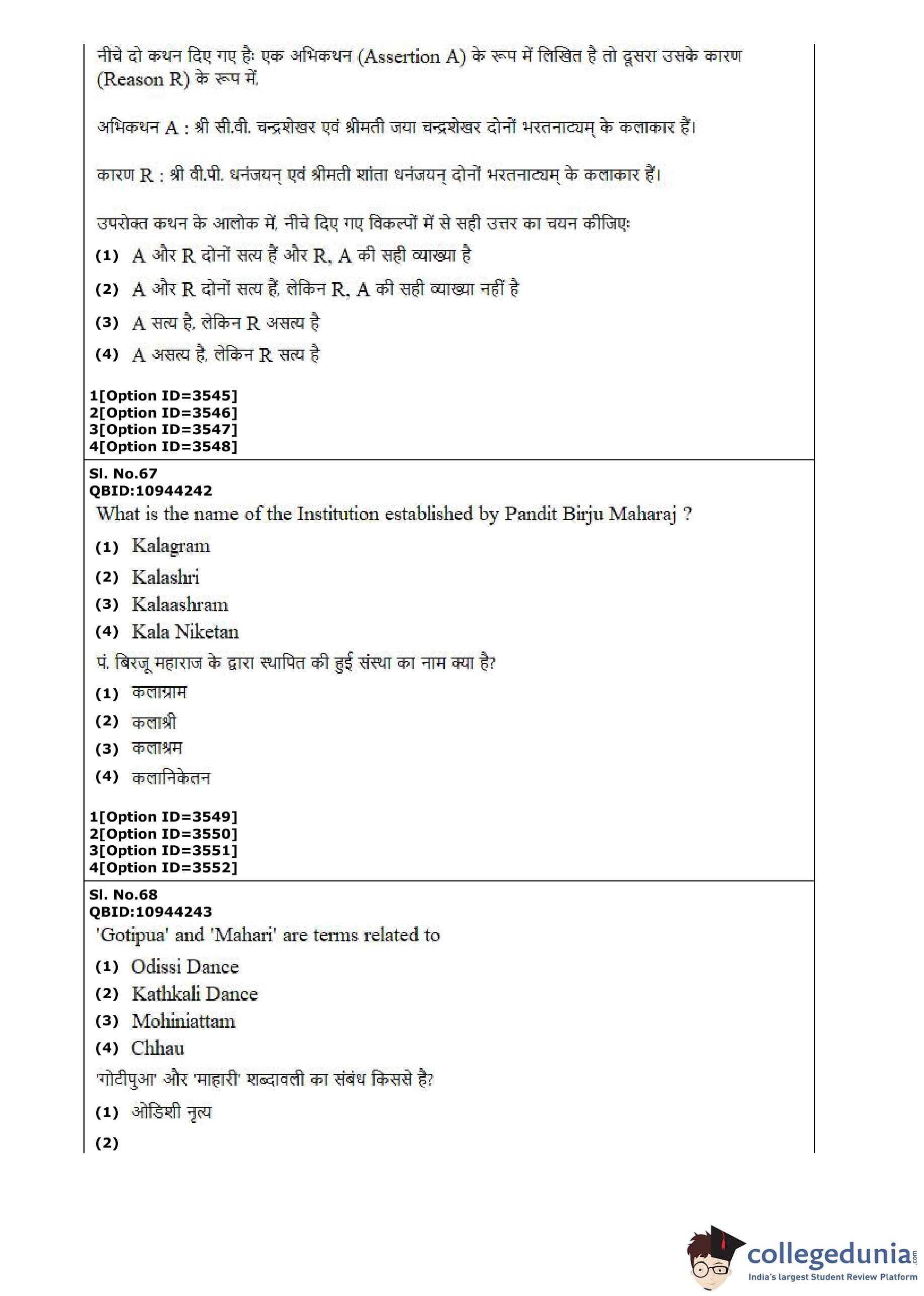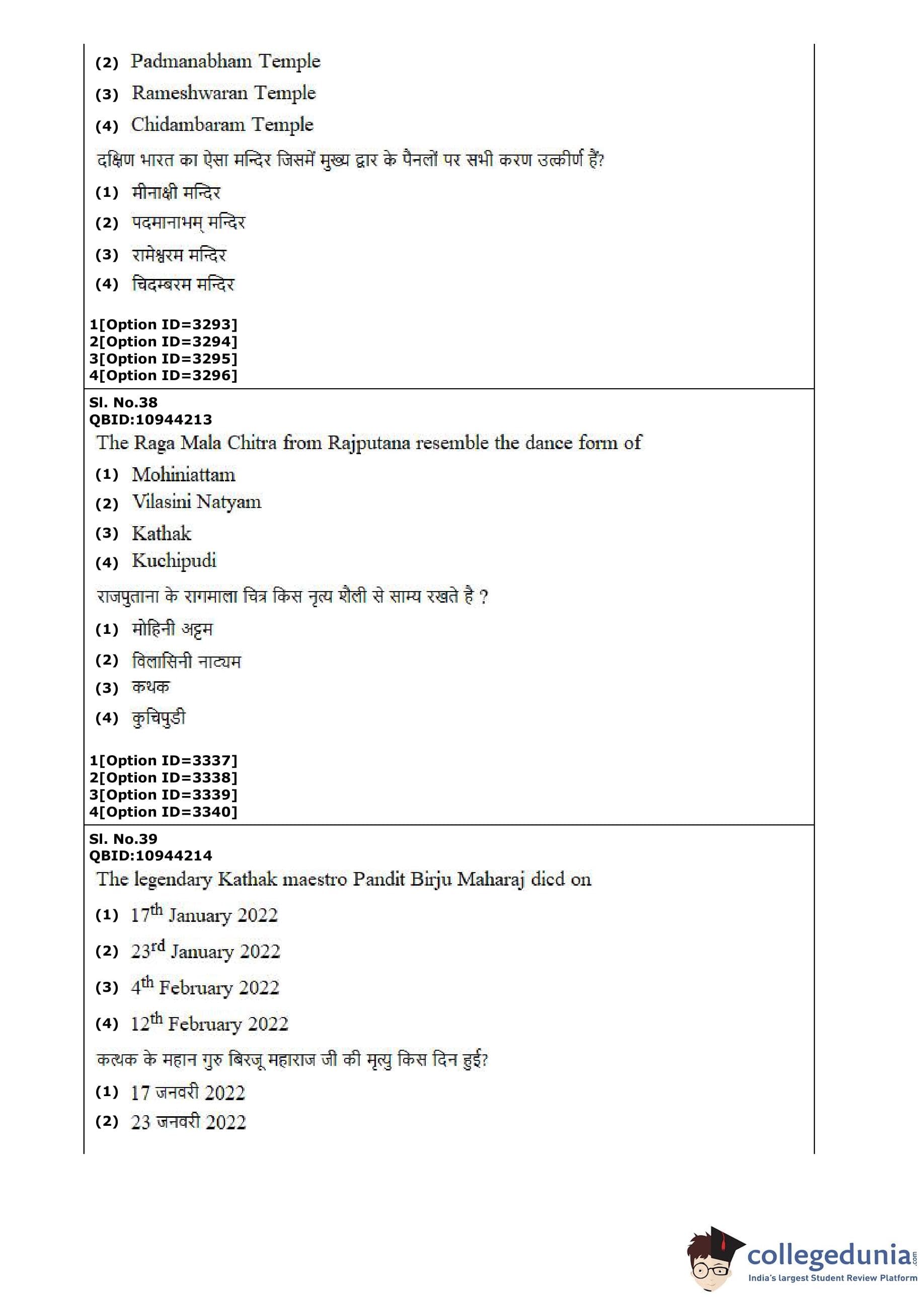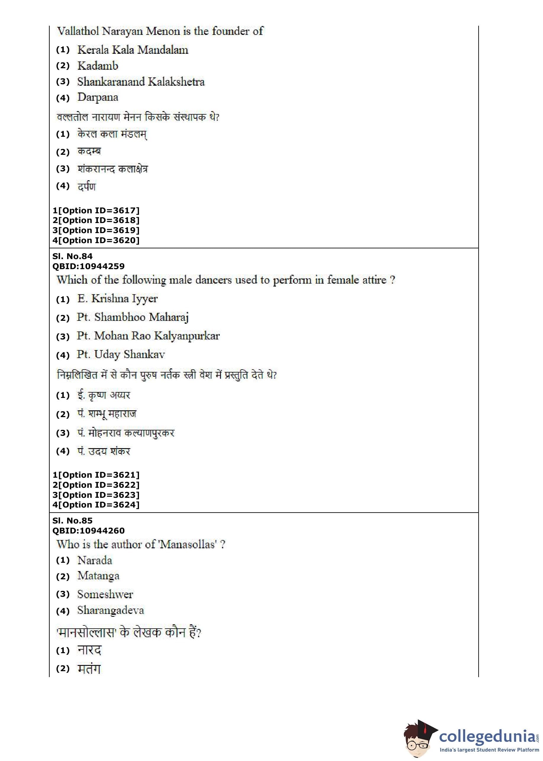 CUET PG 2022 Dance Question Paper with Answer Key PDF