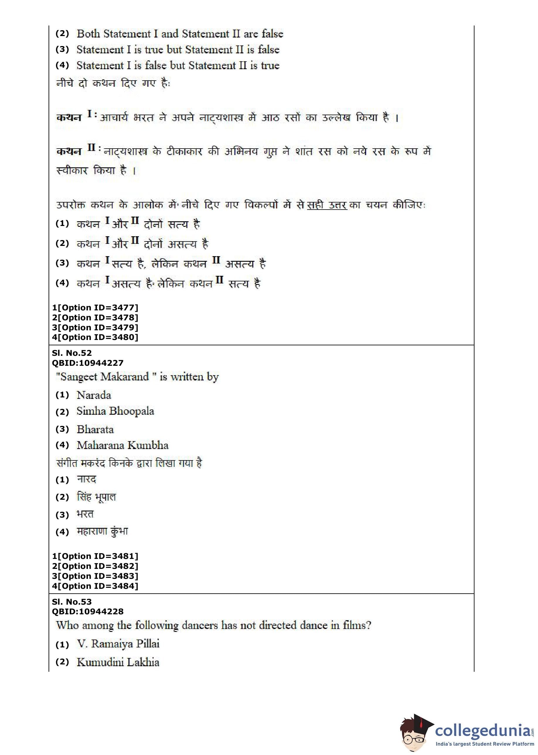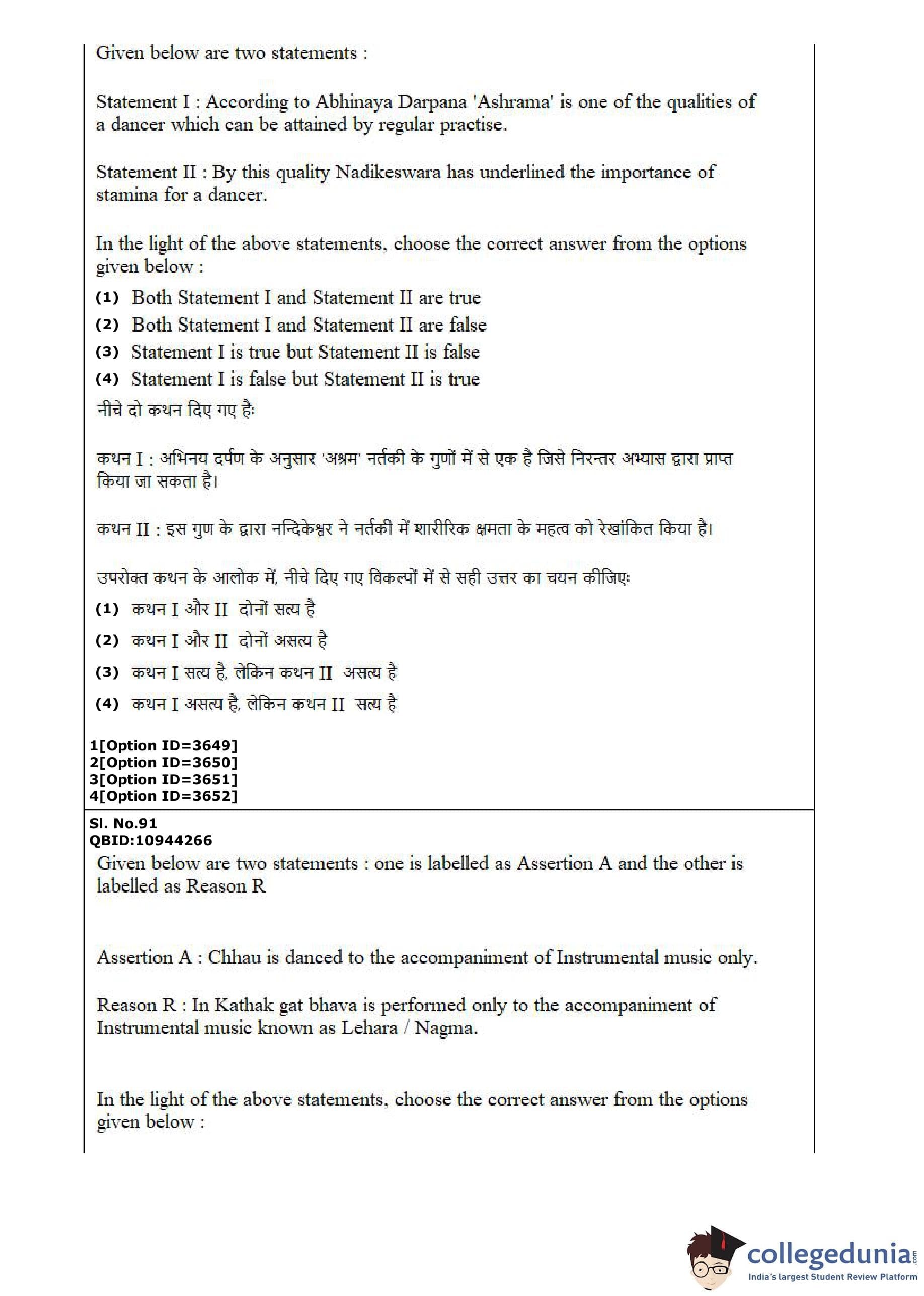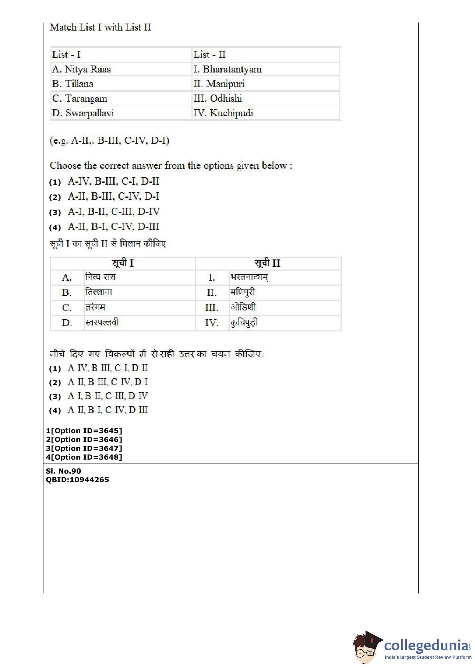 CUET PG 2022 Dance Question Paper with Answer Key PDF