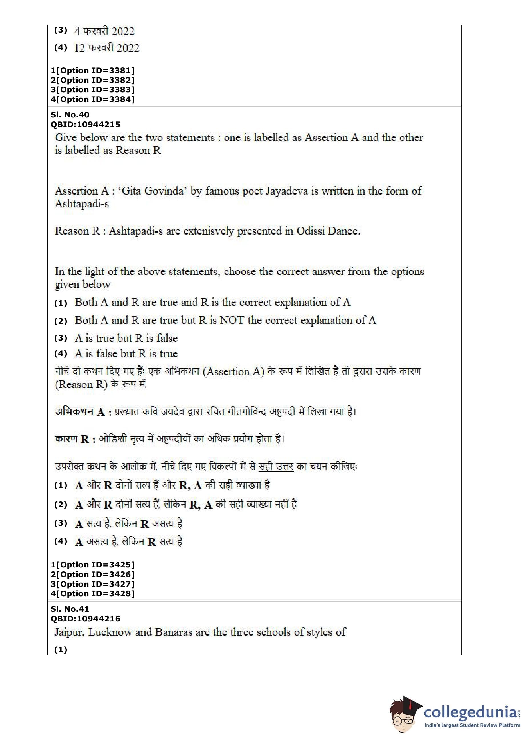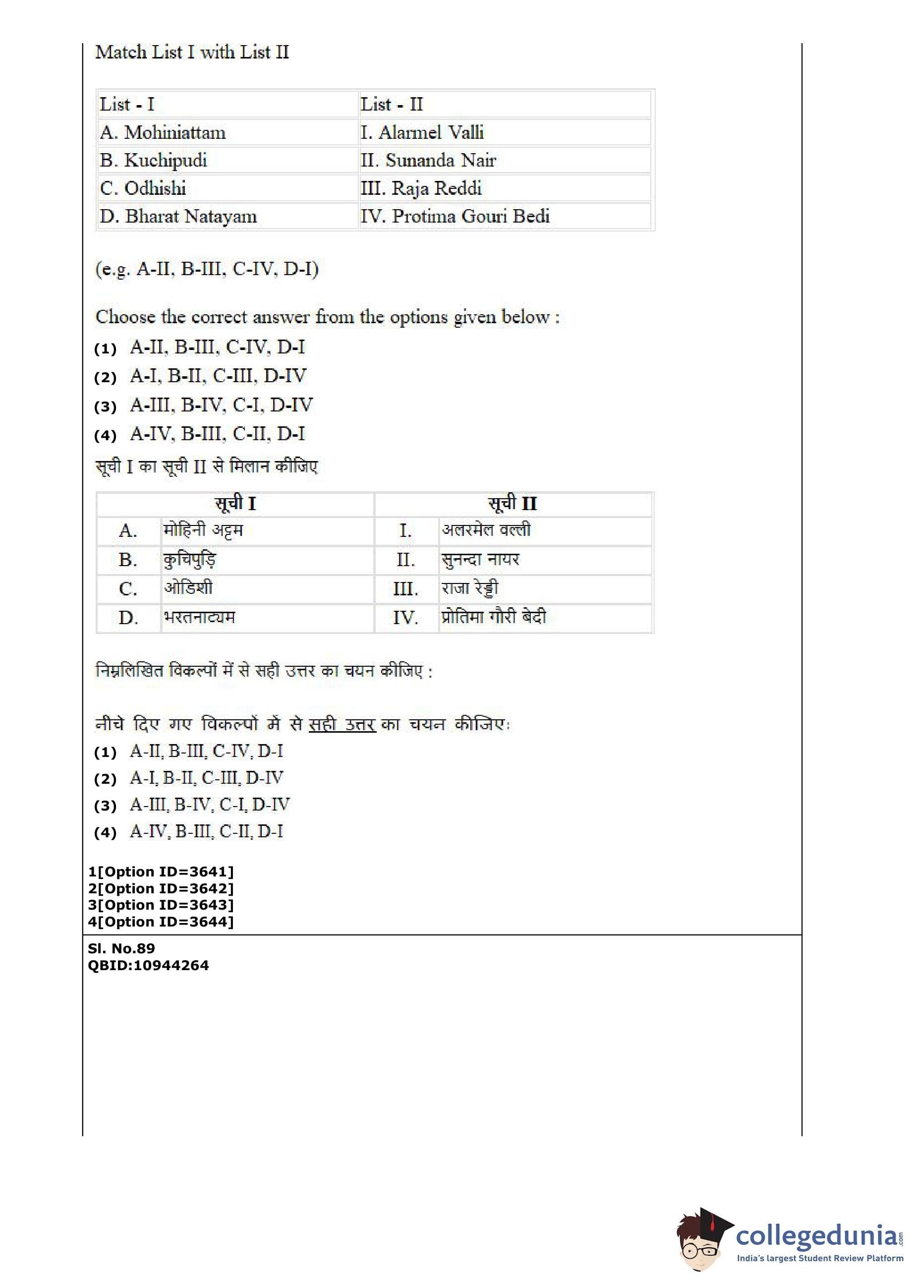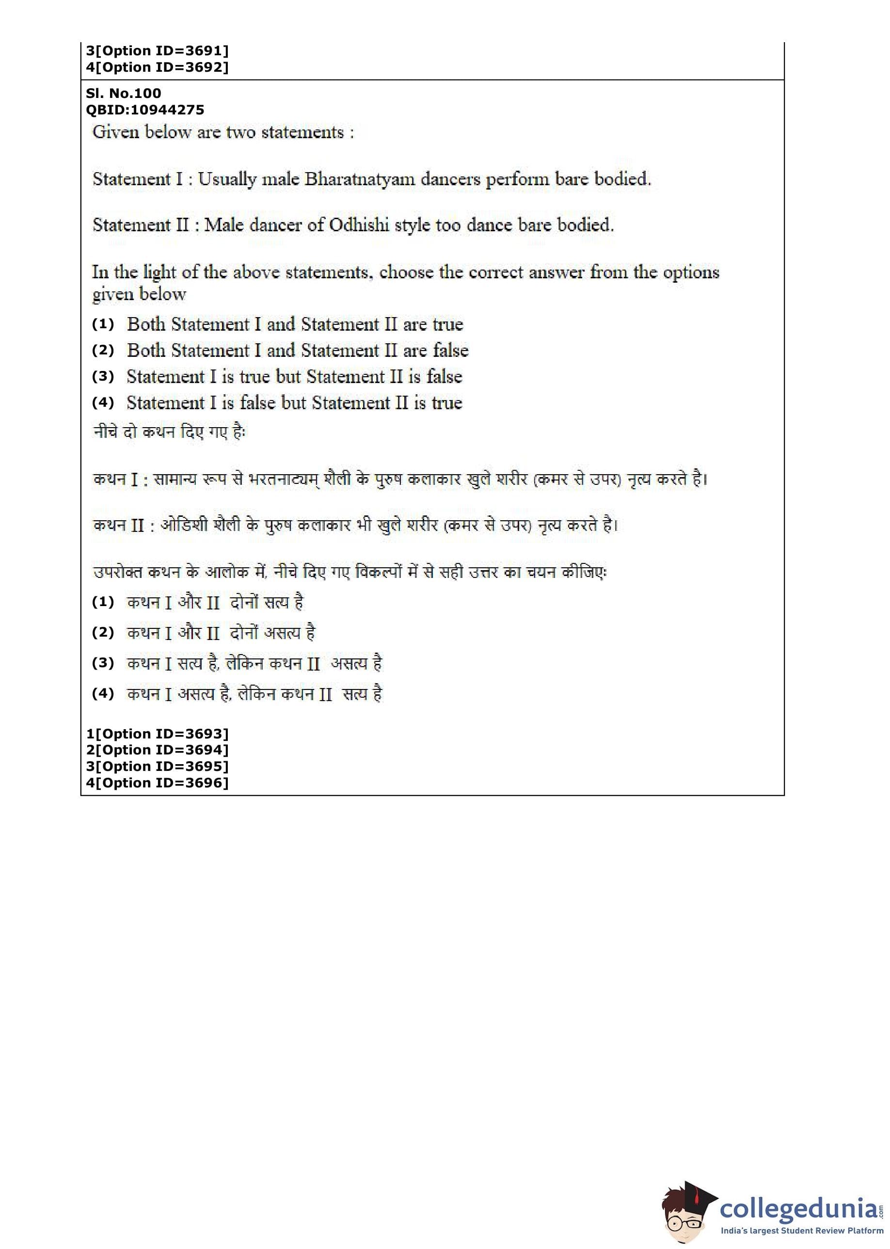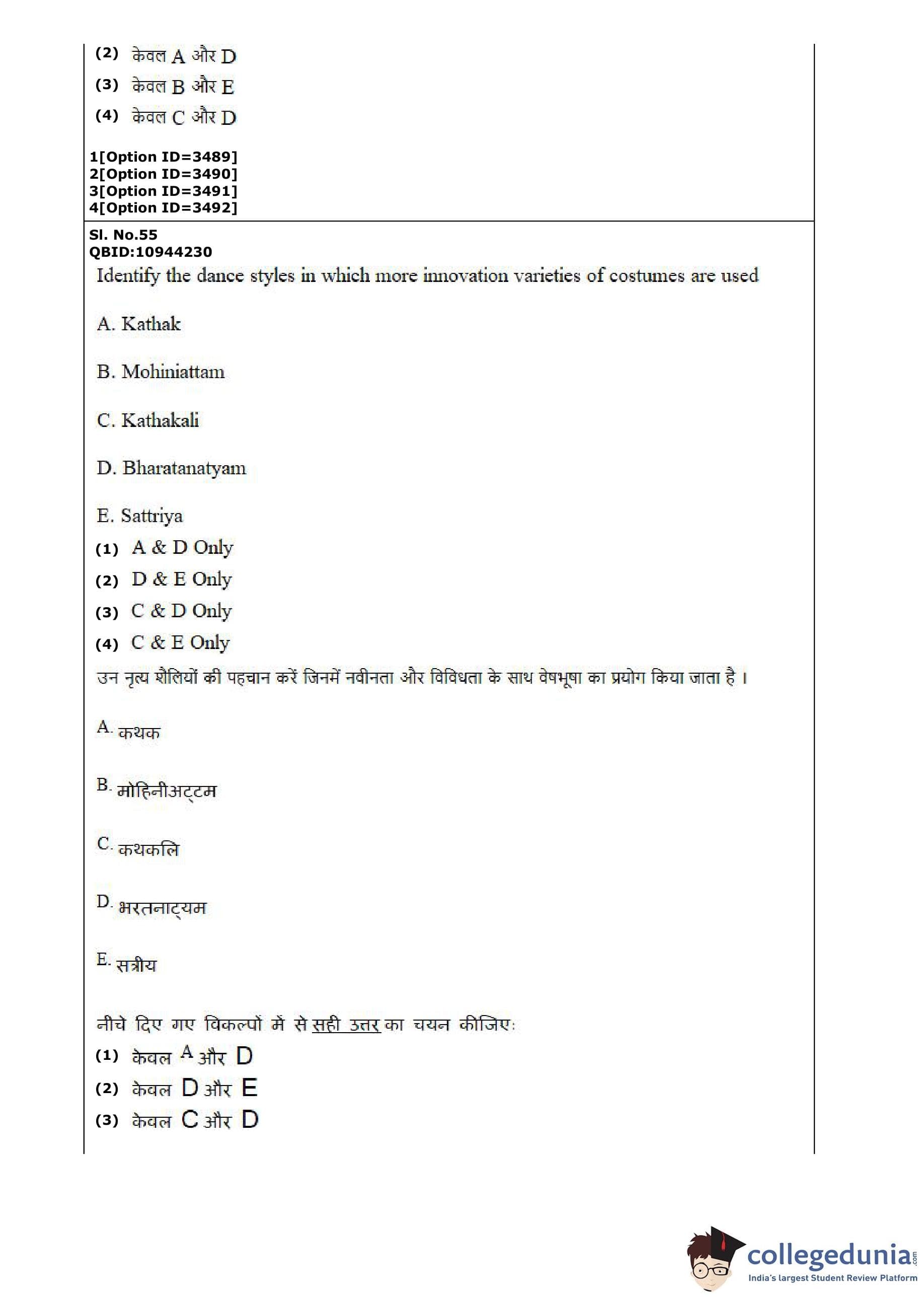 CUET PG 2022 Dance Question Paper with Answer Key PDF