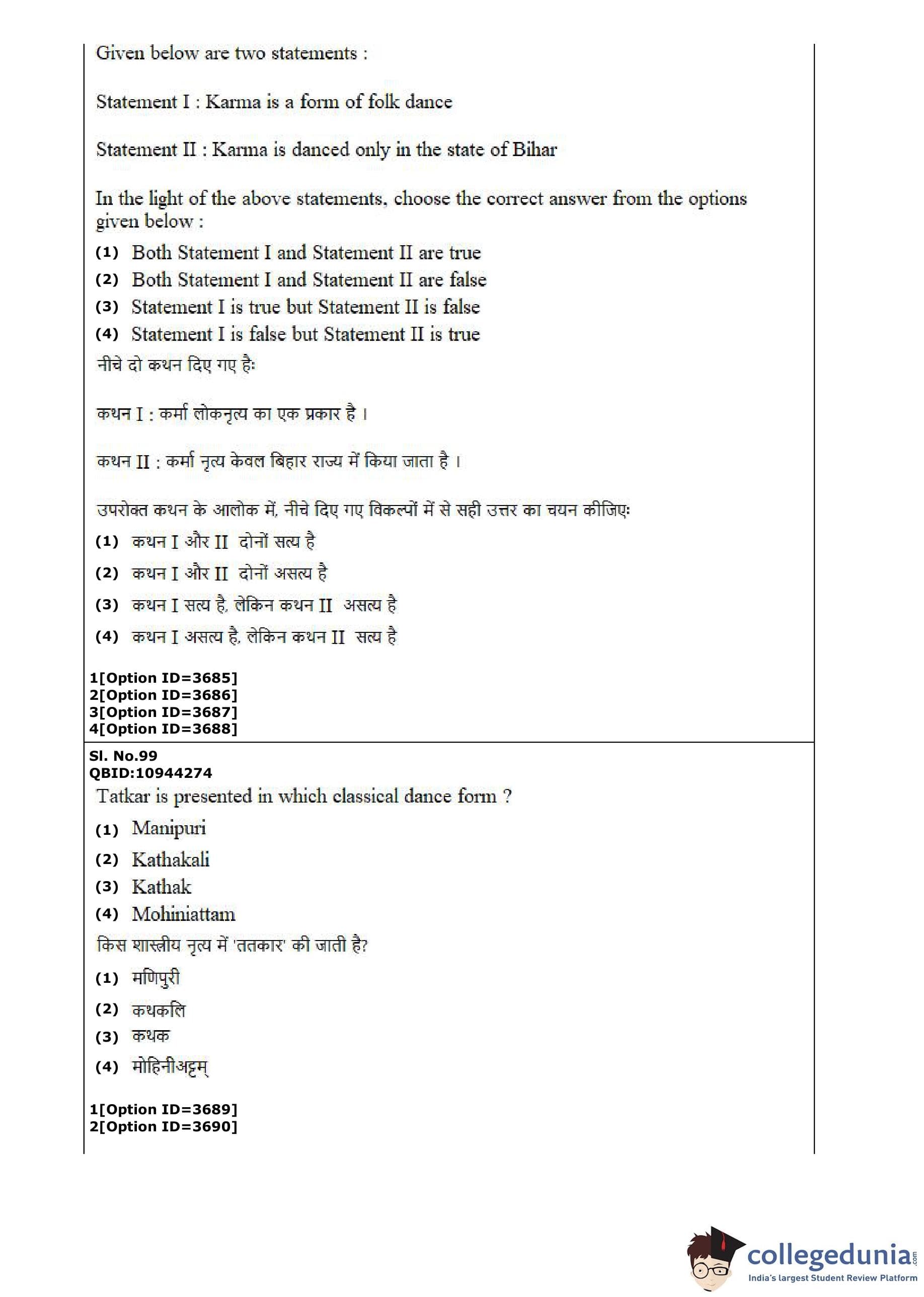 | CUET PG Dance Question Paper PDF | CUET PG Dance Answer Key PDF |