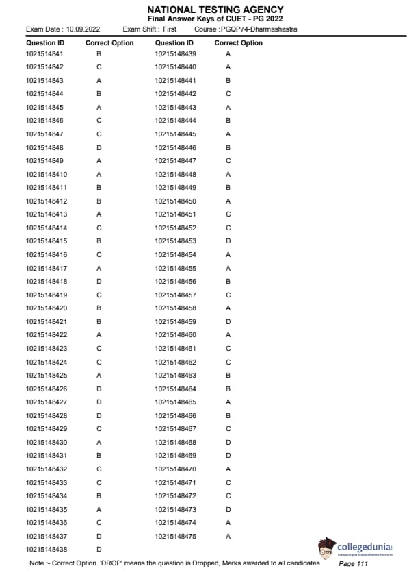 | CUET PG Dharmashastra Question Paper PDF | CUET PG Dharmashastra Answer Key PDF |