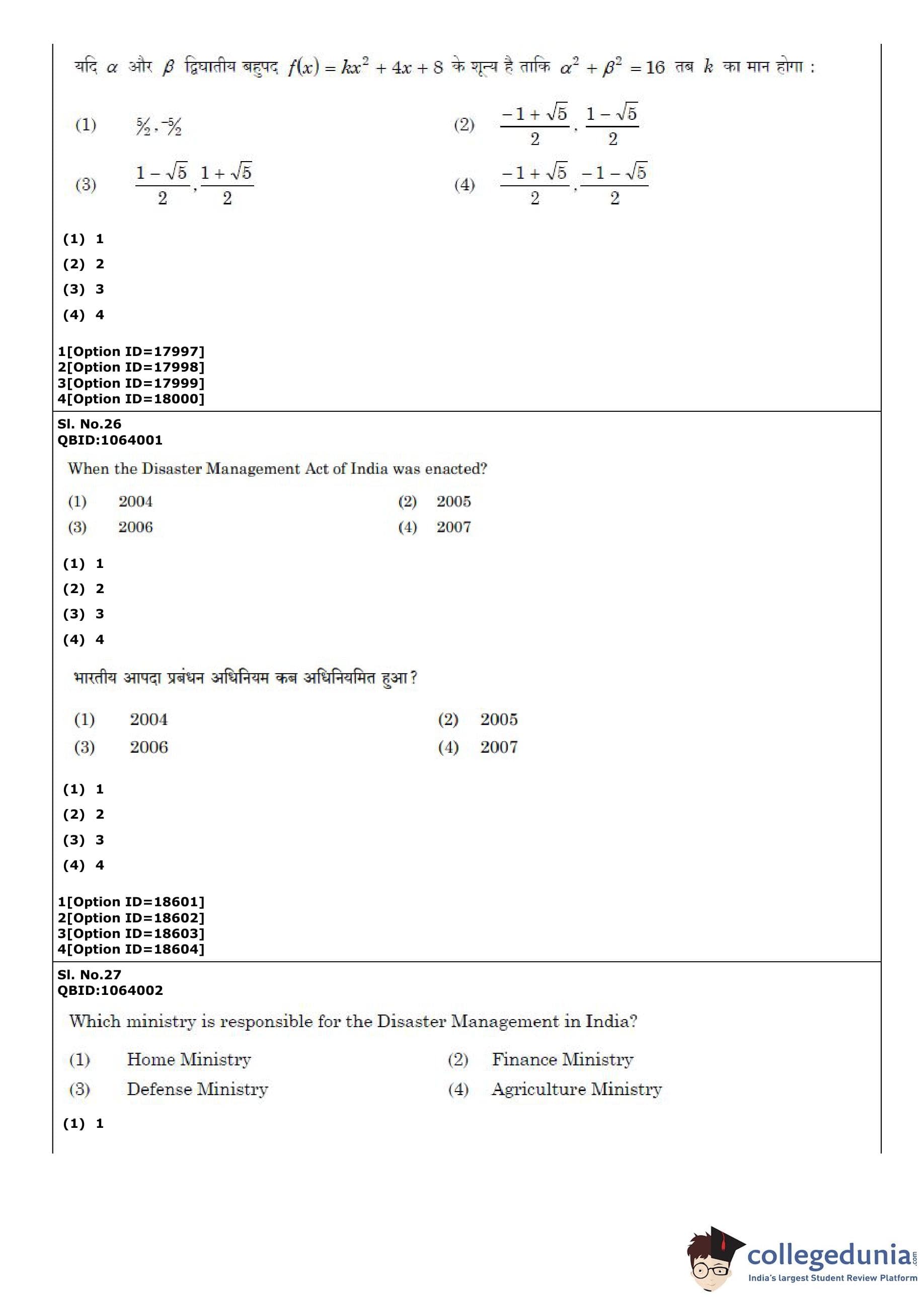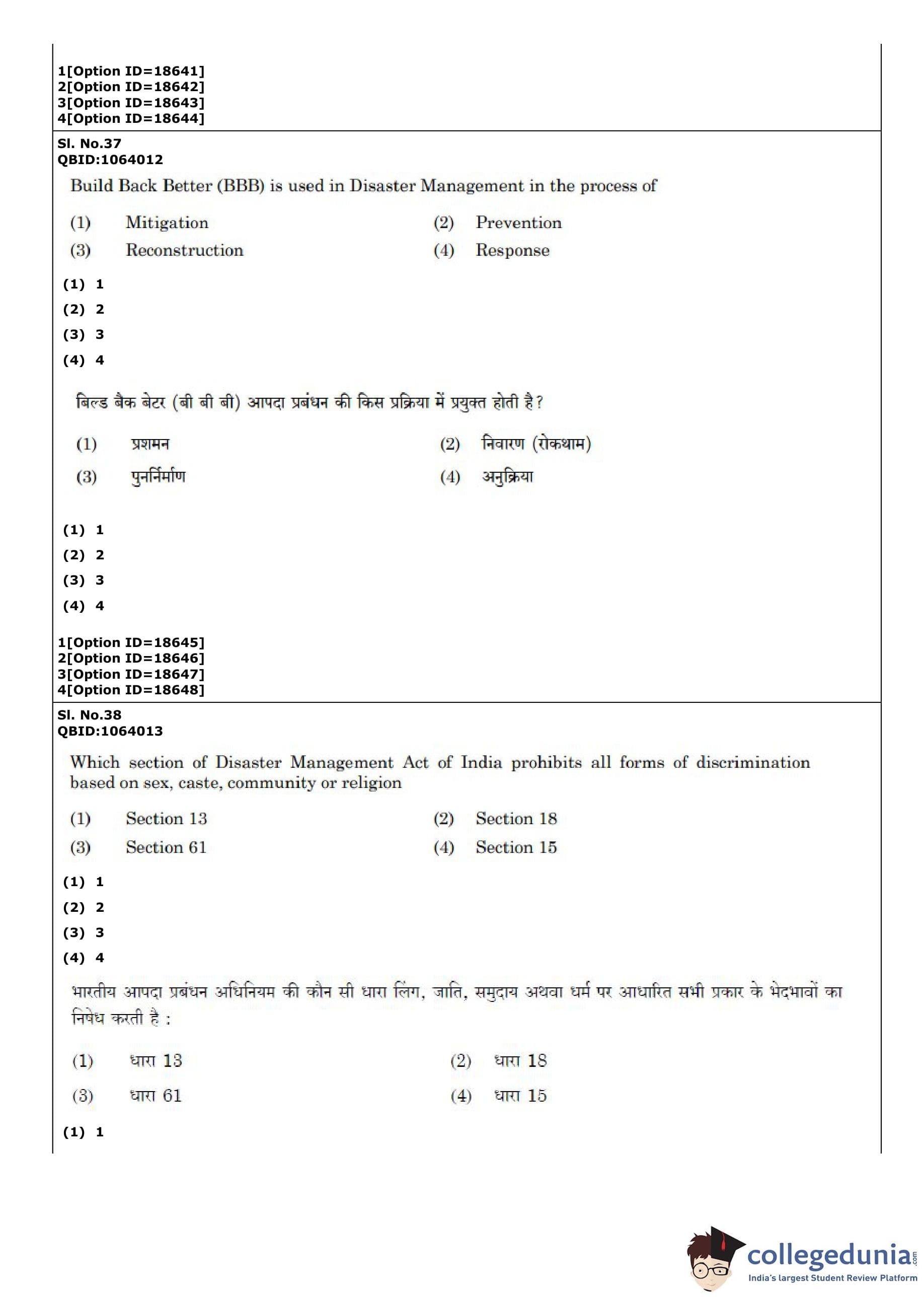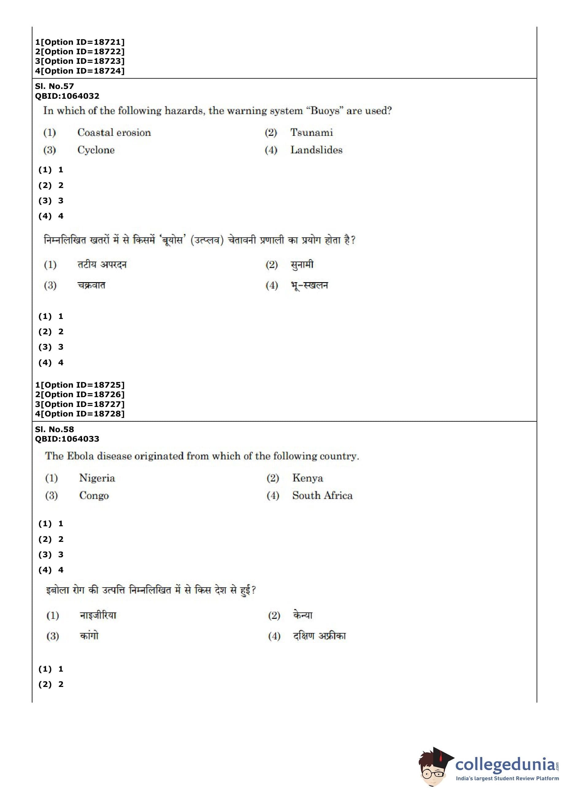 | CUET PG Disaster Studies Question Paper PDF | CUET PG Disaster Studies Answer Key PDF |
