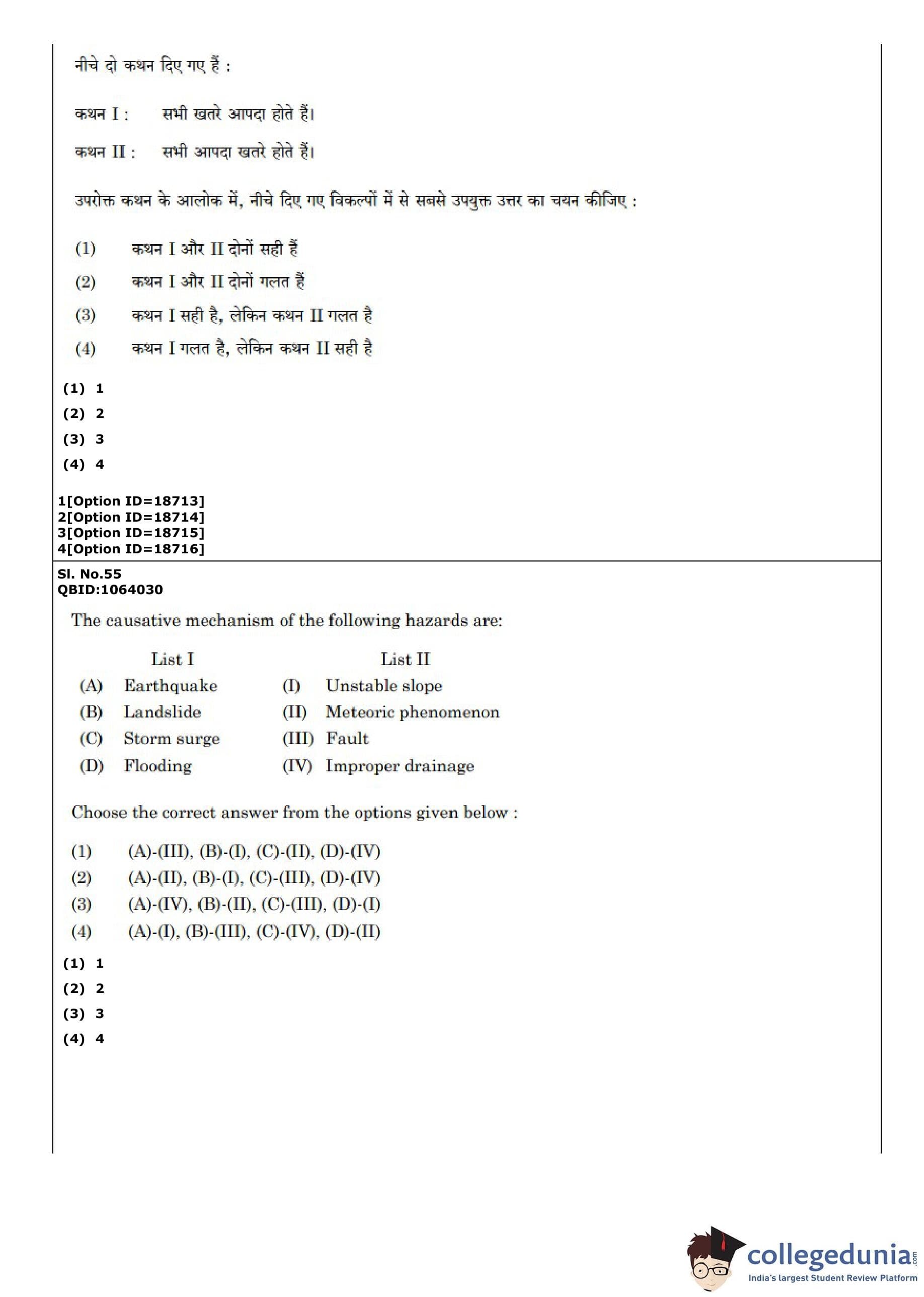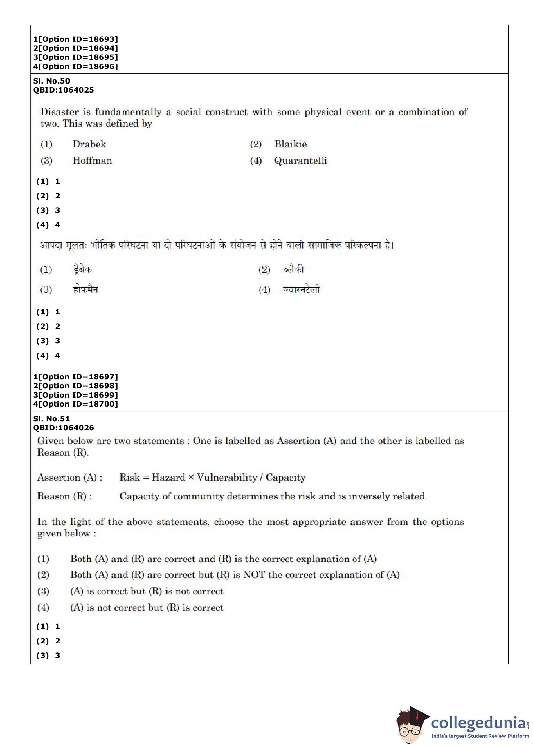 CUET PG 2022 Disaster Studies Question Paper with Answer Key PDF