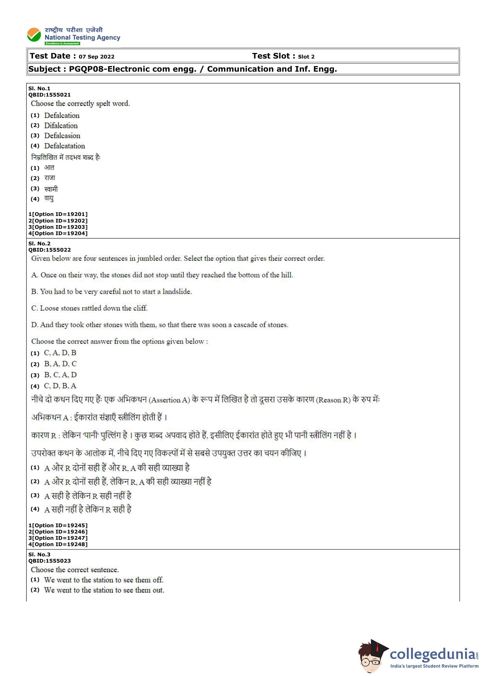 CUET PG Electronic Communication Engineering / Communication and Information Engineering Question Paper 2022 is available for download. CUET PG 2022 Electronic Communication Engineering / Communication and Information Engineering paper was conducted by National Testing Agency (NTA) on September 7, 2022 in Shift 2. The question paper comprised a total of 100 questions.