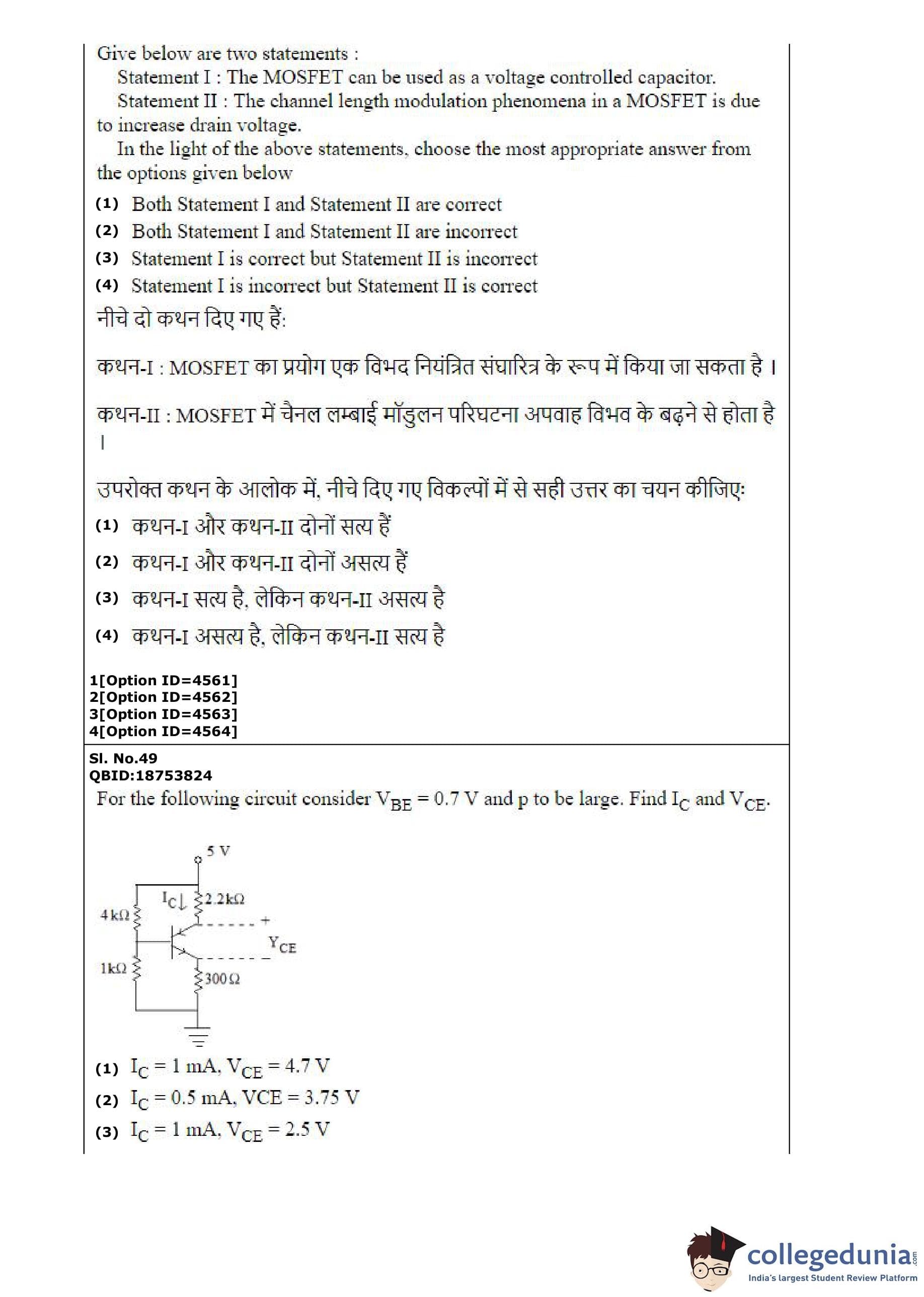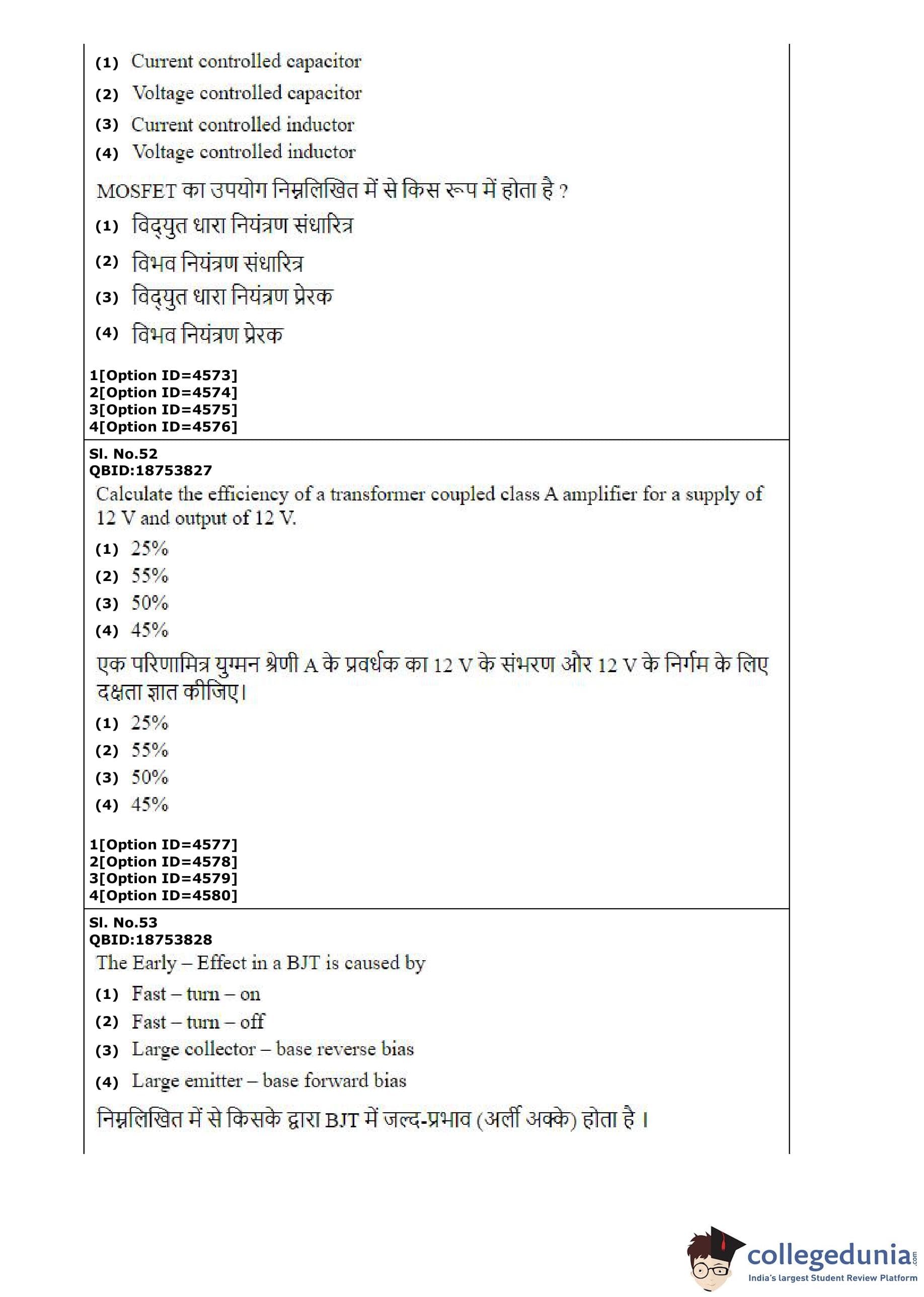CUET PG 2022 Electronics Design and Technology Question Paper with Answer Key PDF