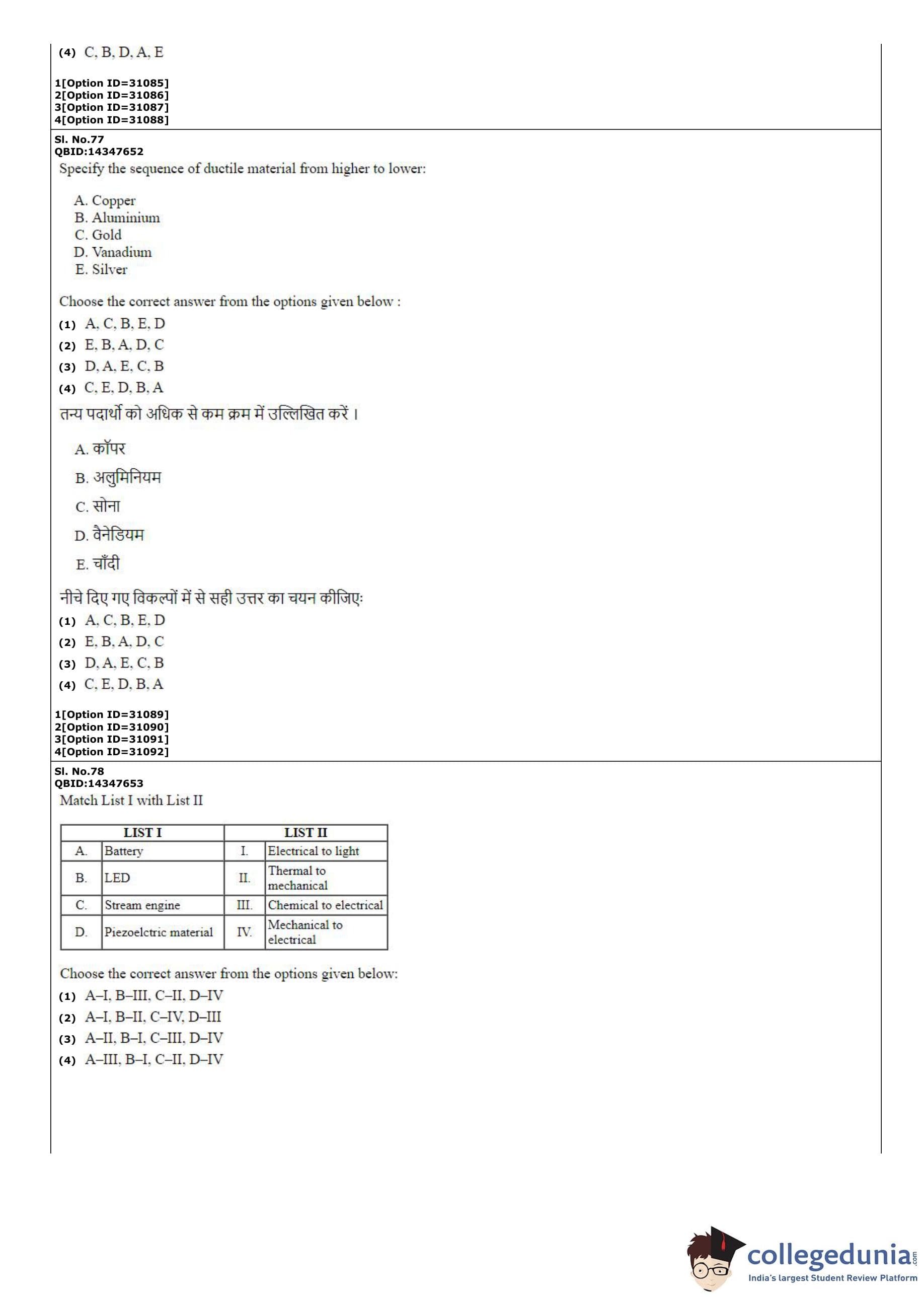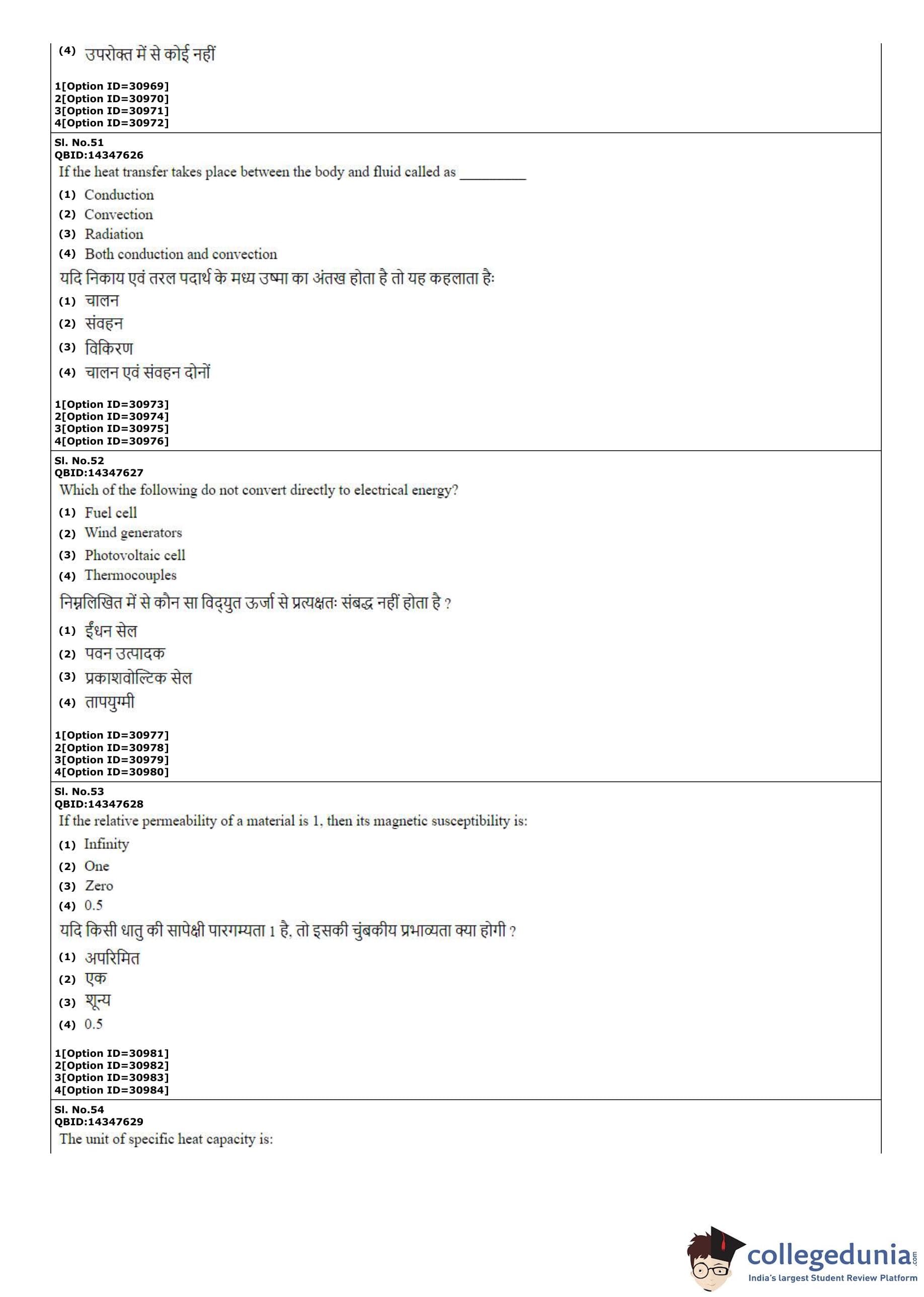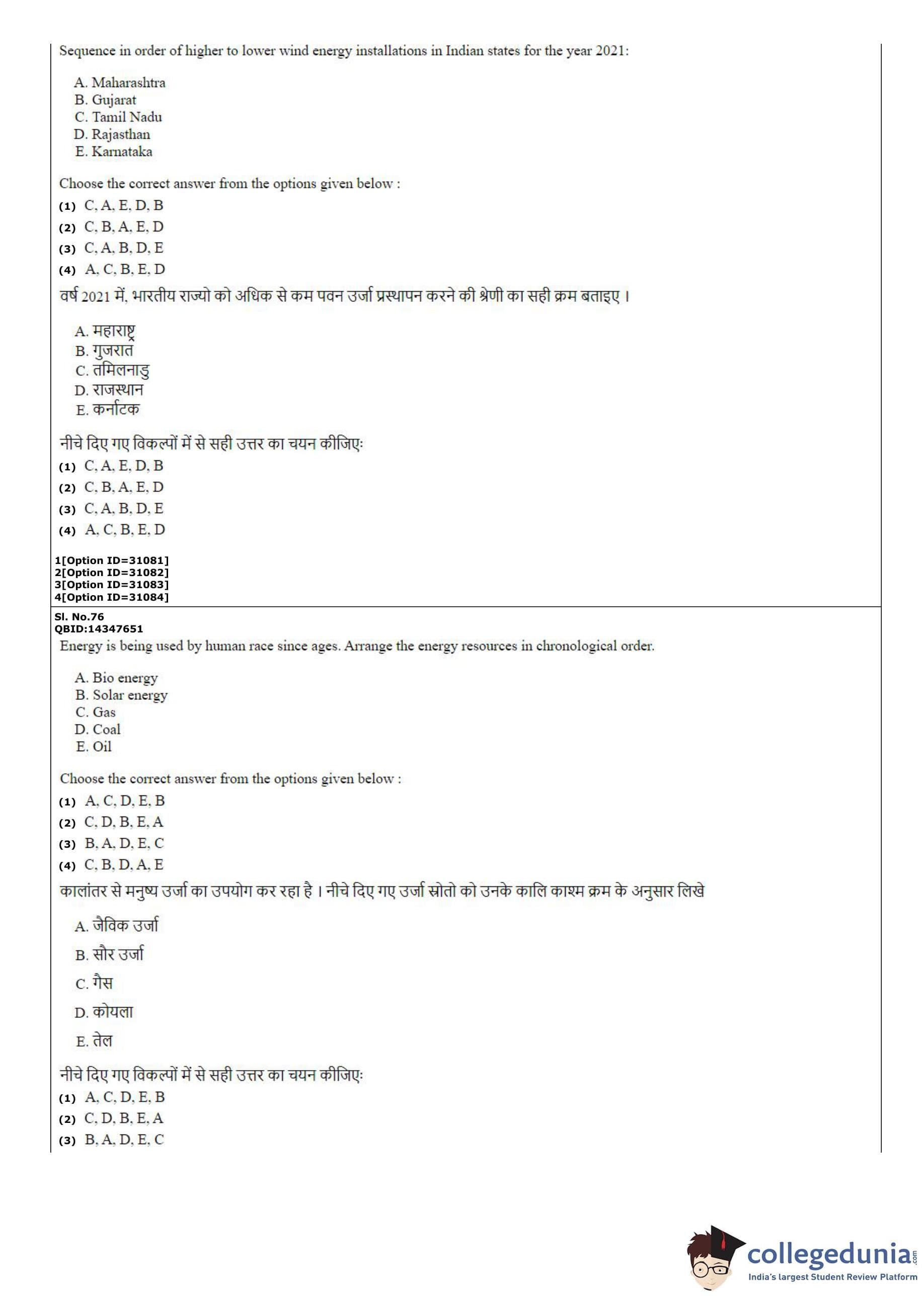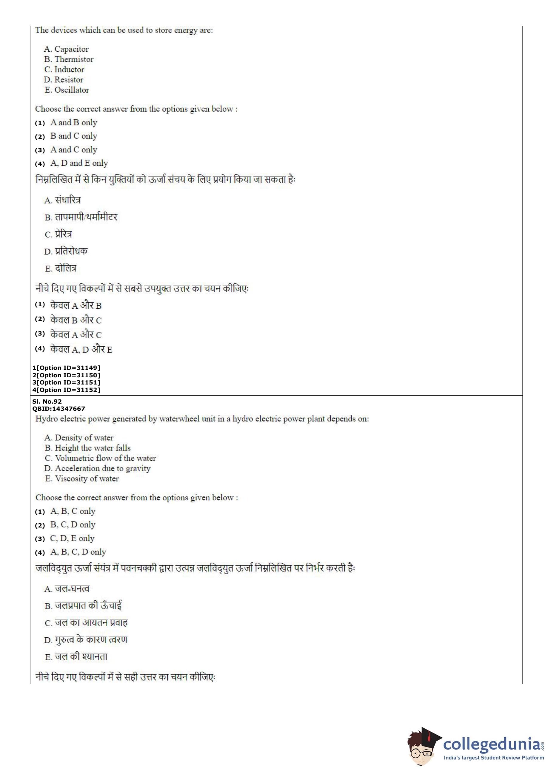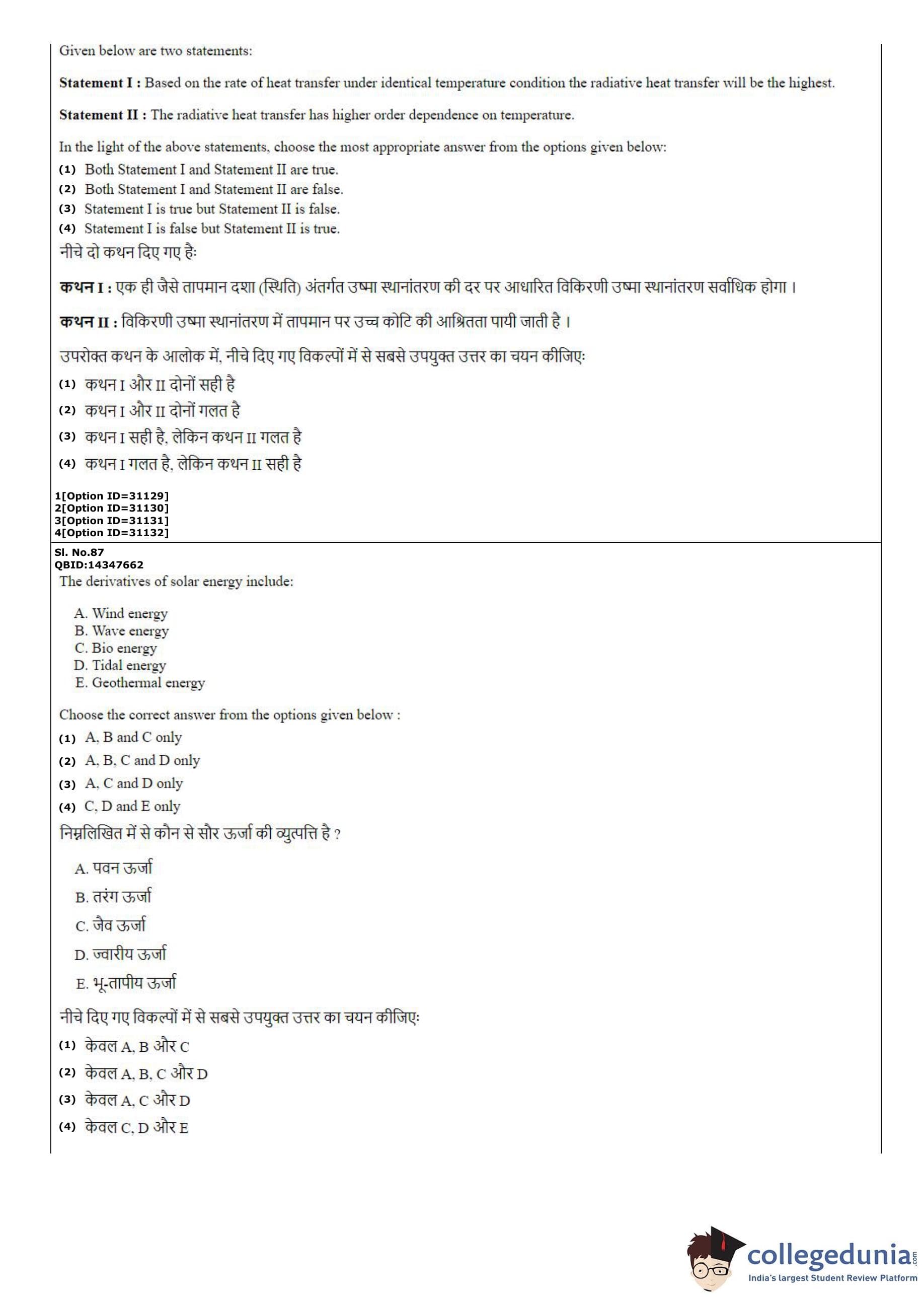 CUET PG 2022 Energy Technology Question Paper with Answer Key PDF