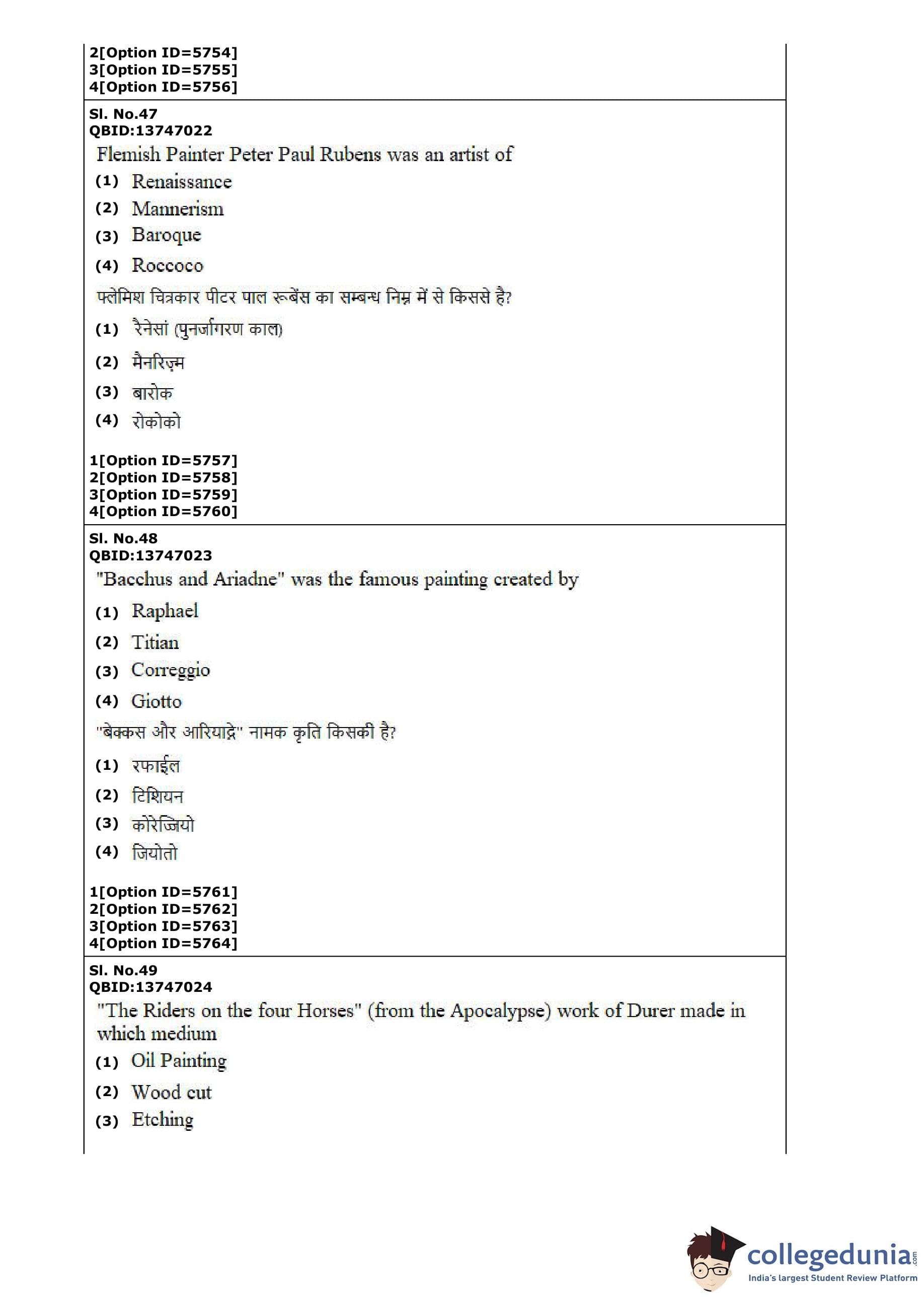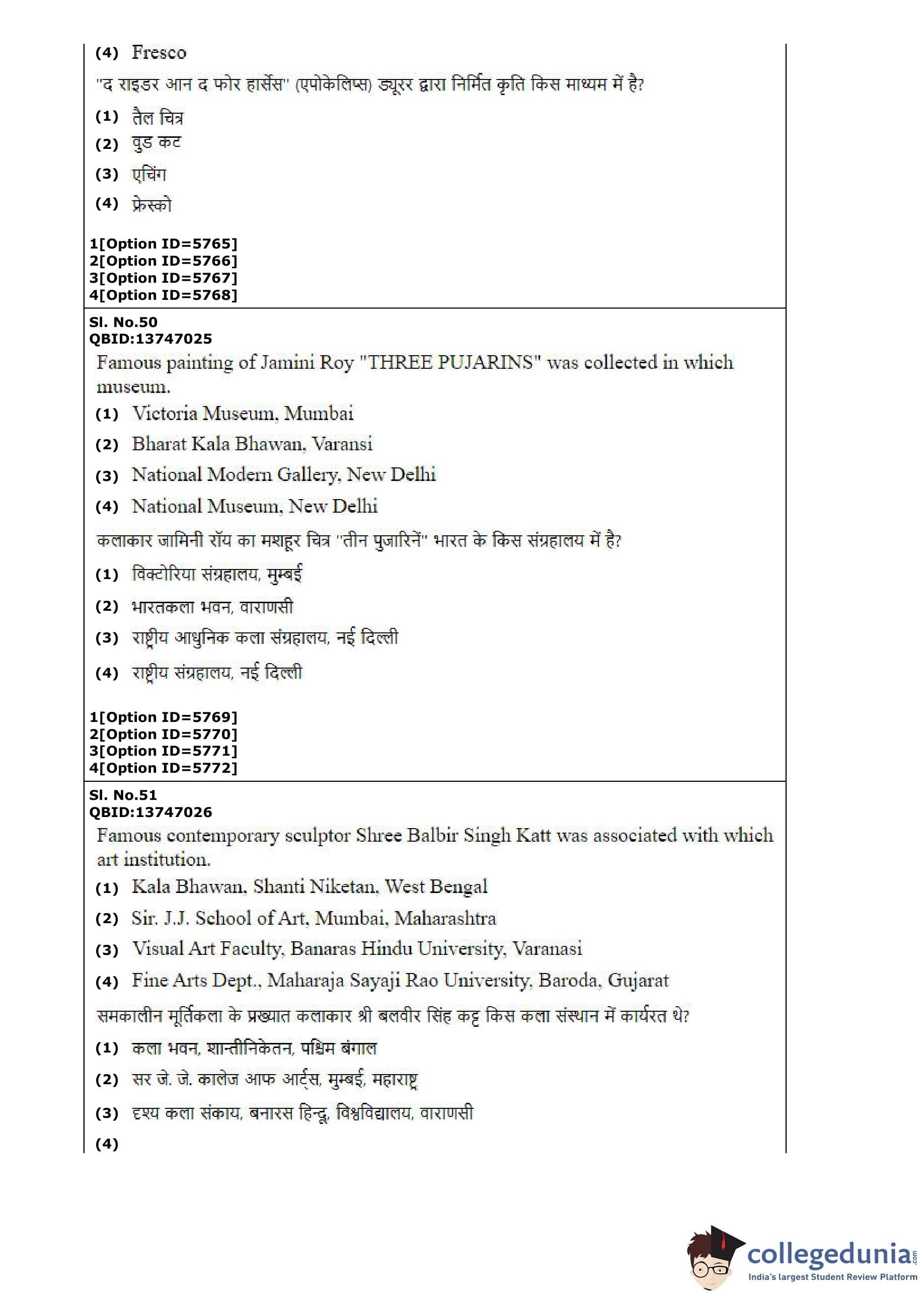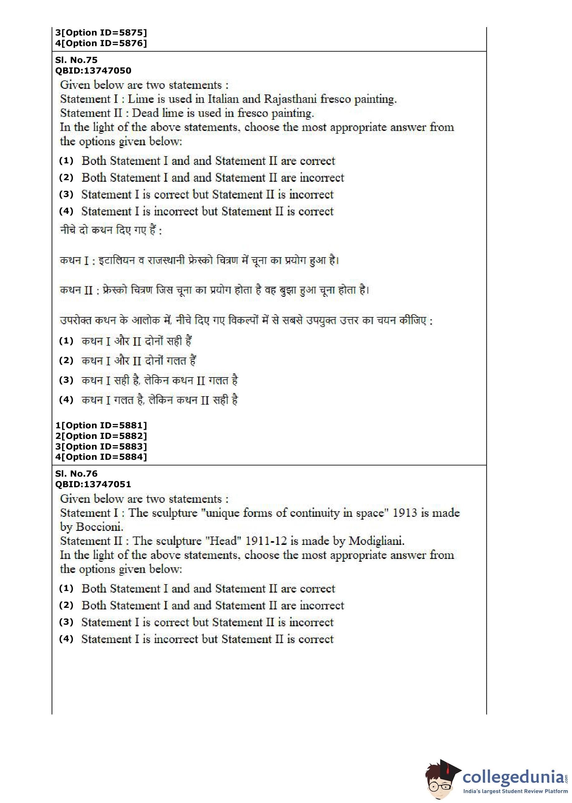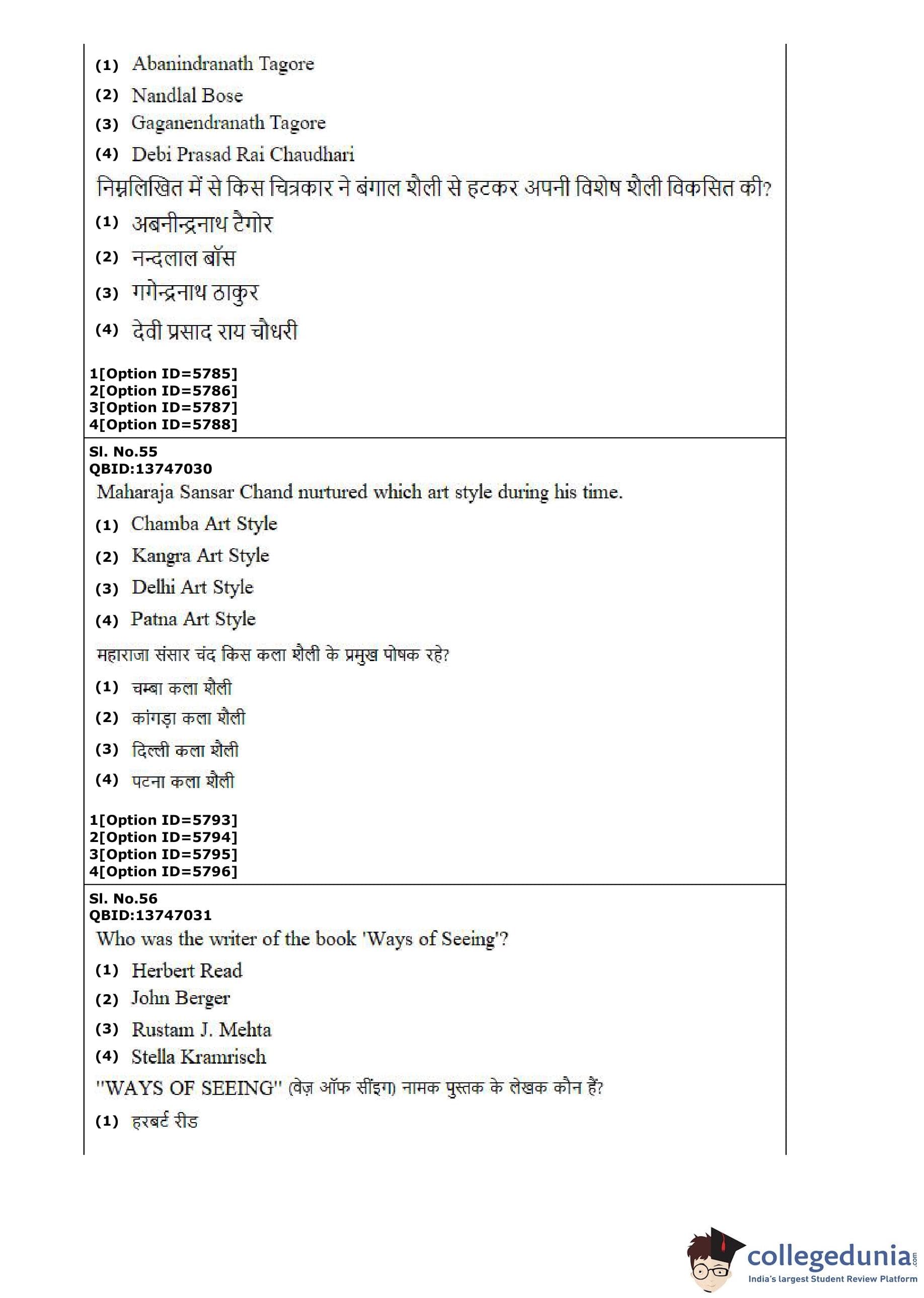 CUET PG 2022 Fine Arts Question Paper with Answer Key PDF