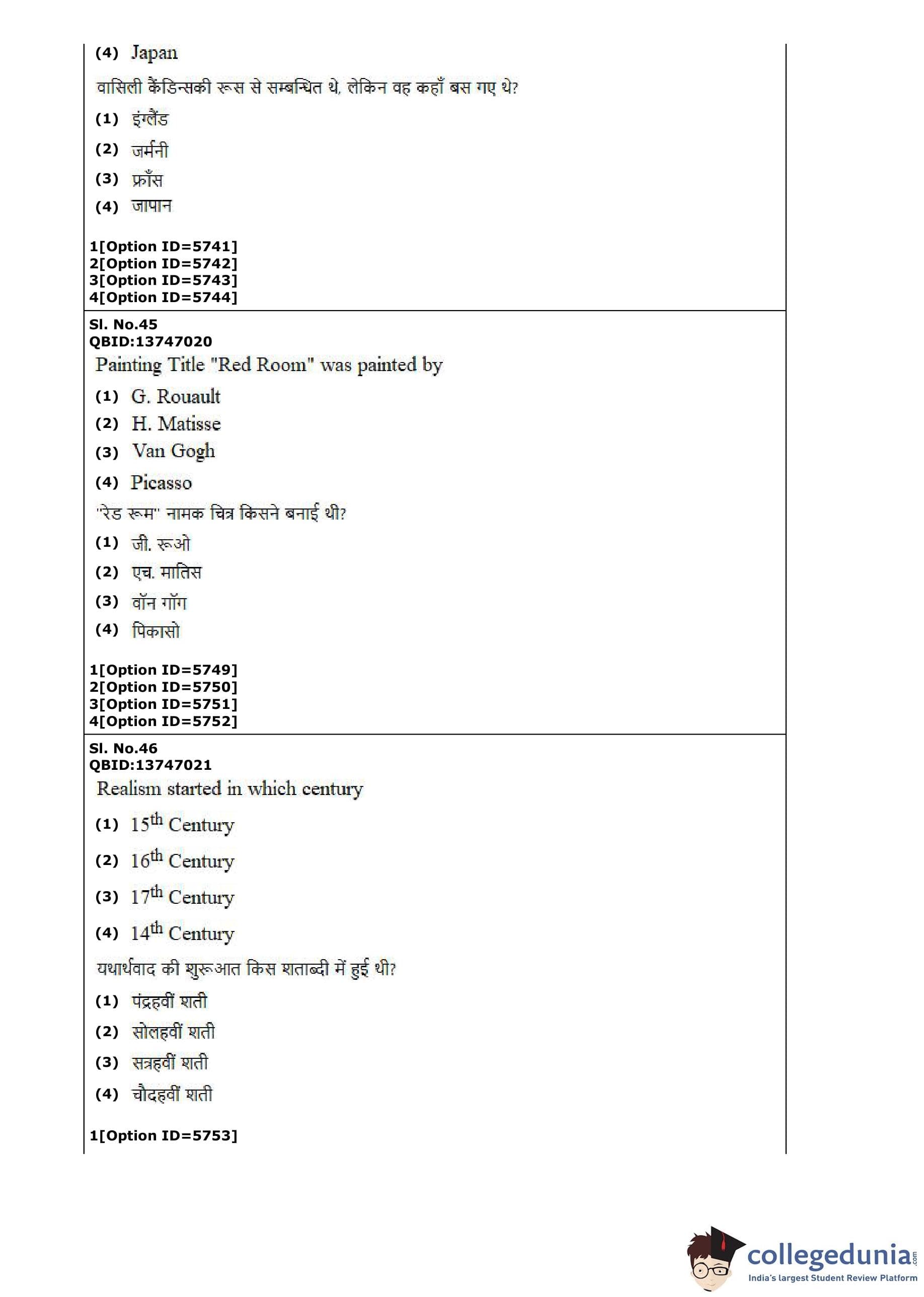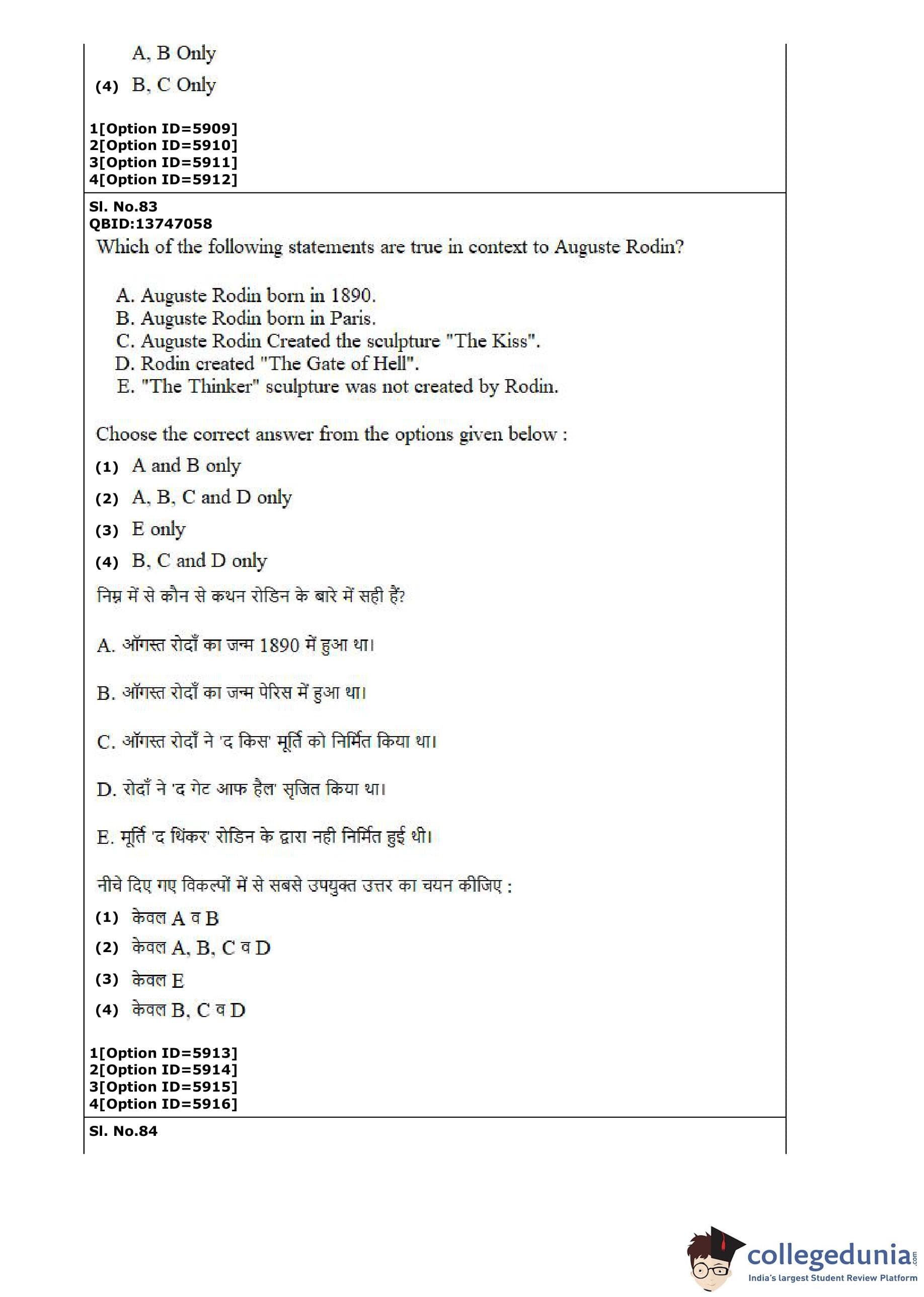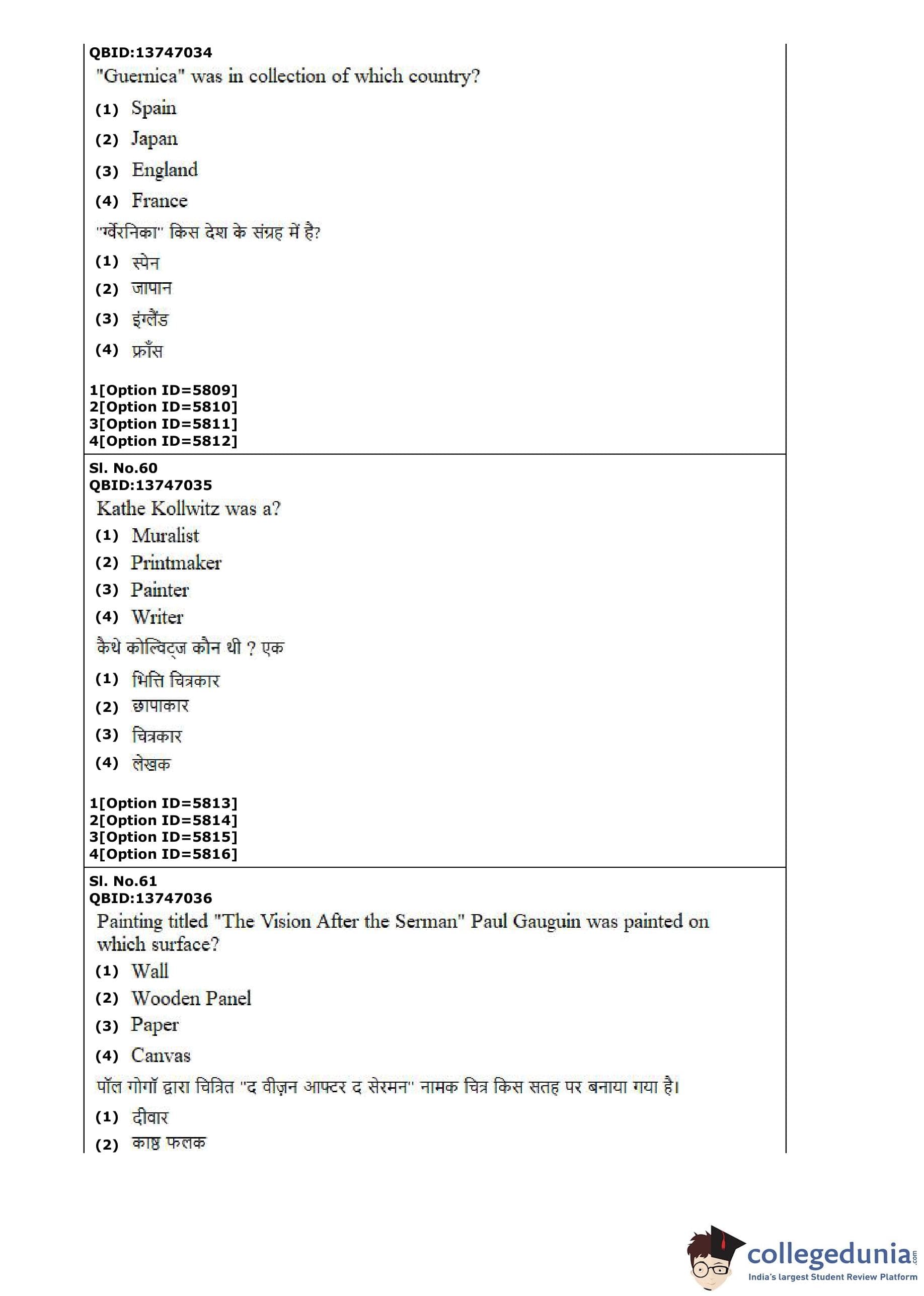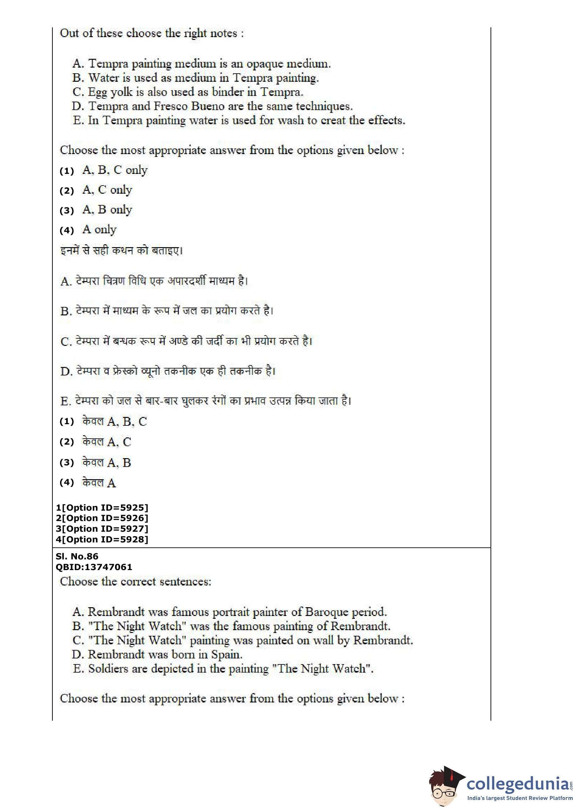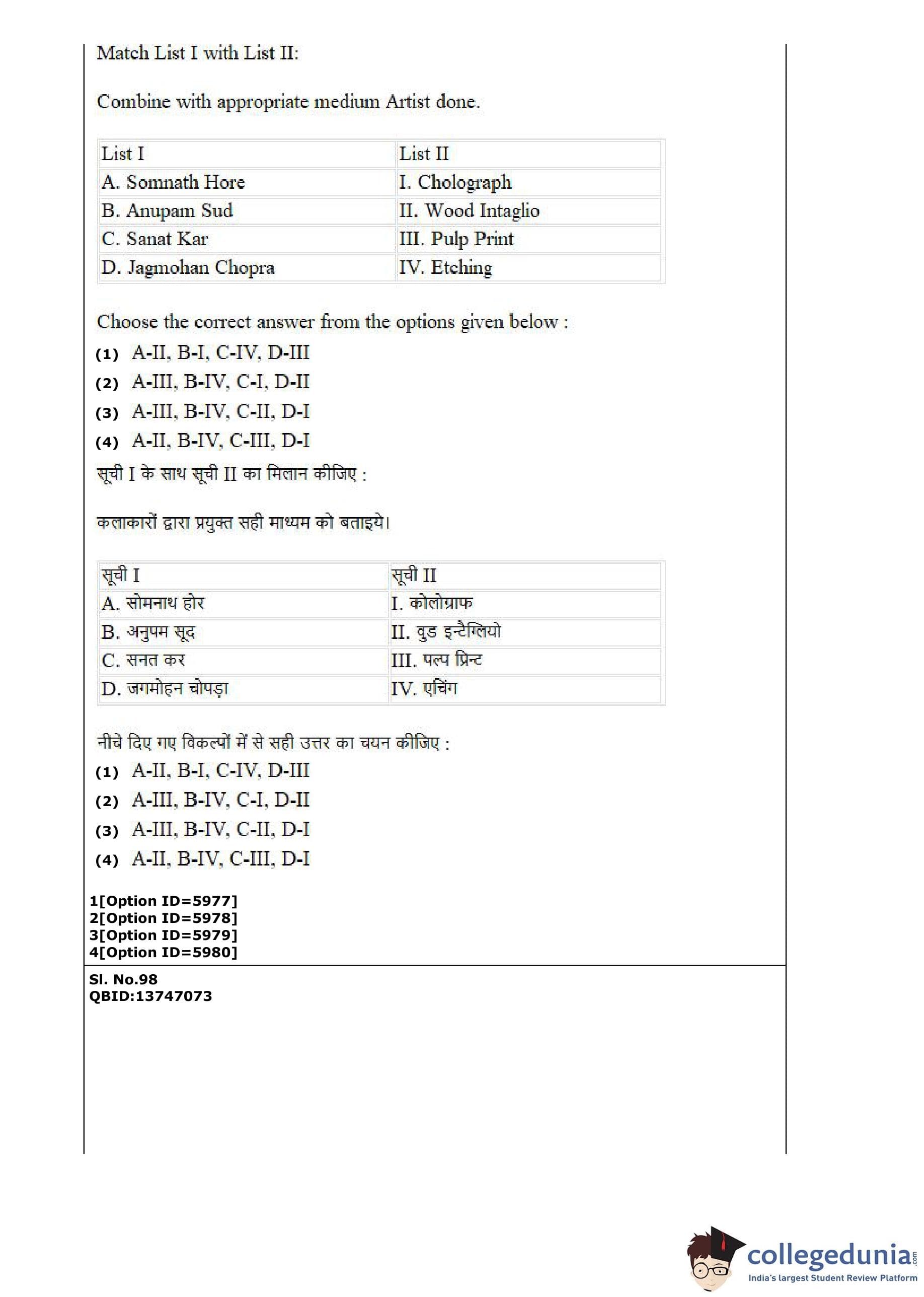 CUET PG 2022 Fine Arts Question Paper with Answer Key PDF