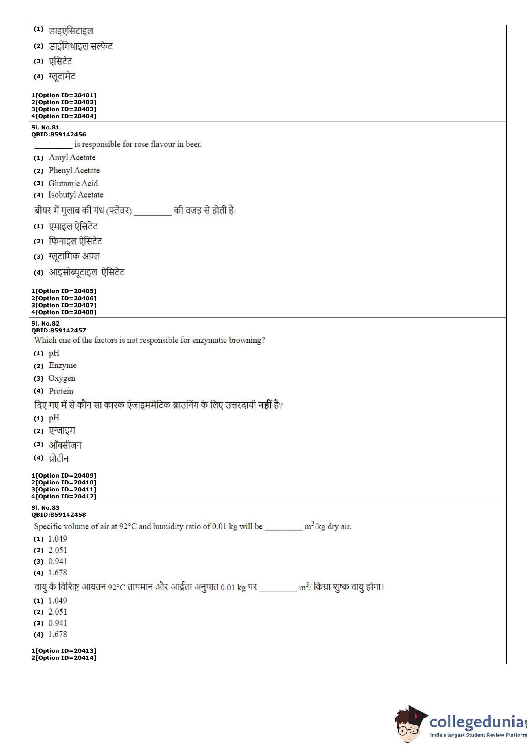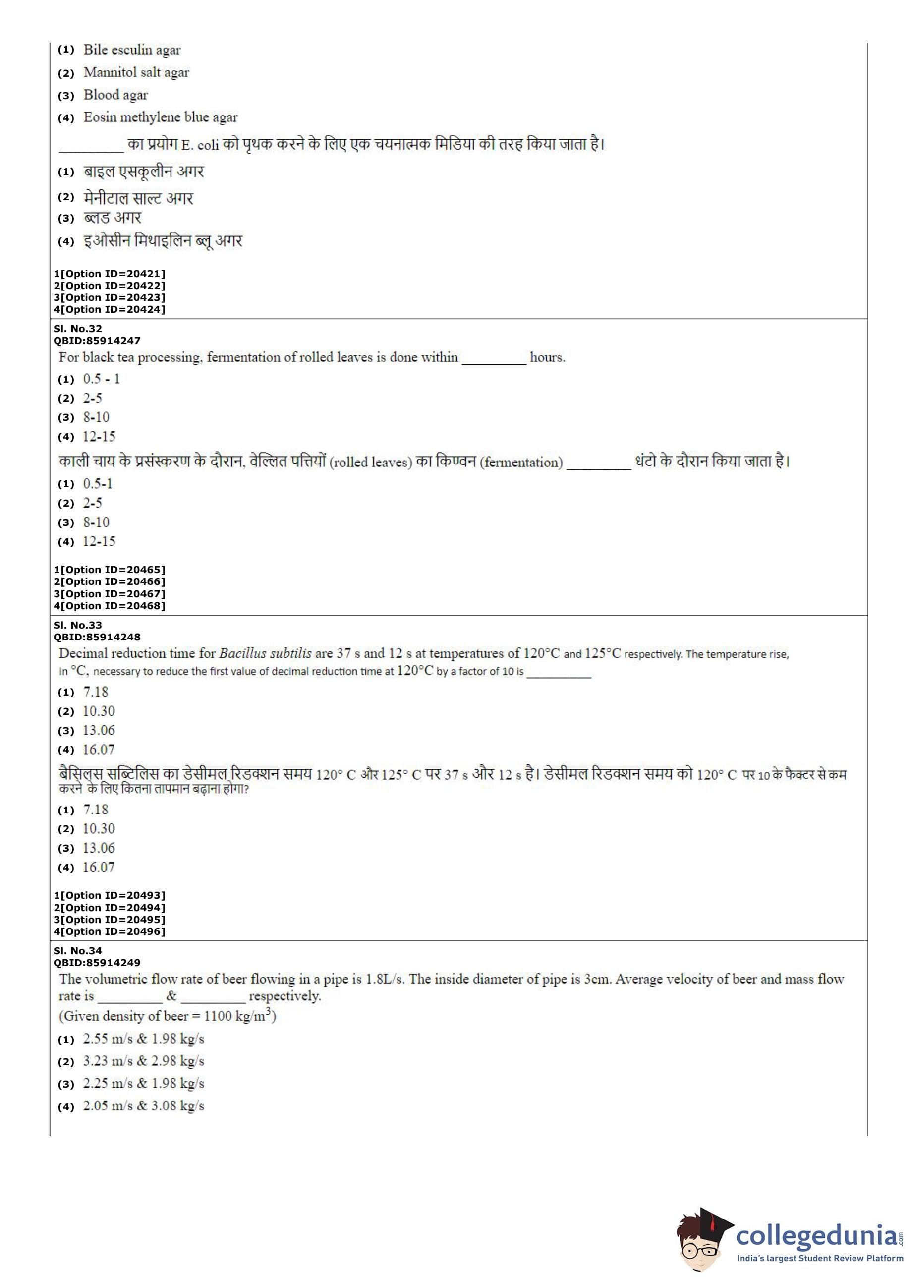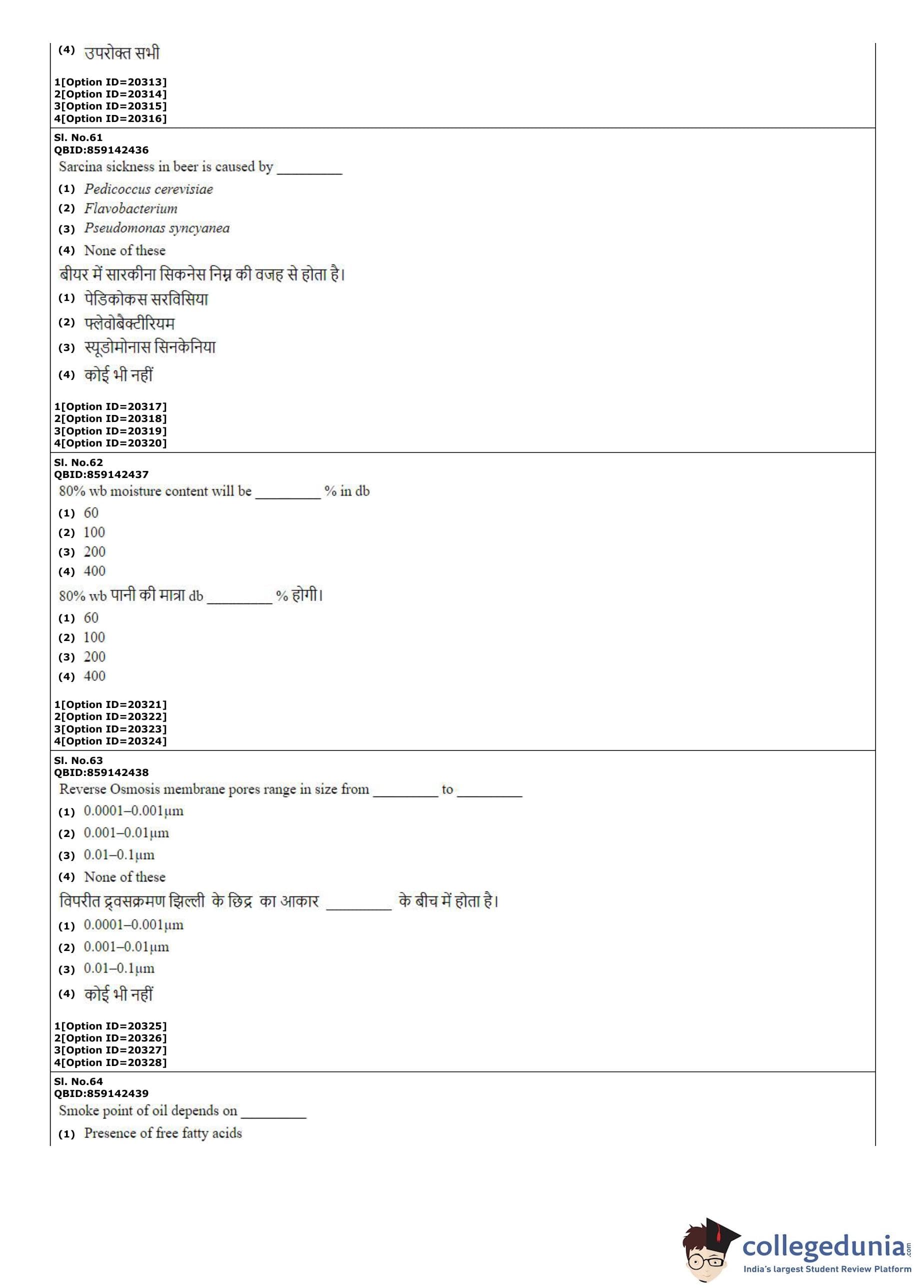 CUET PG 2022 Food Engineering Question Paper with Answer Key PDF