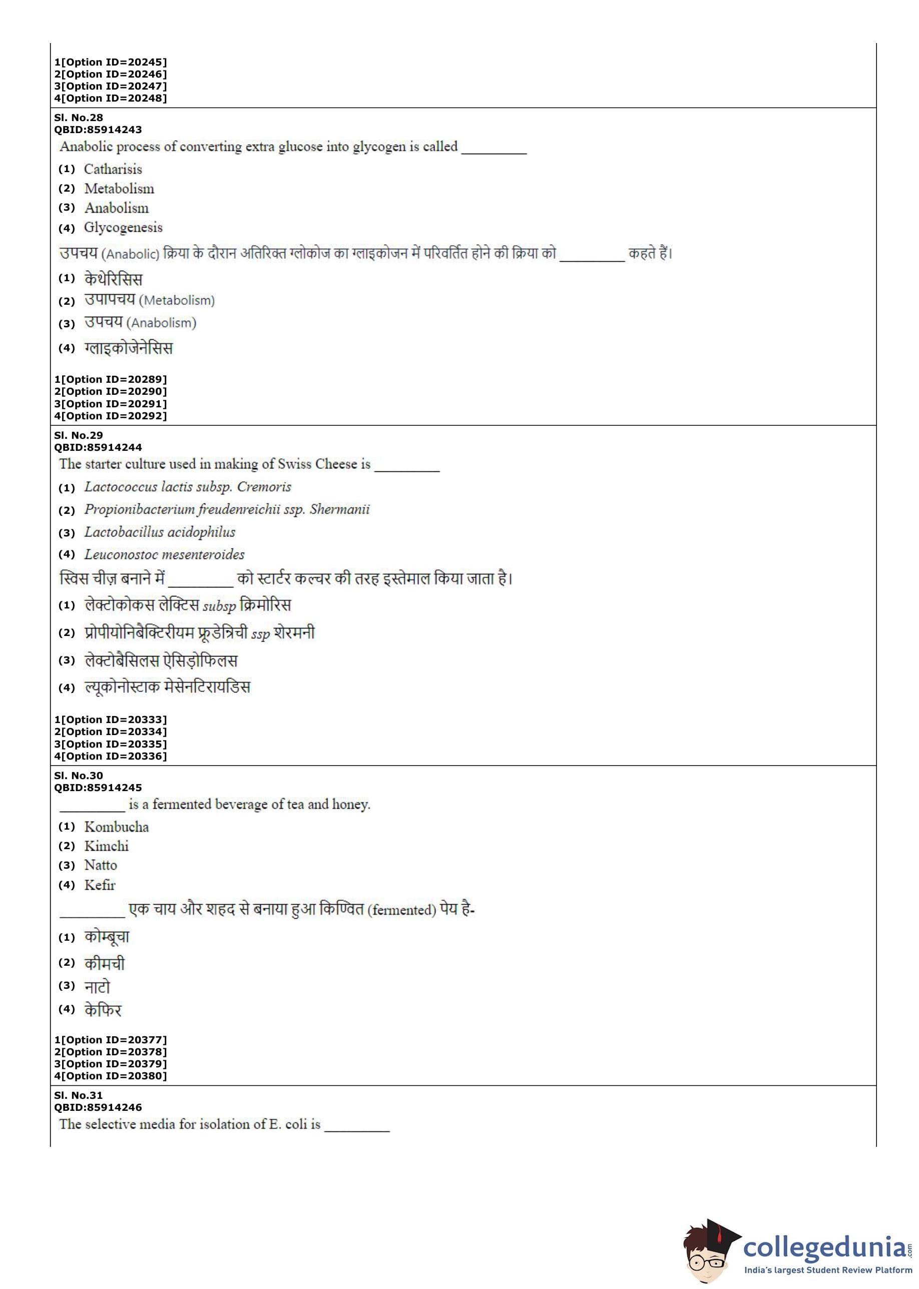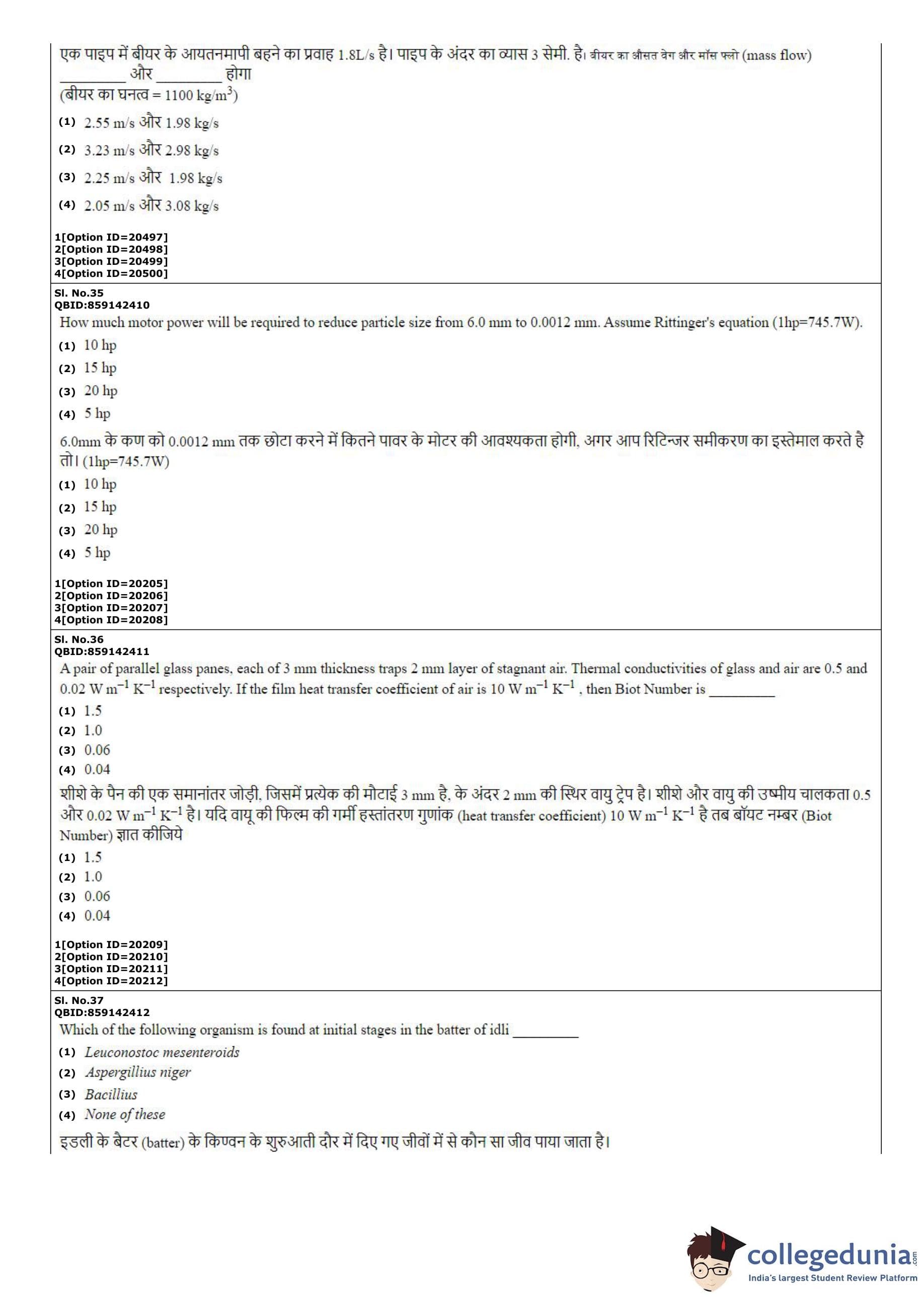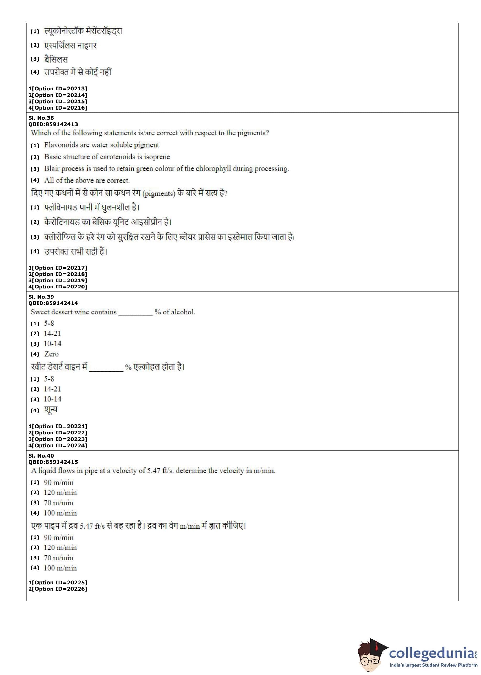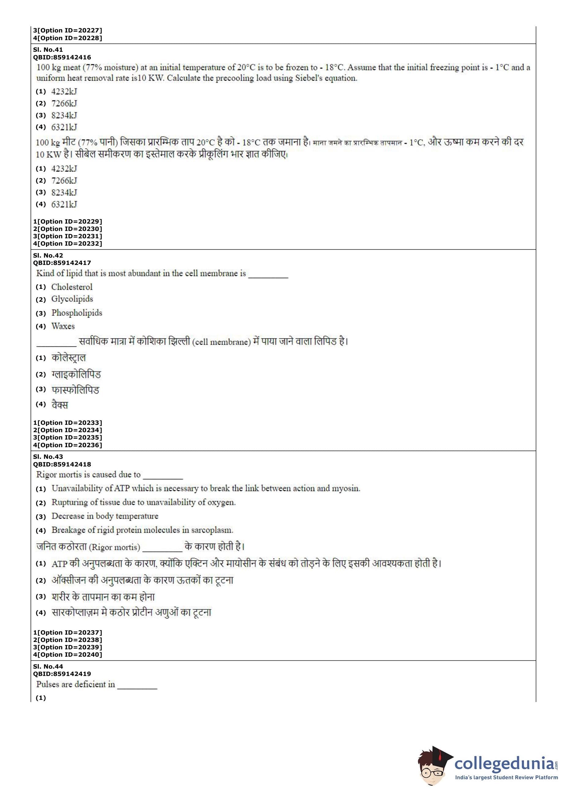 CUET PG 2022 Food Engineering Question Paper with Answer Key PDF