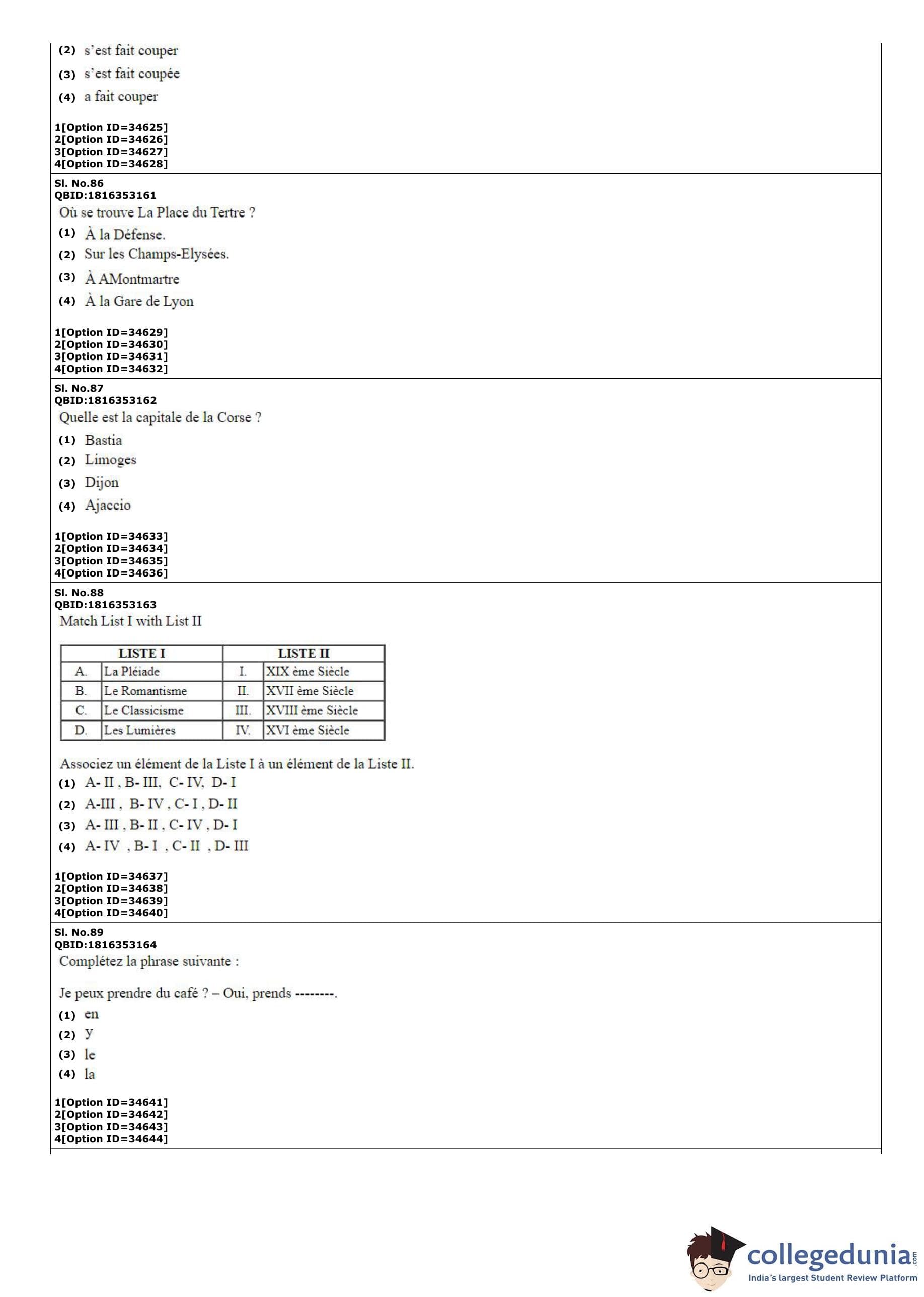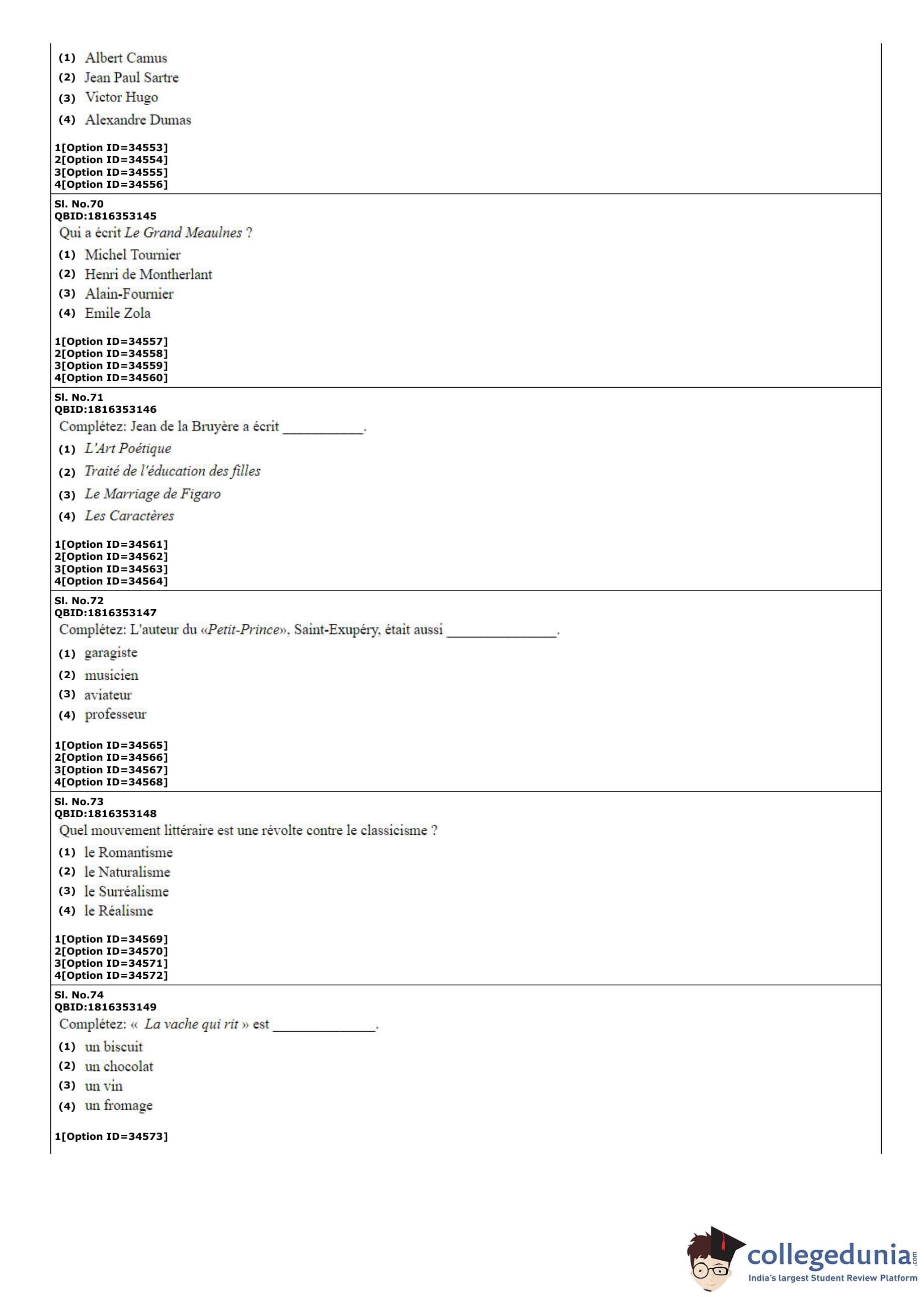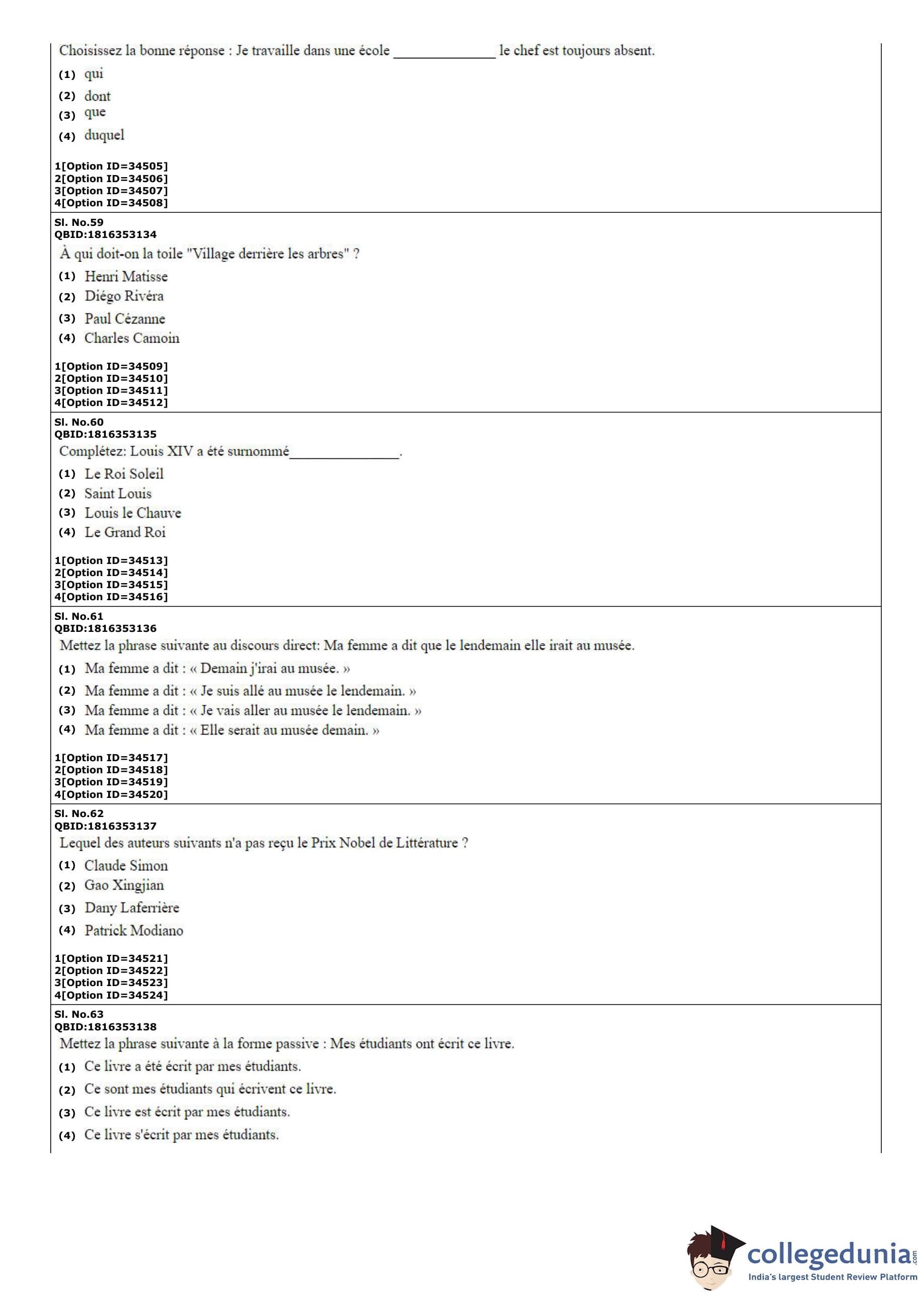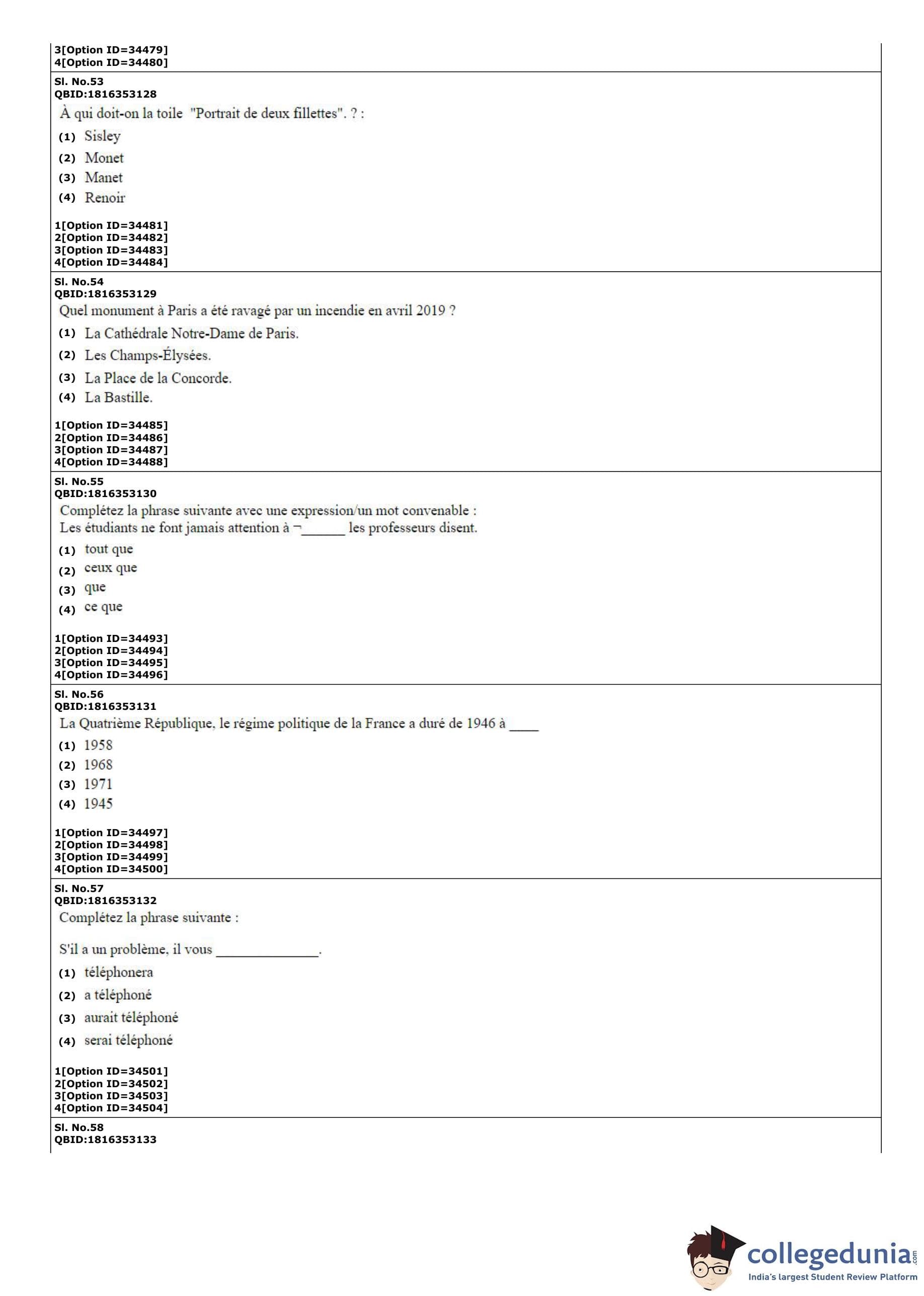 | CUET PG French Question Paper PDF | CUET PG French Answer Key PDF |