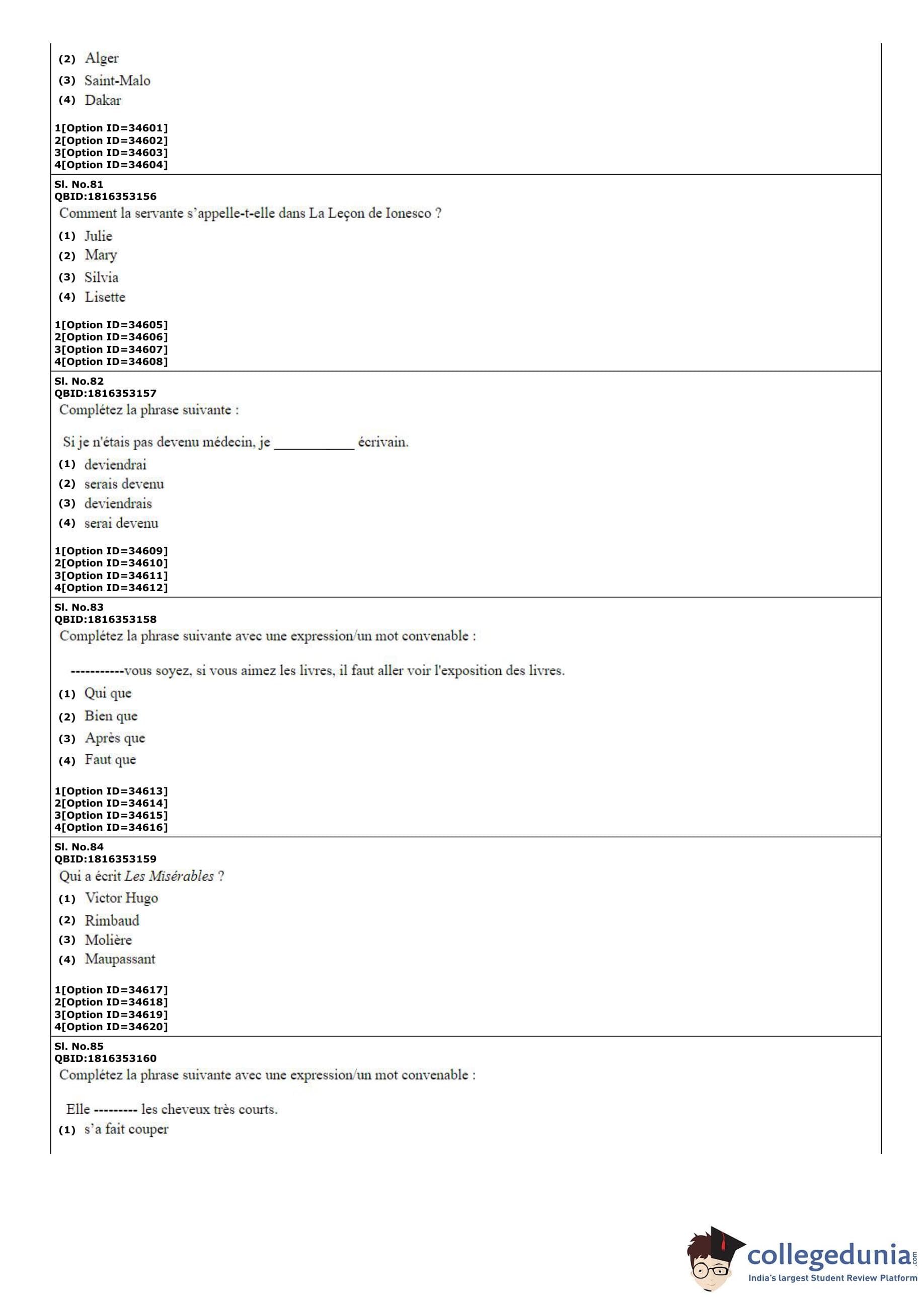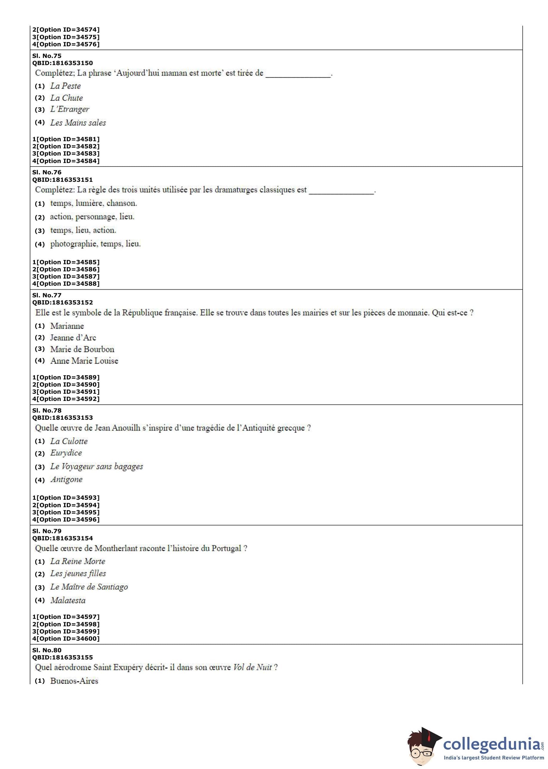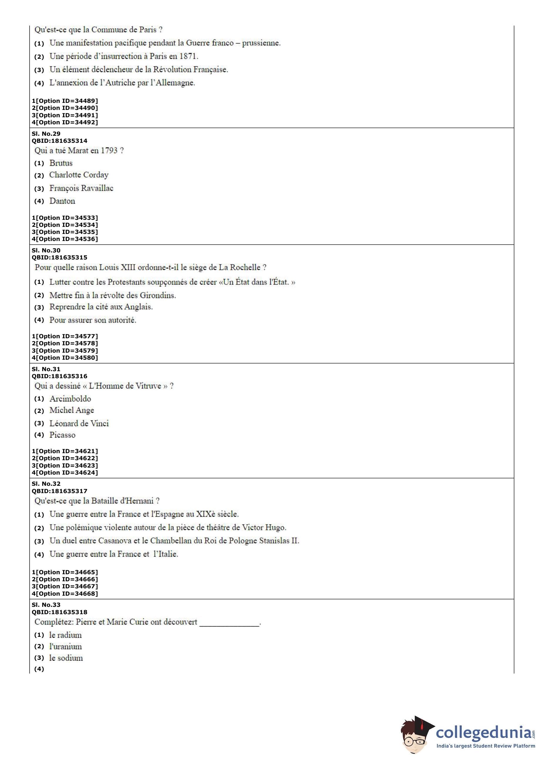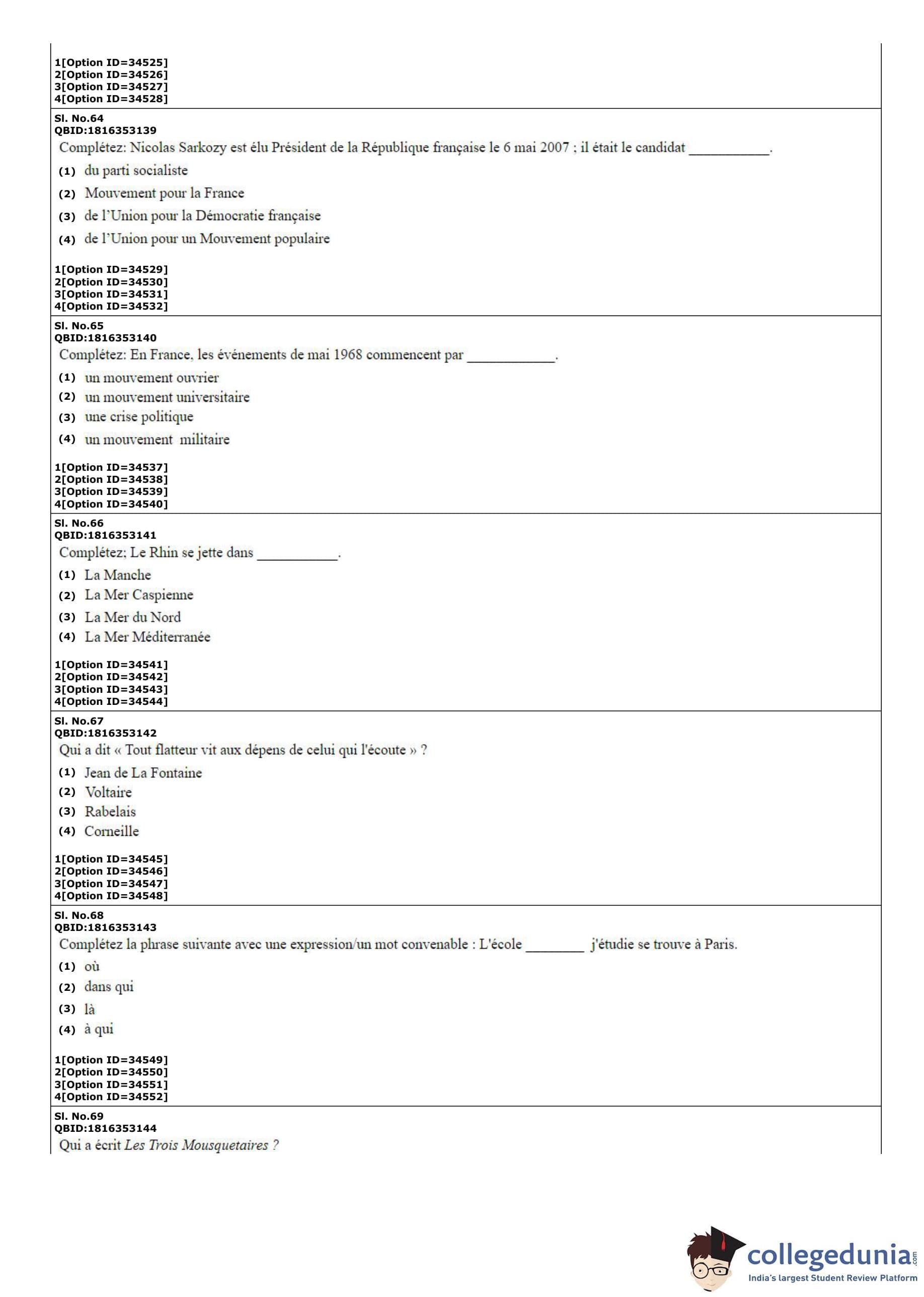 | CUET PG French Question Paper PDF | CUET PG French Answer Key PDF |