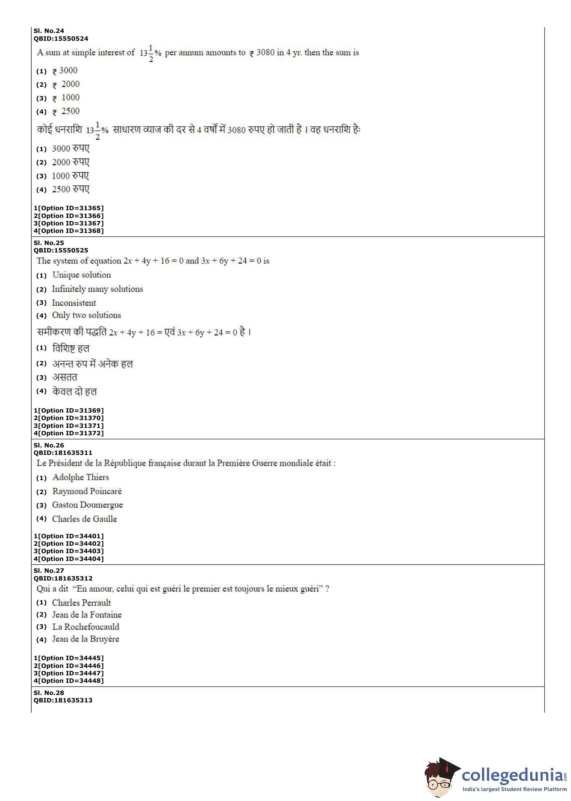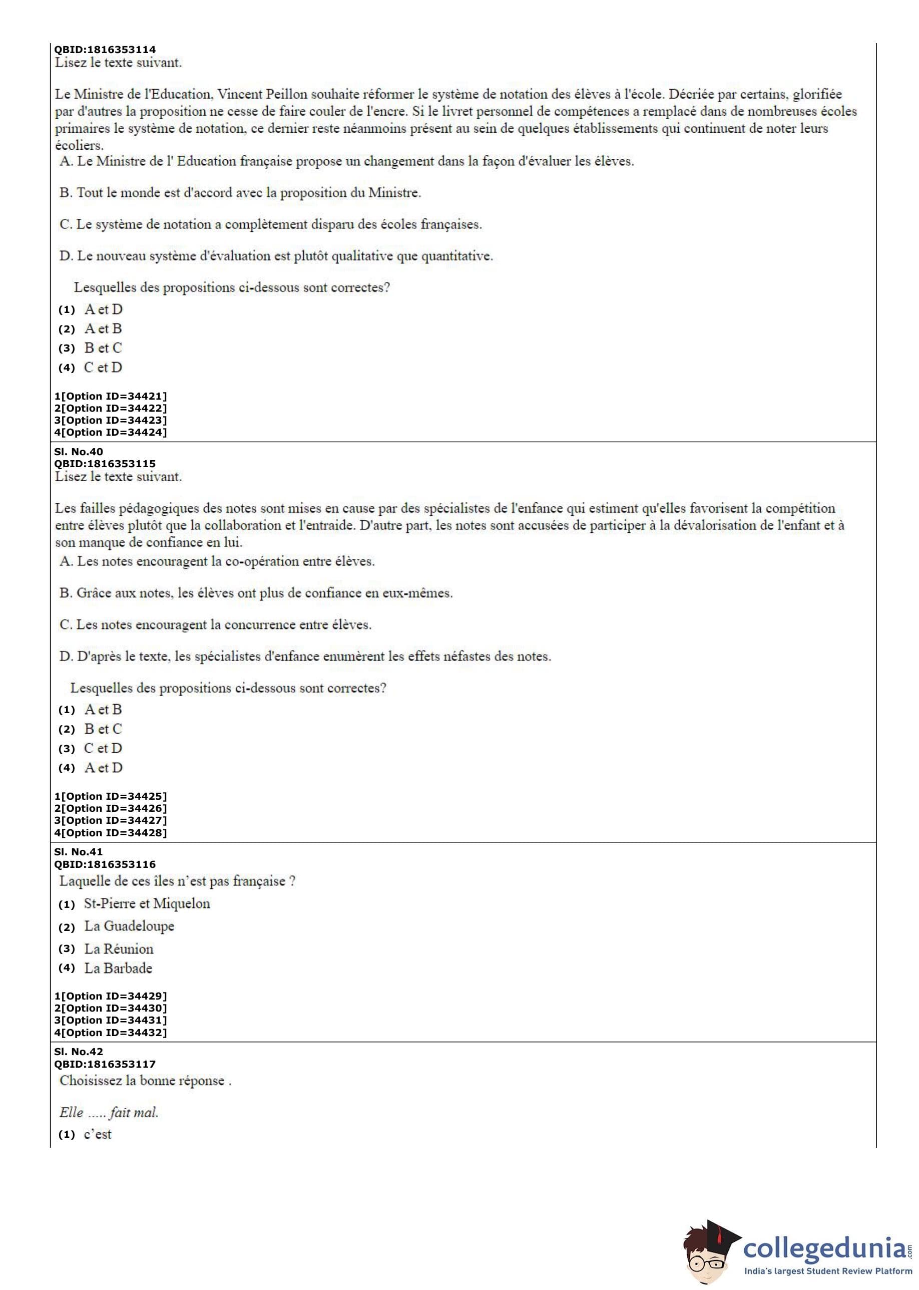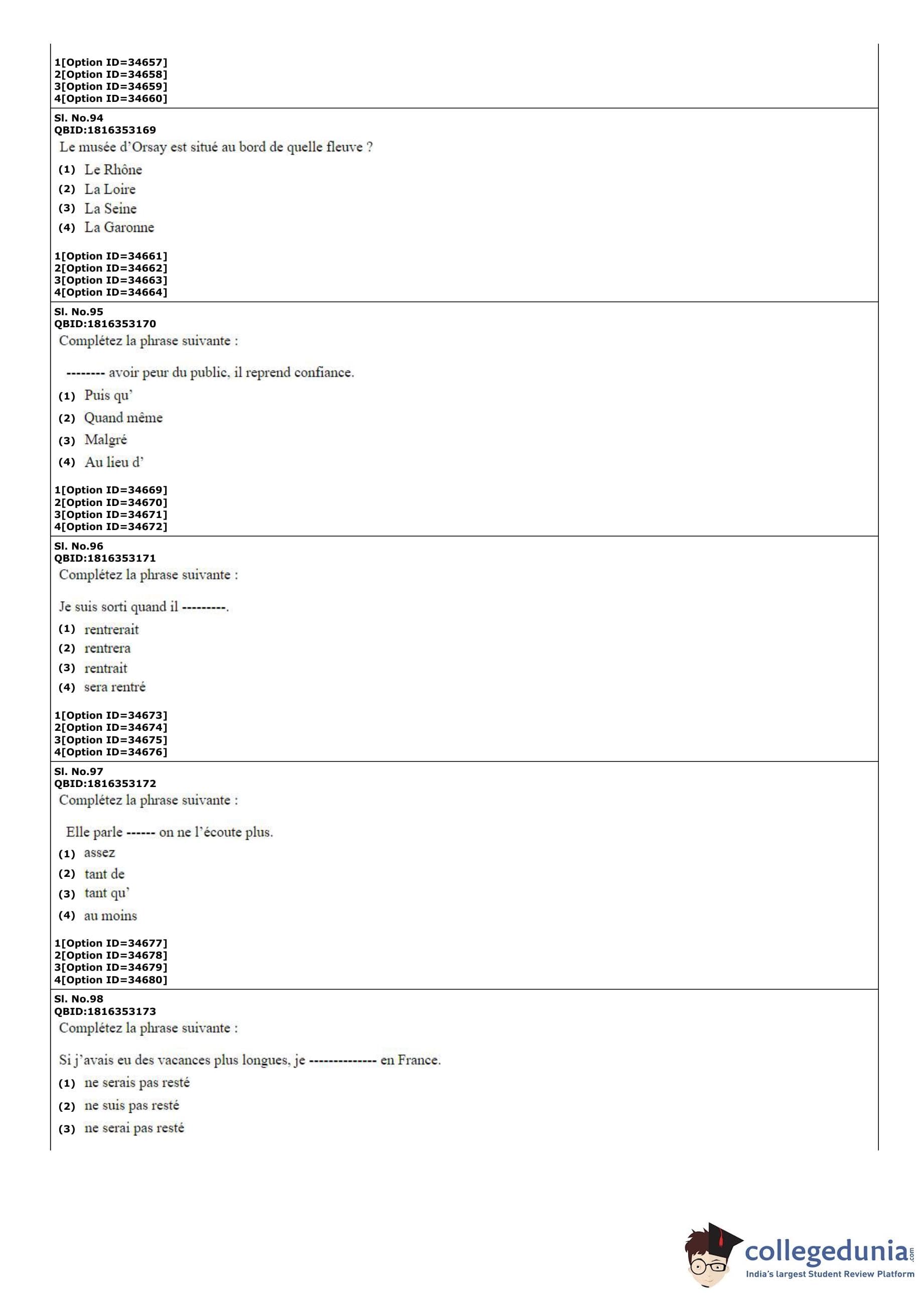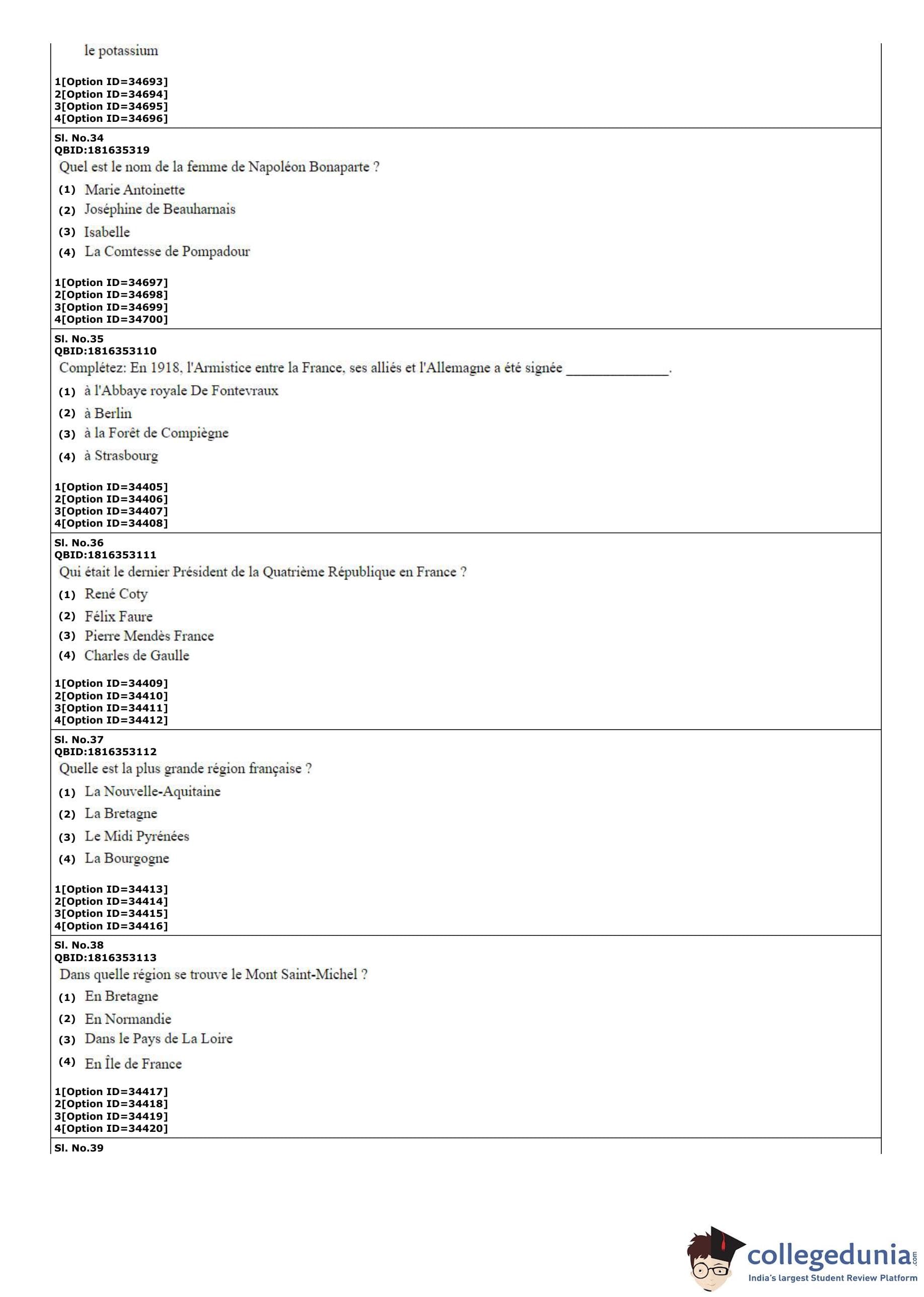 | CUET PG French Question Paper PDF | CUET PG French Answer Key PDF |