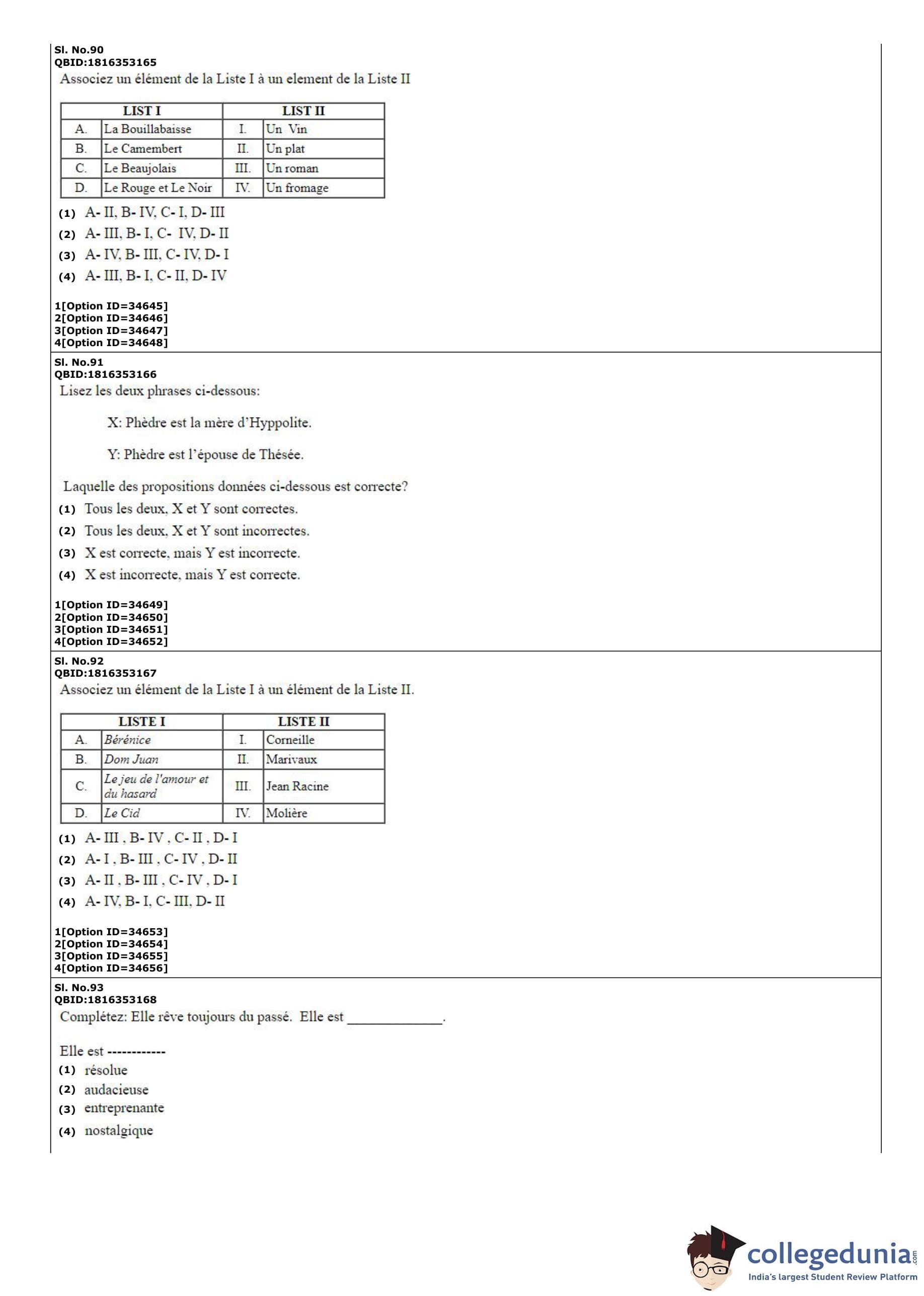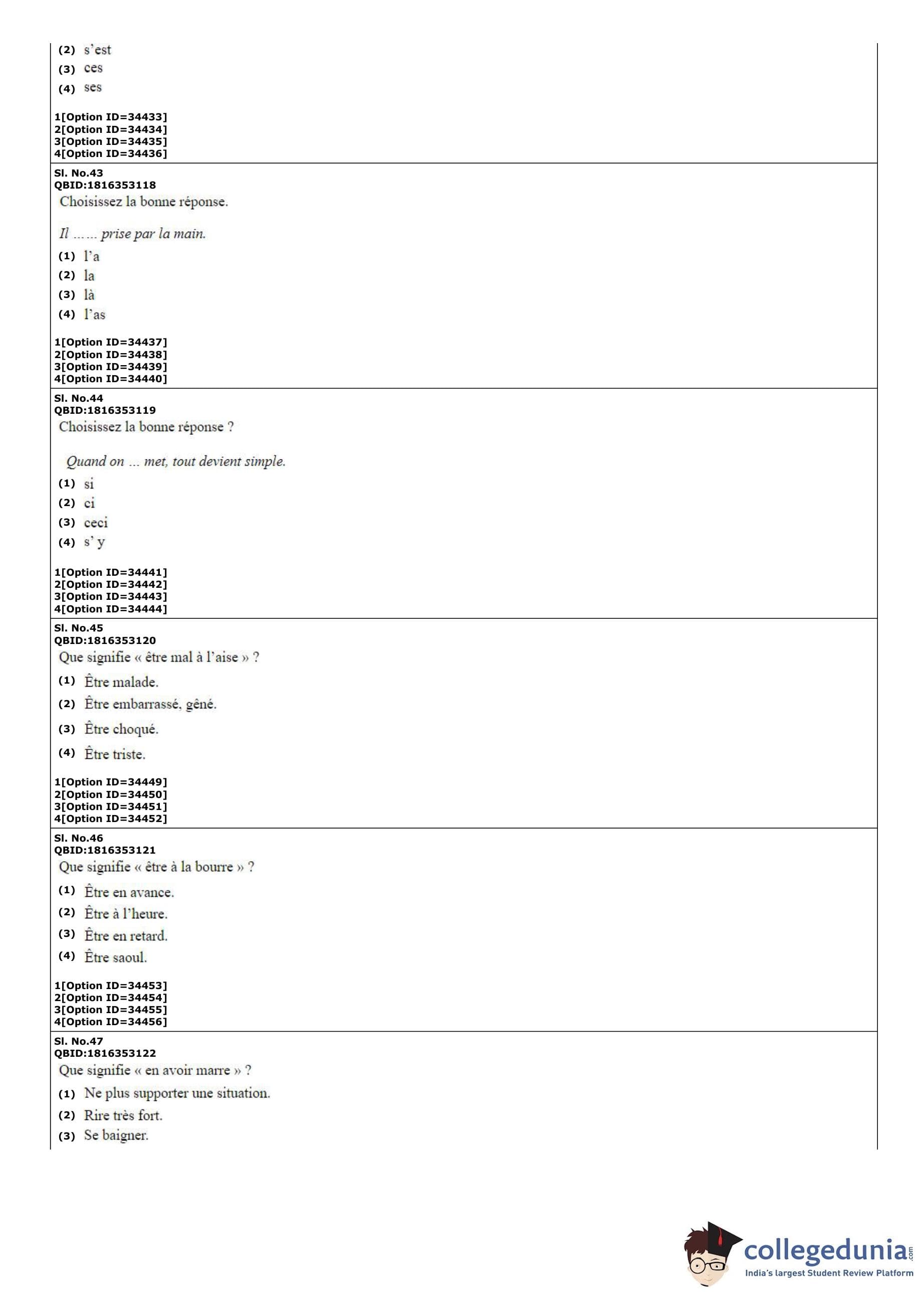CUET PG 2022 French Question Paper with Answer Key PDF