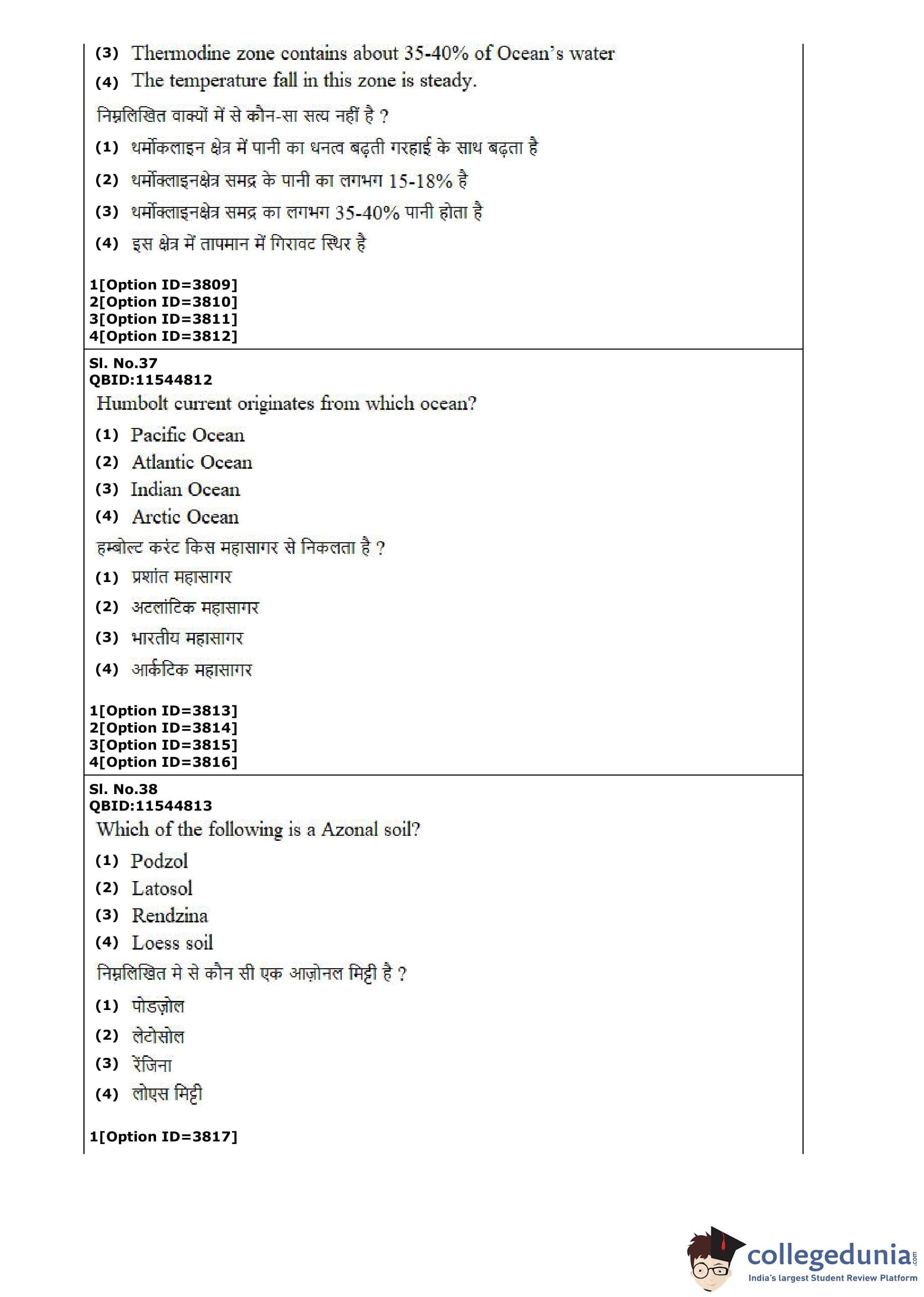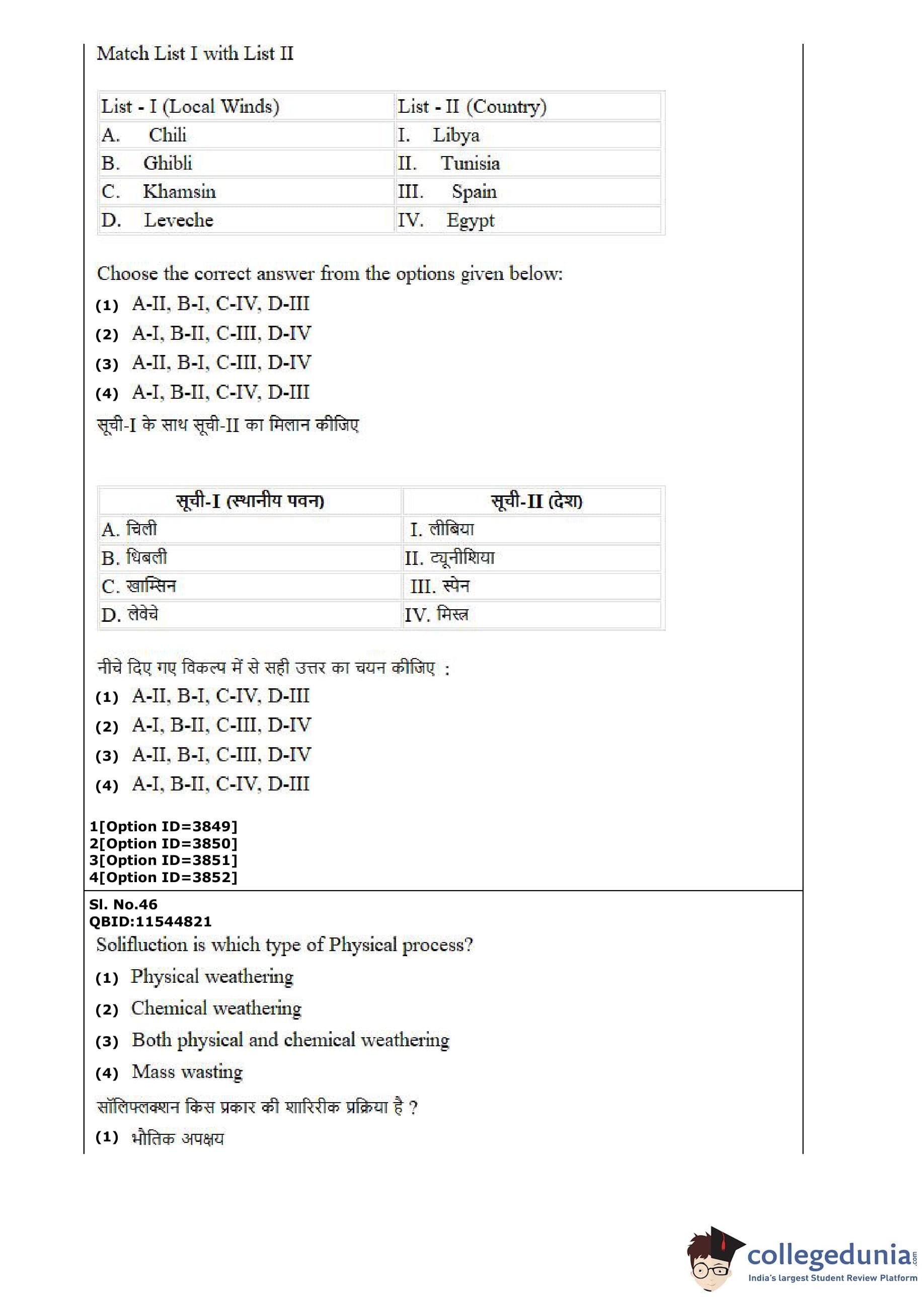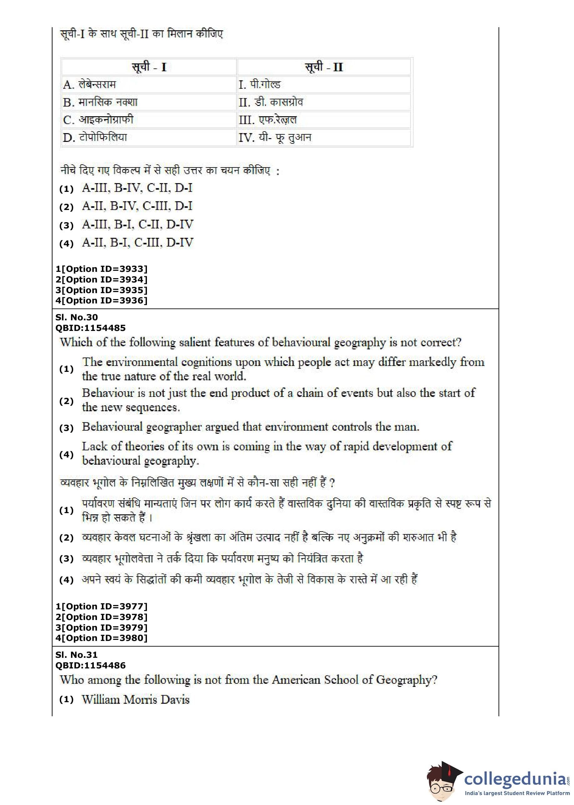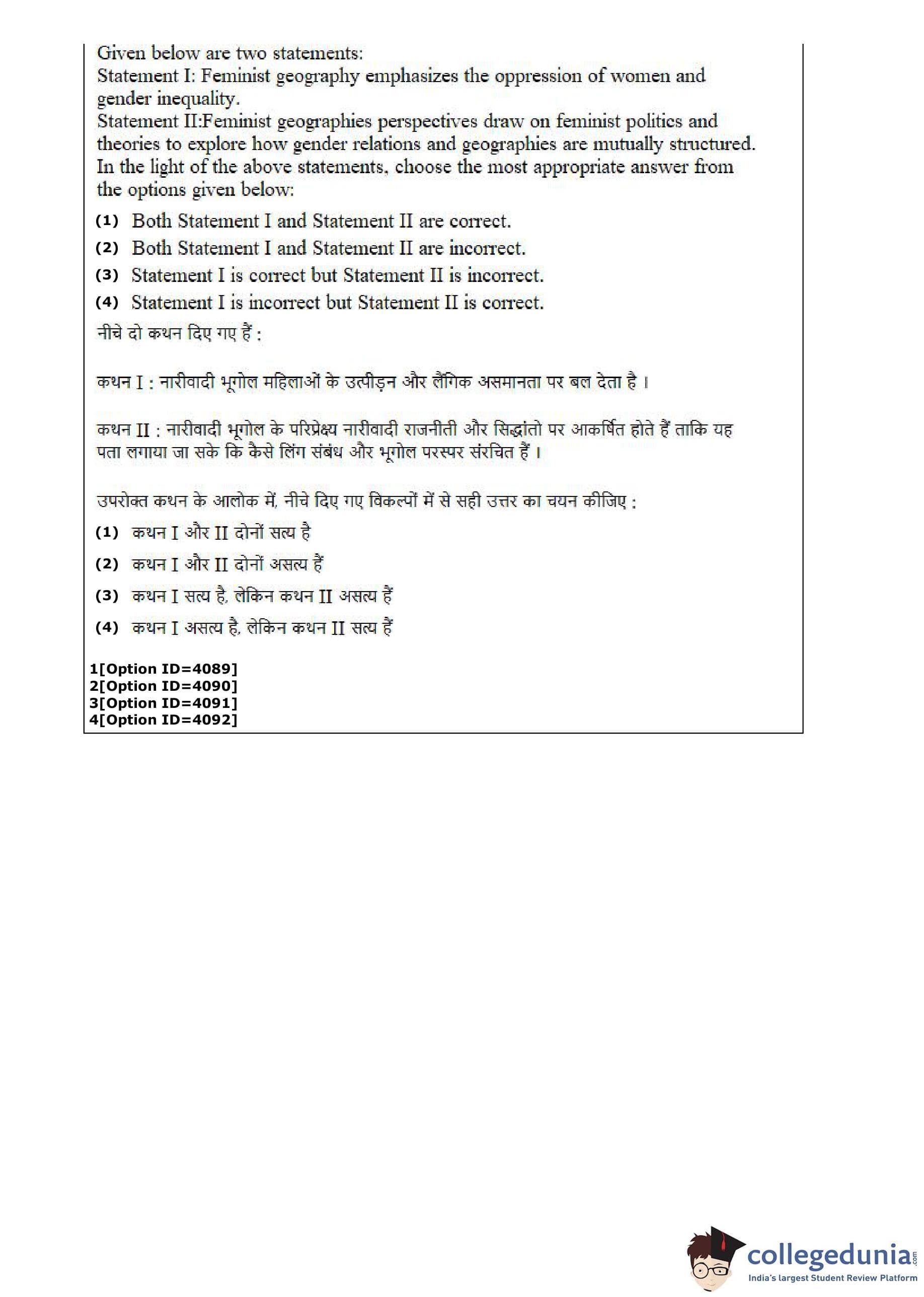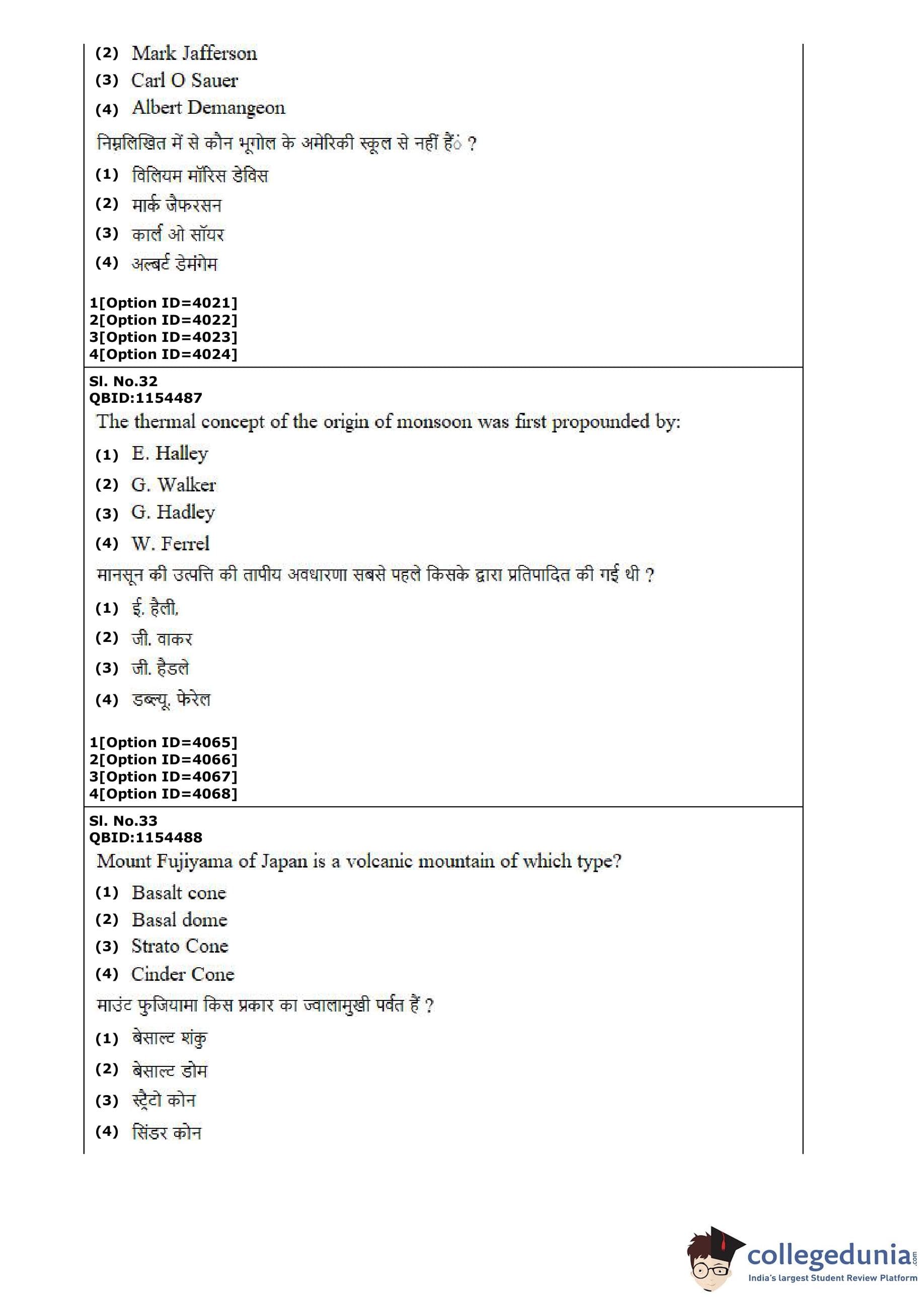 CUET PG 2022 Geography Question Paper with Answer Key PDF