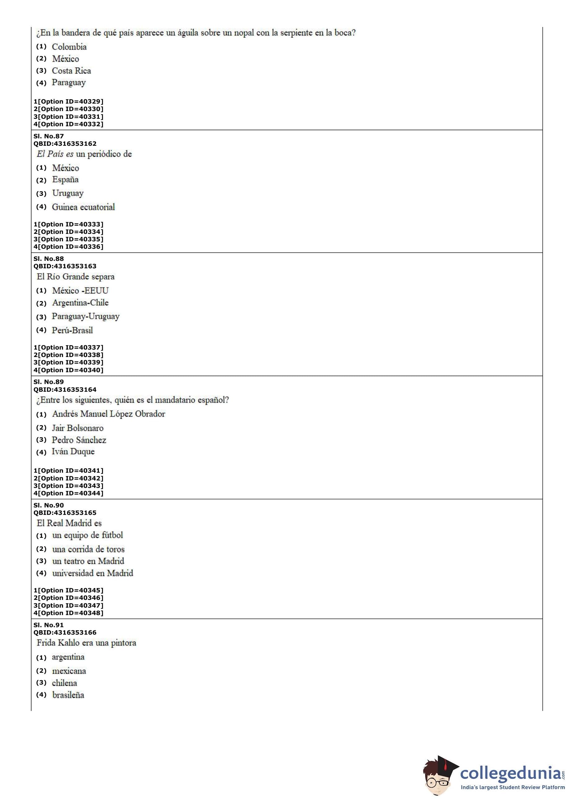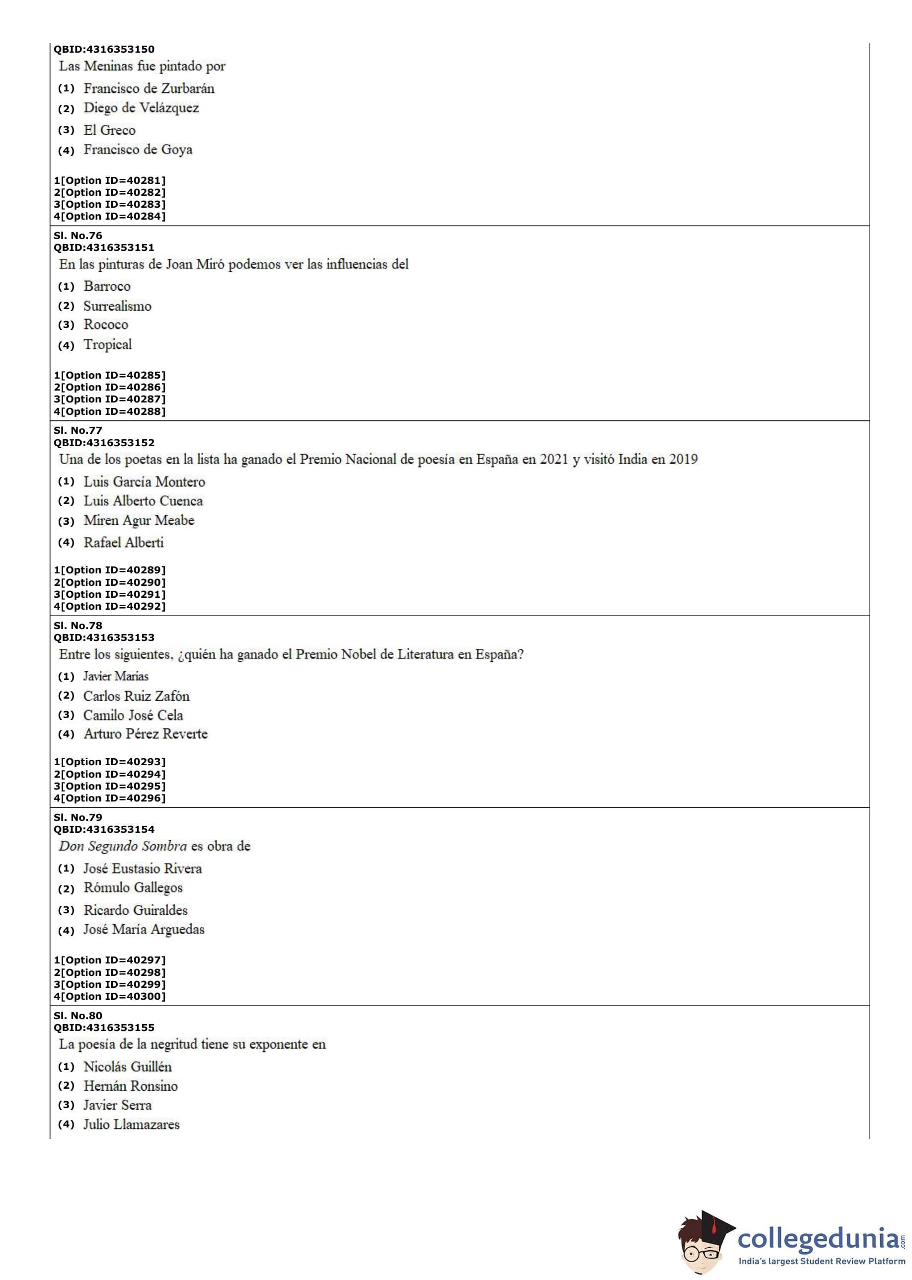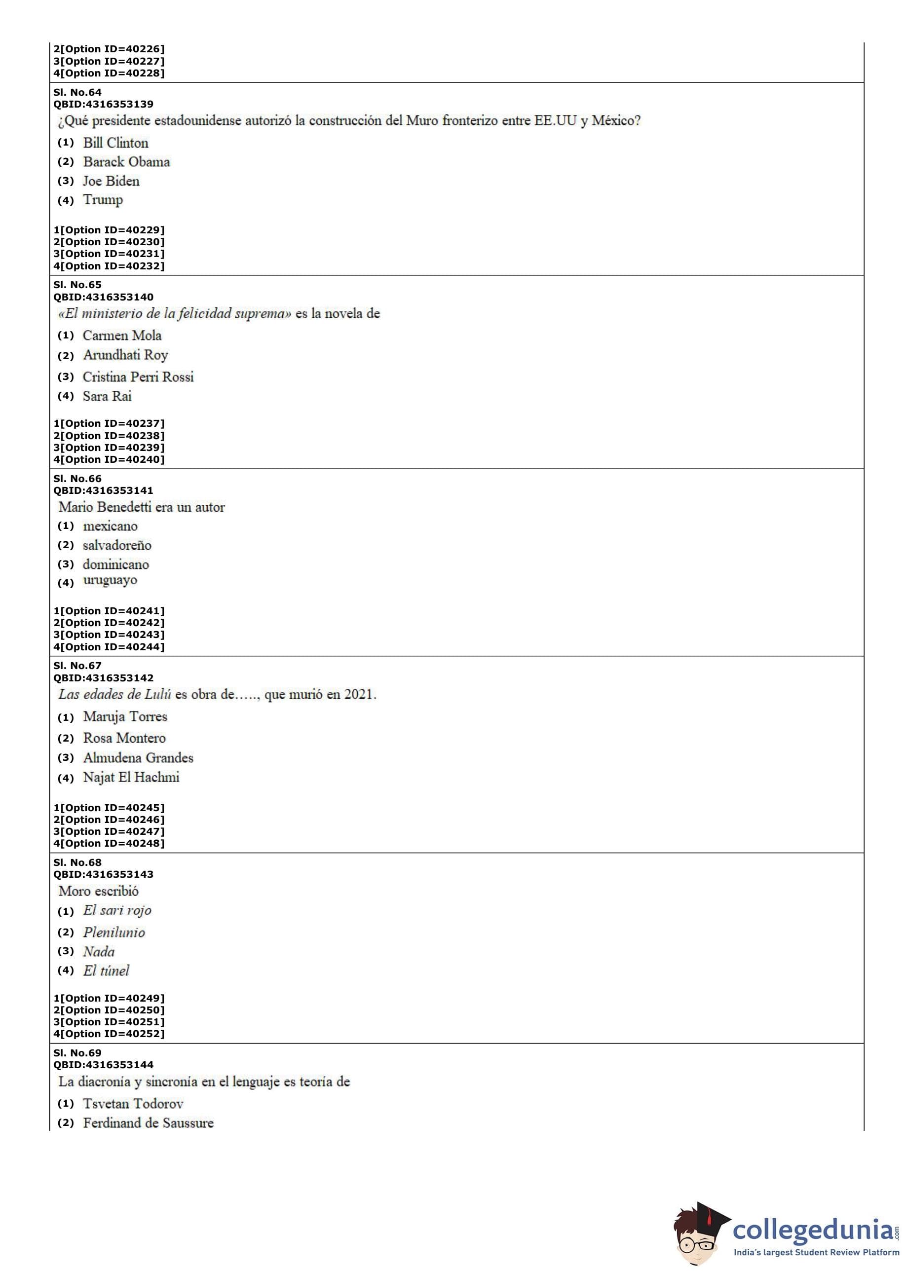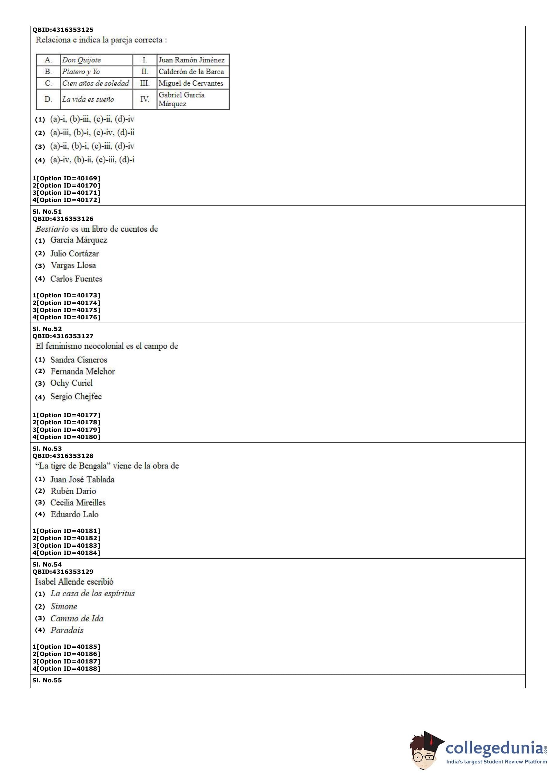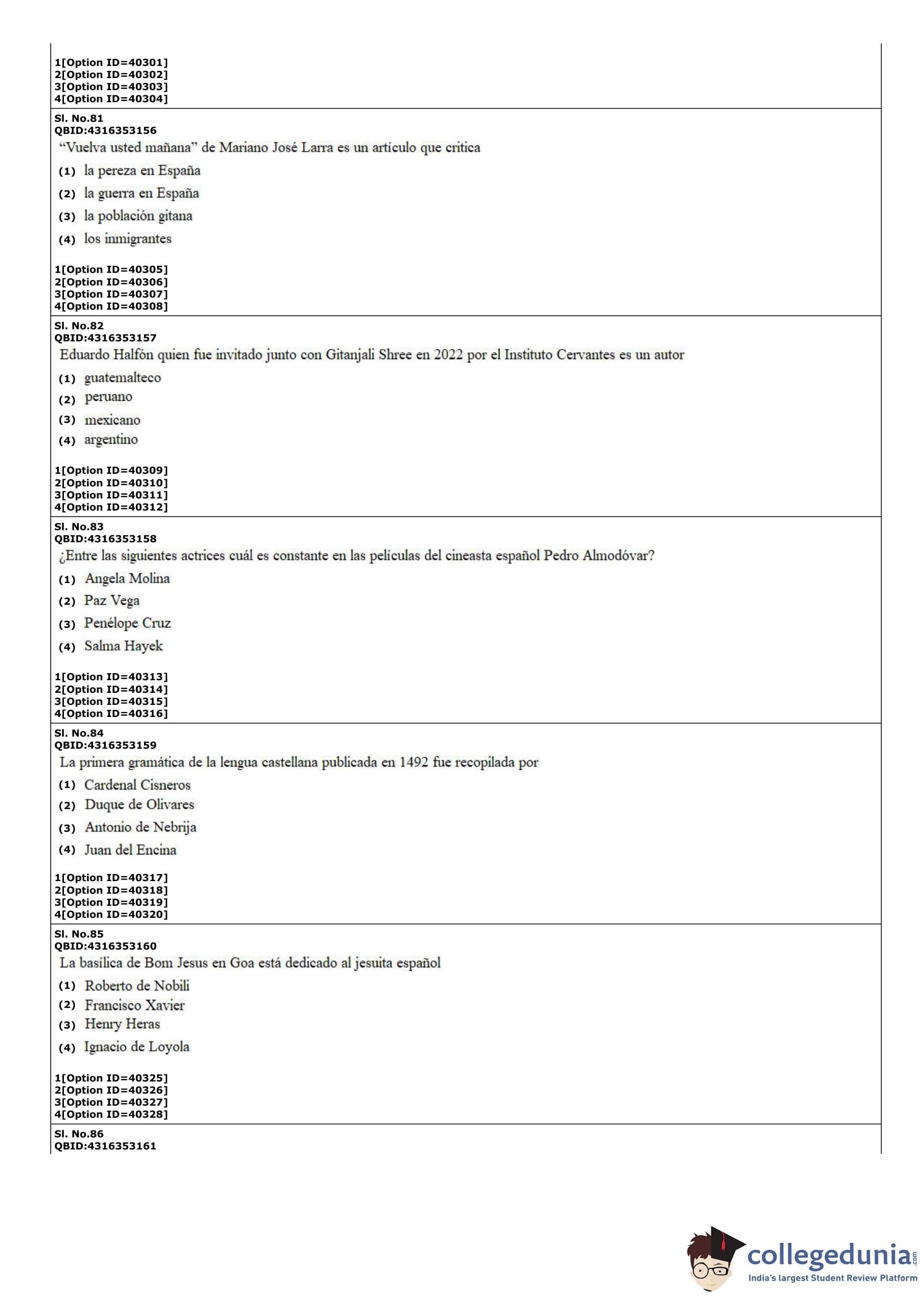 CUET PG 2022 Hispanic Question Paper with Answer Key PDF
