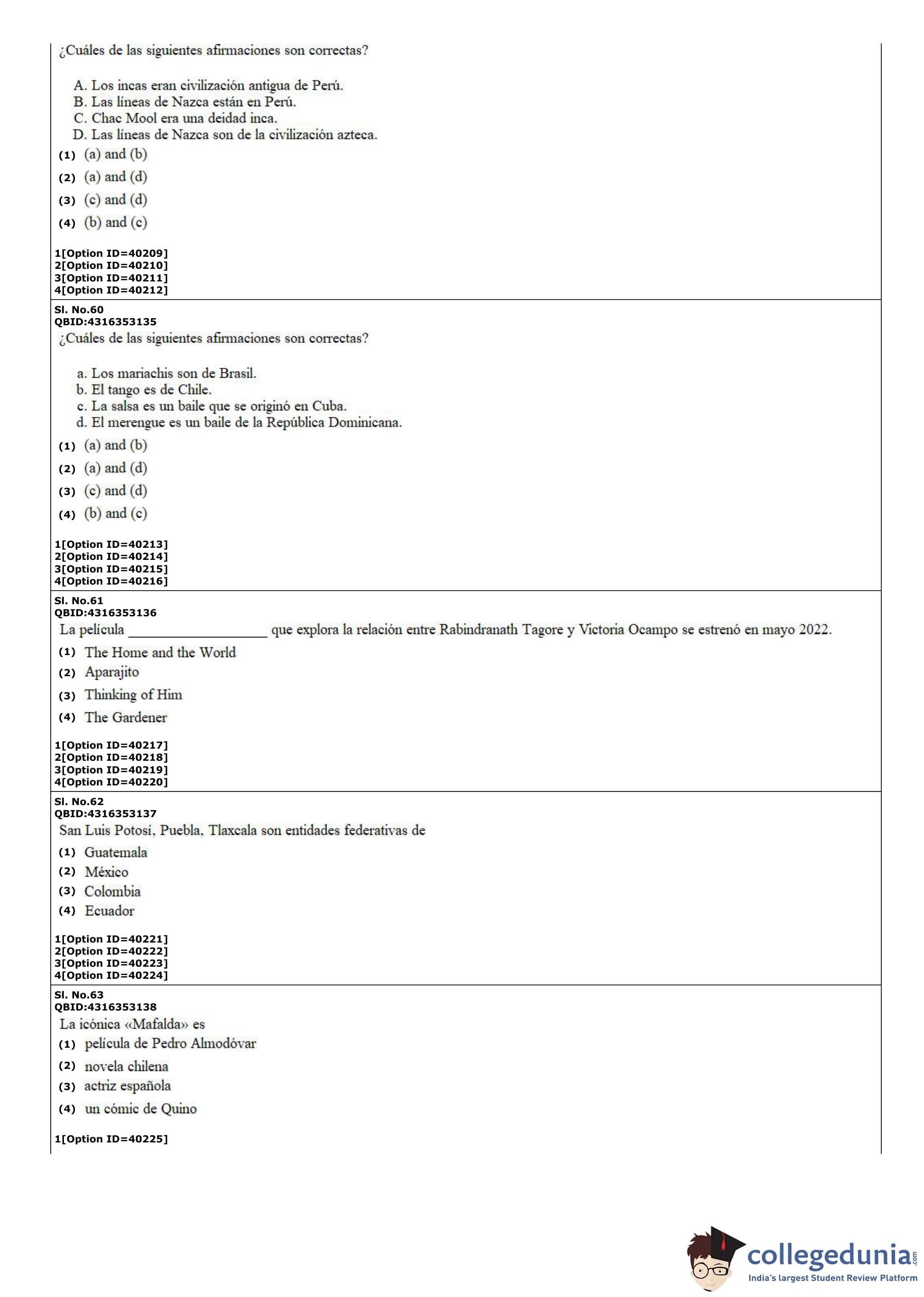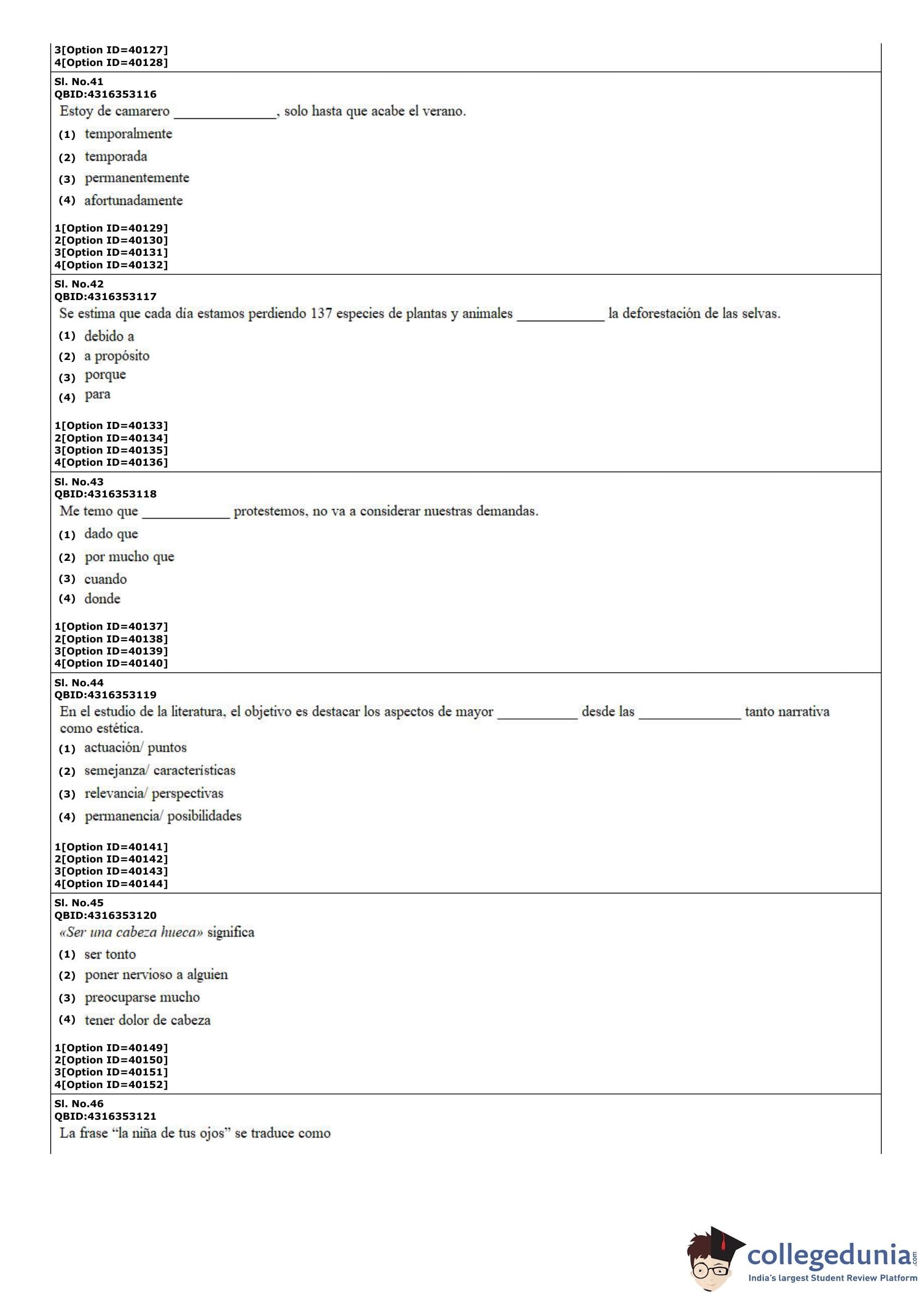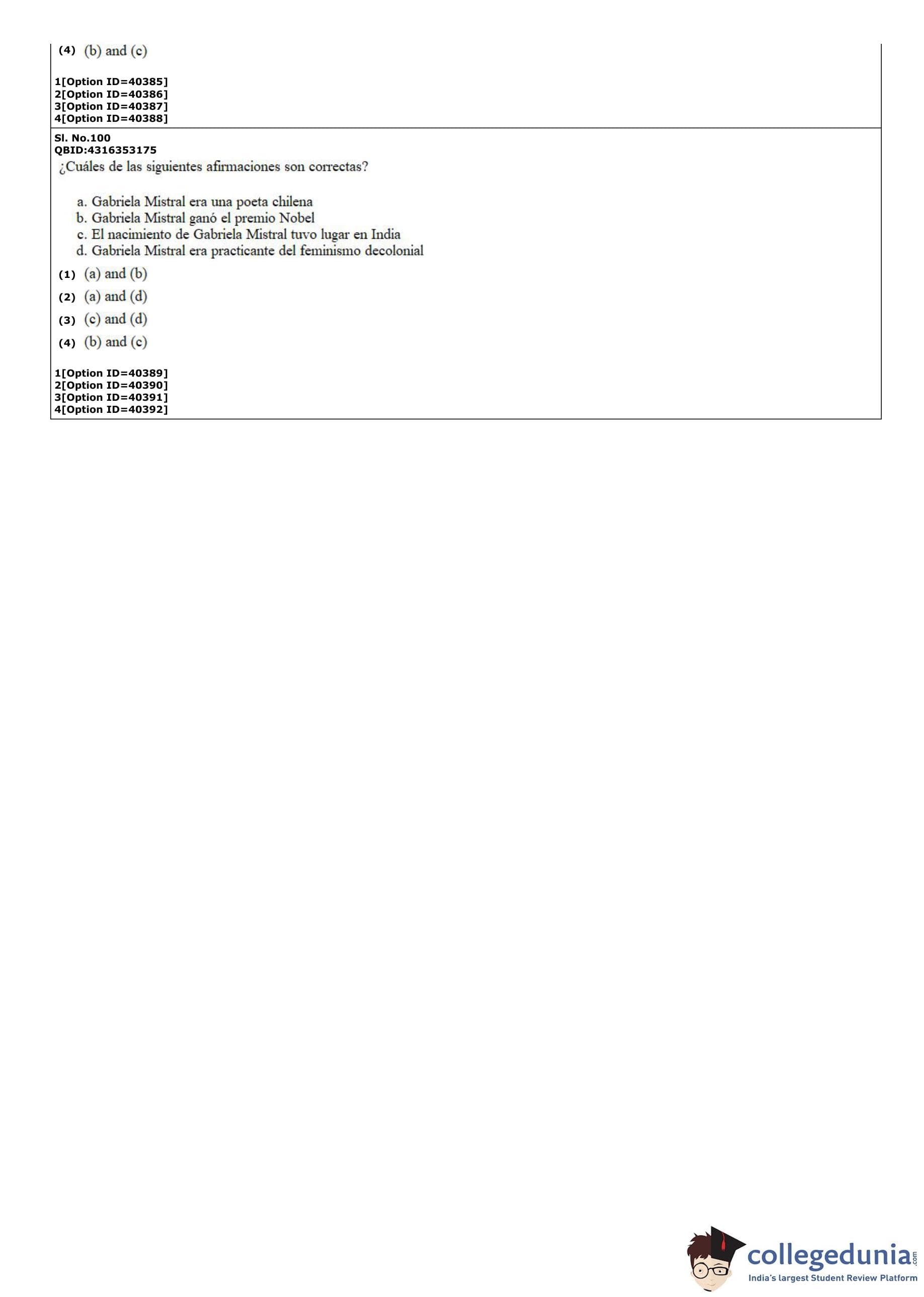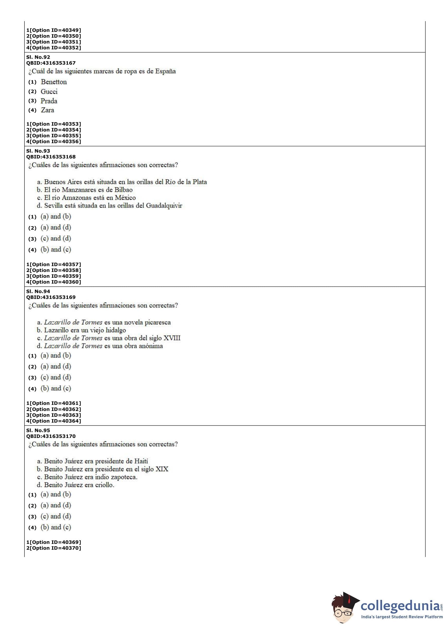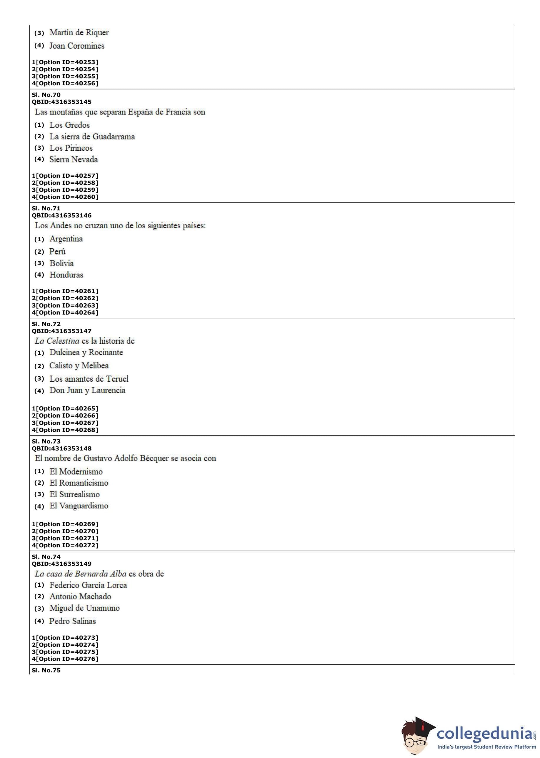 CUET PG 2022 Hispanic Question Paper with Answer Key PDF