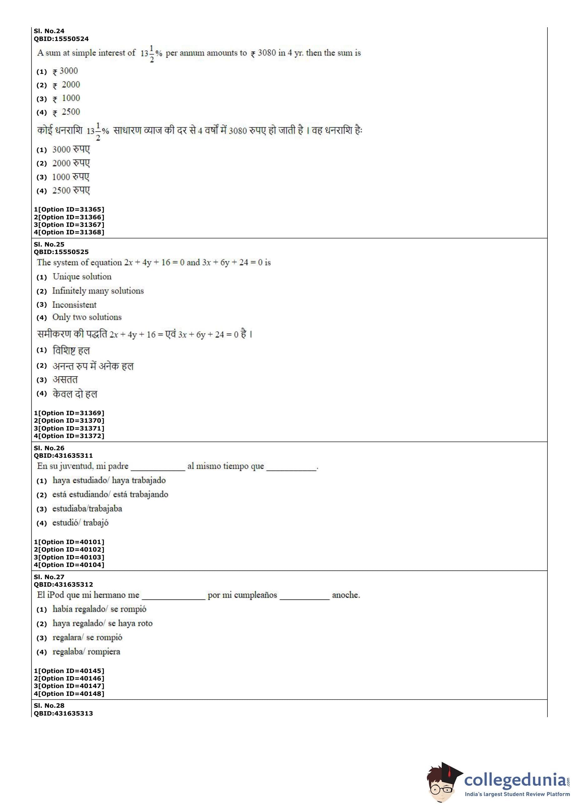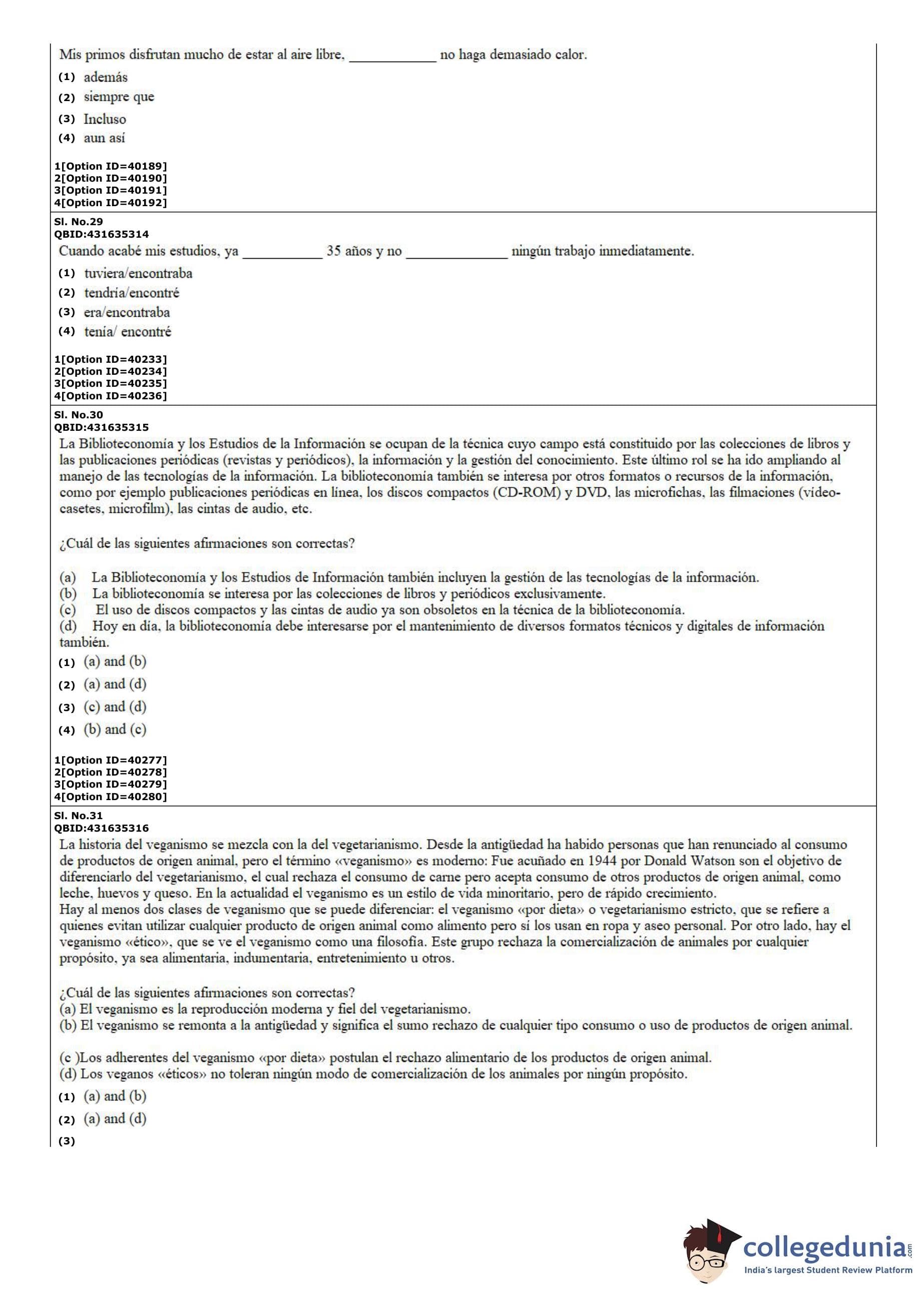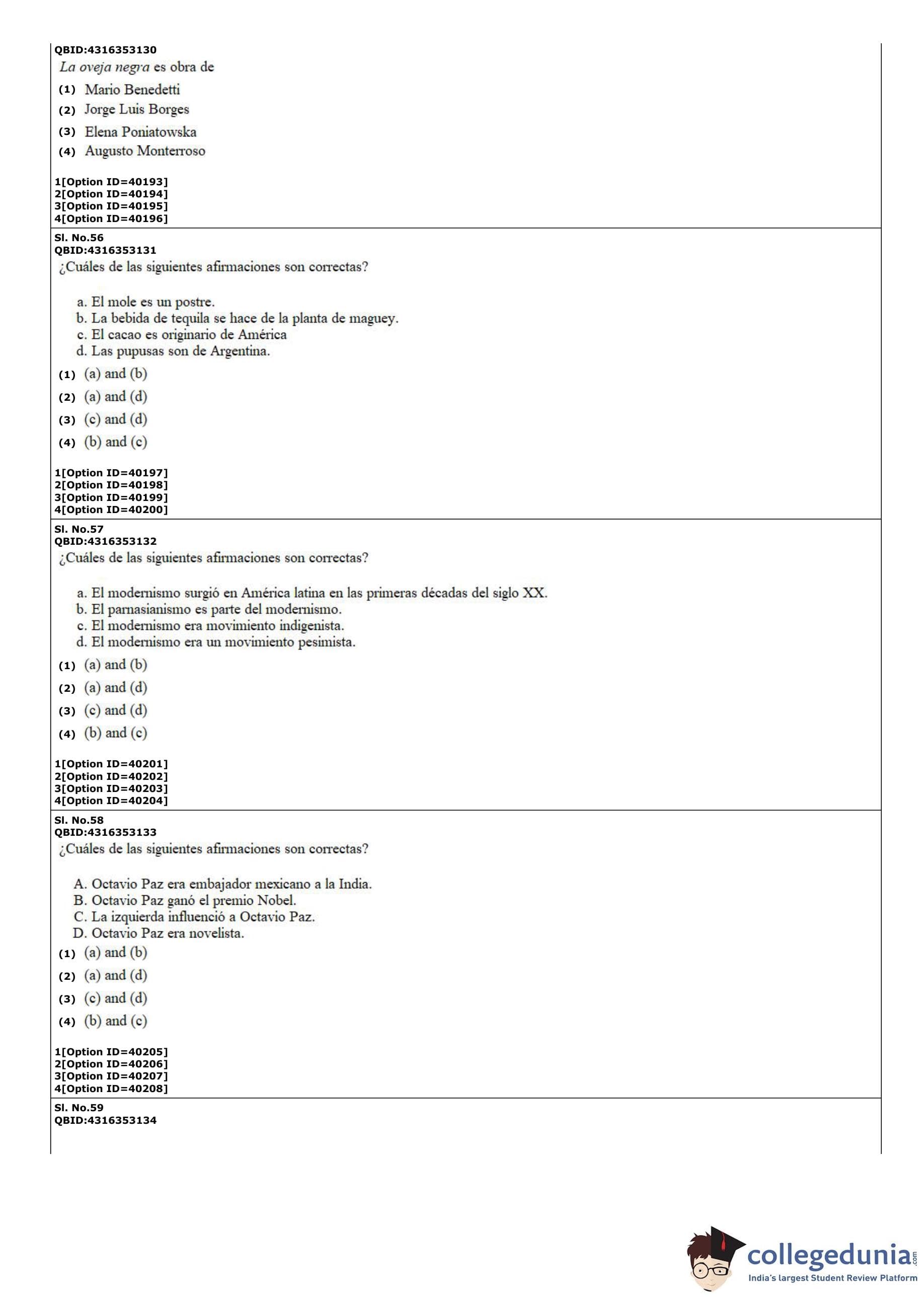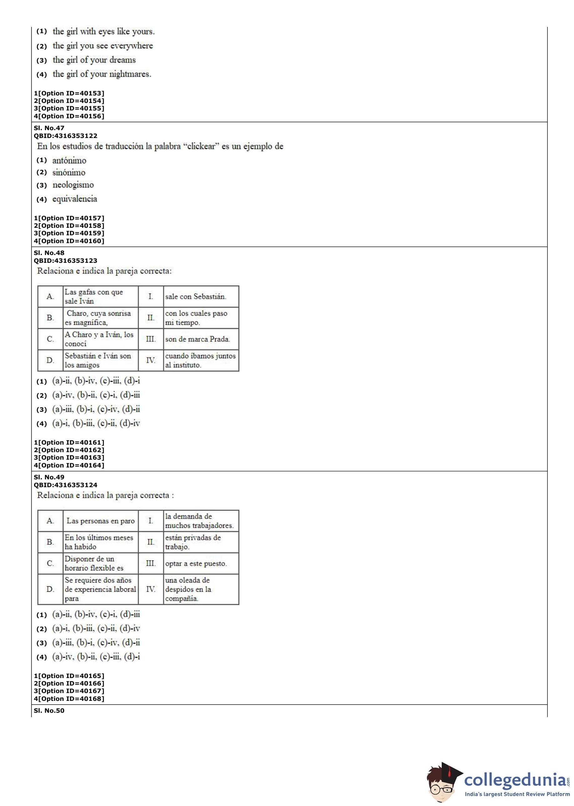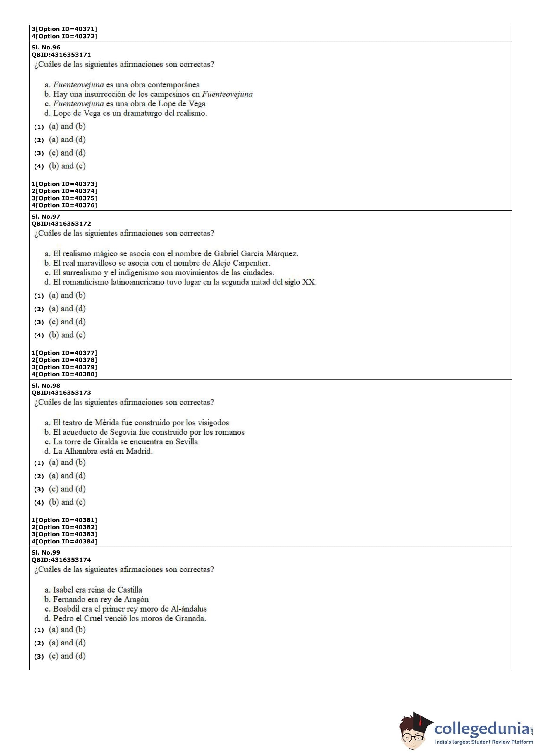CUET PG 2022 Hispanic Question Paper with Answer Key PDF