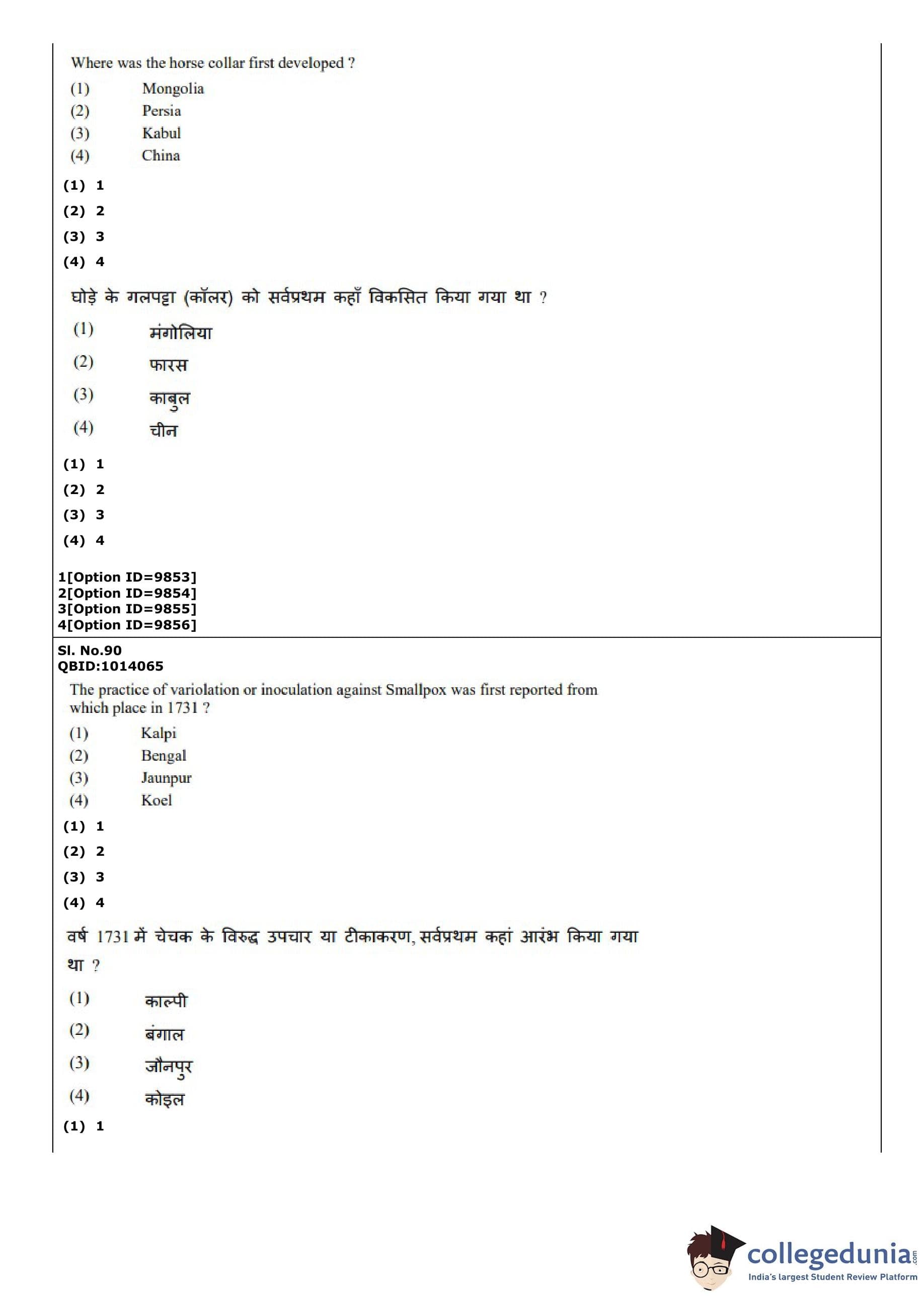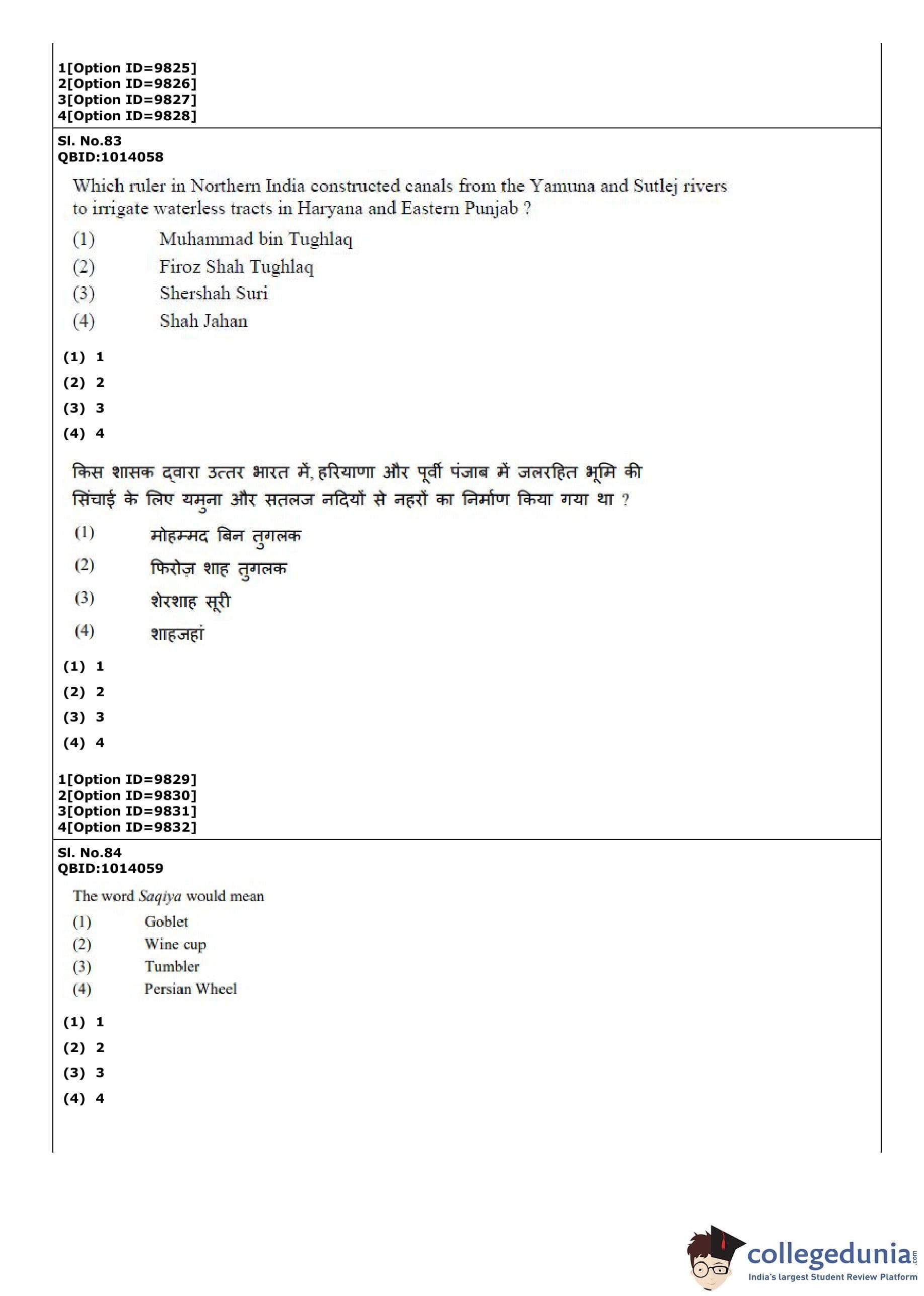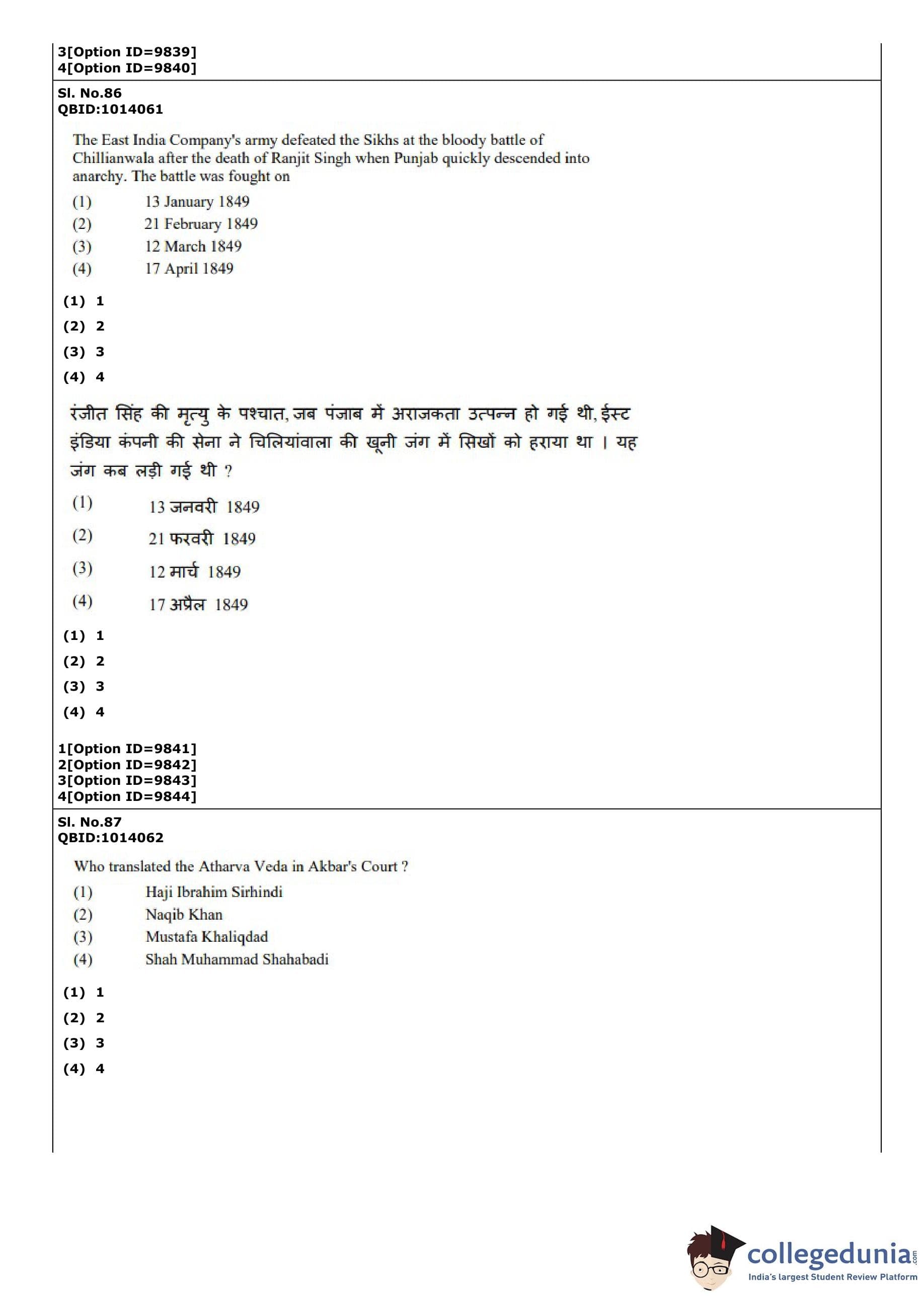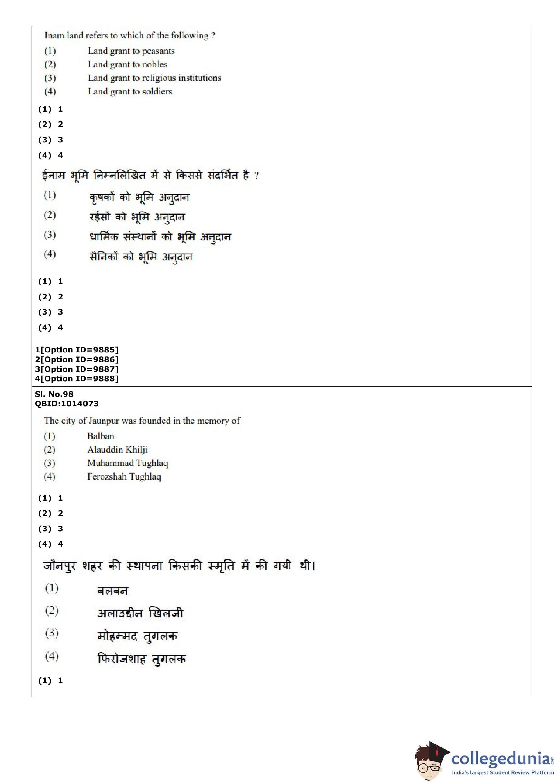 CUET PG 2022 History Question Paper with Answer Key PDF