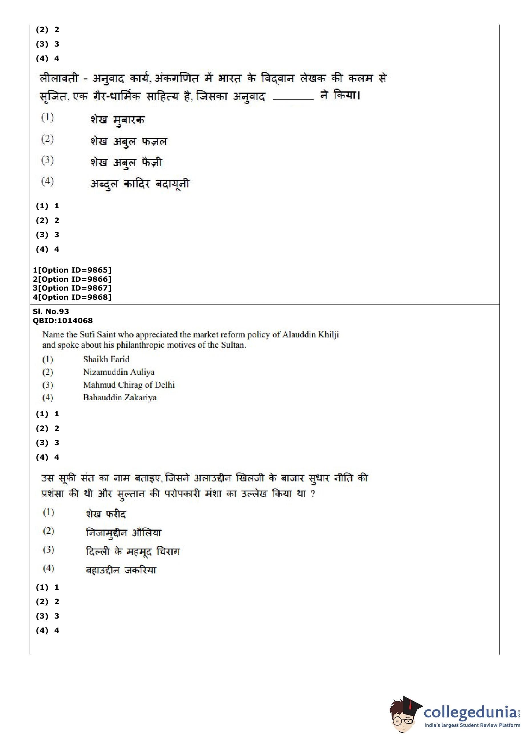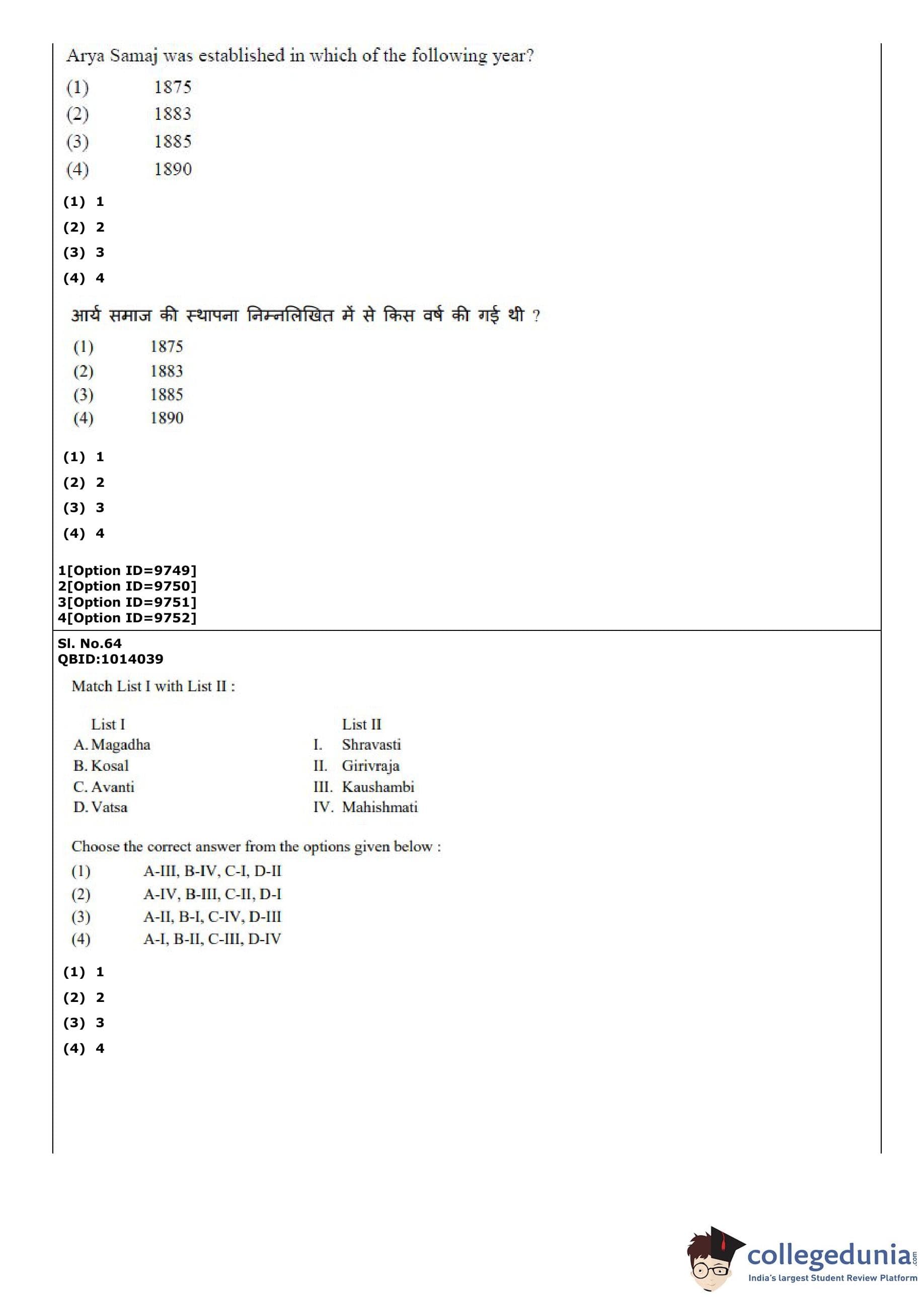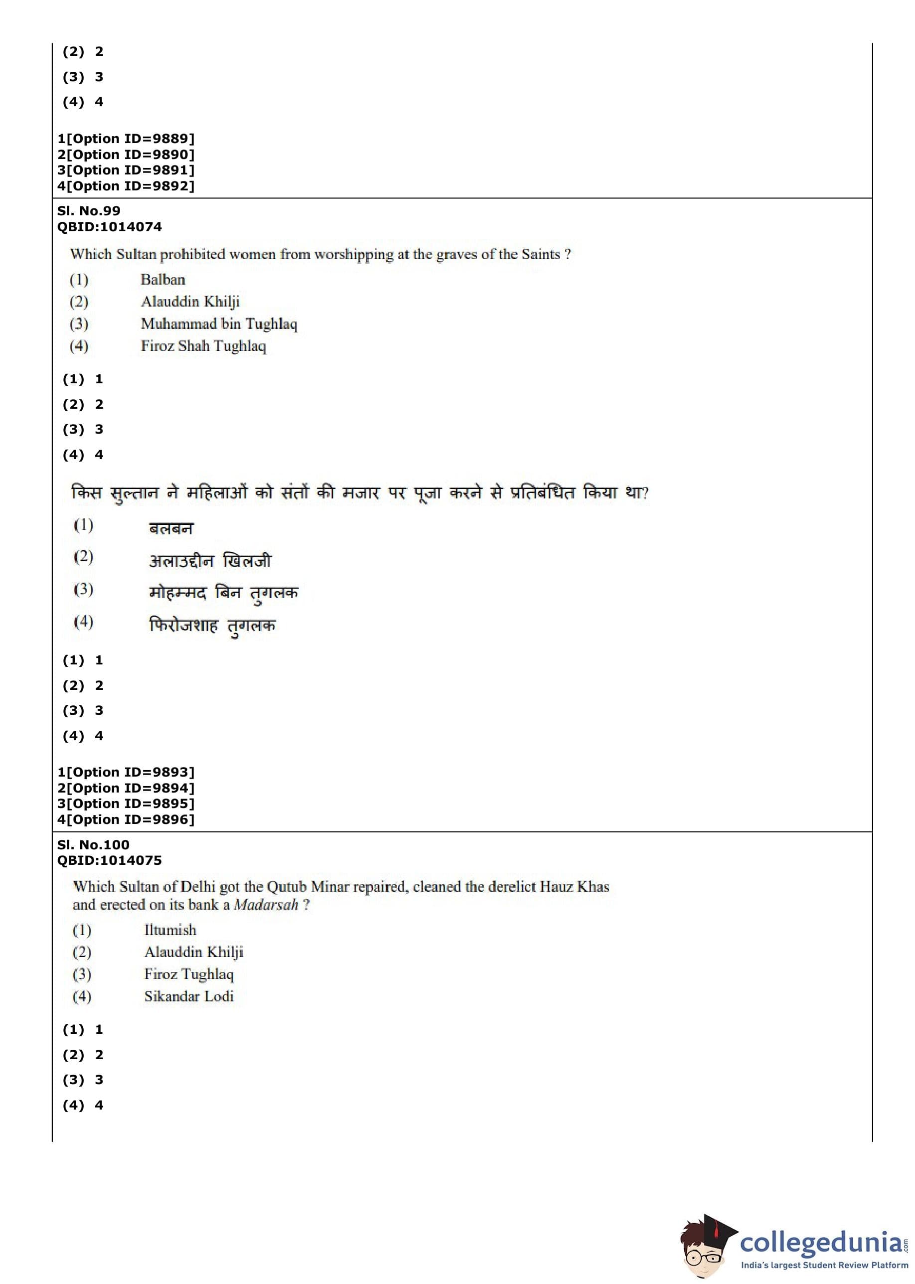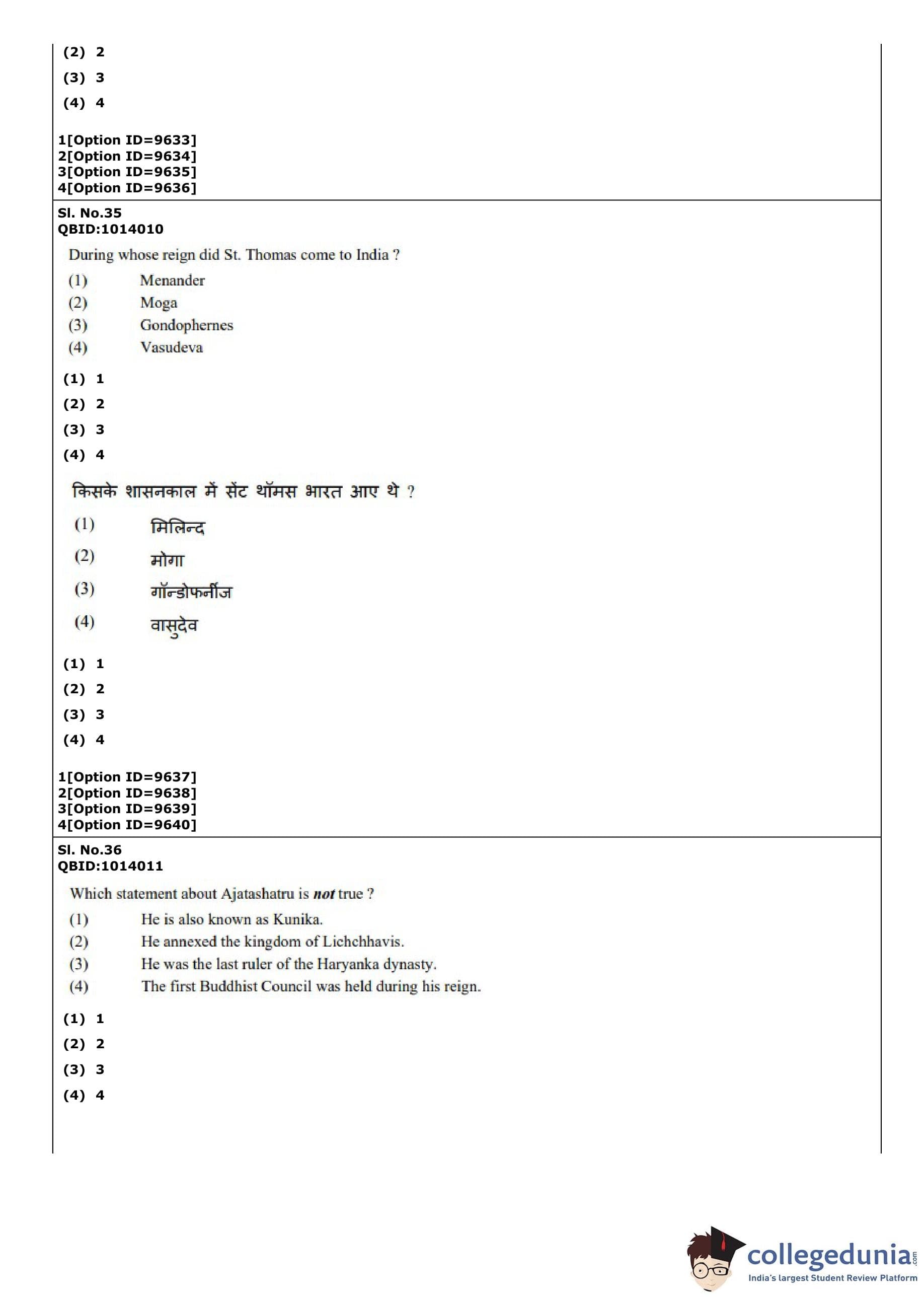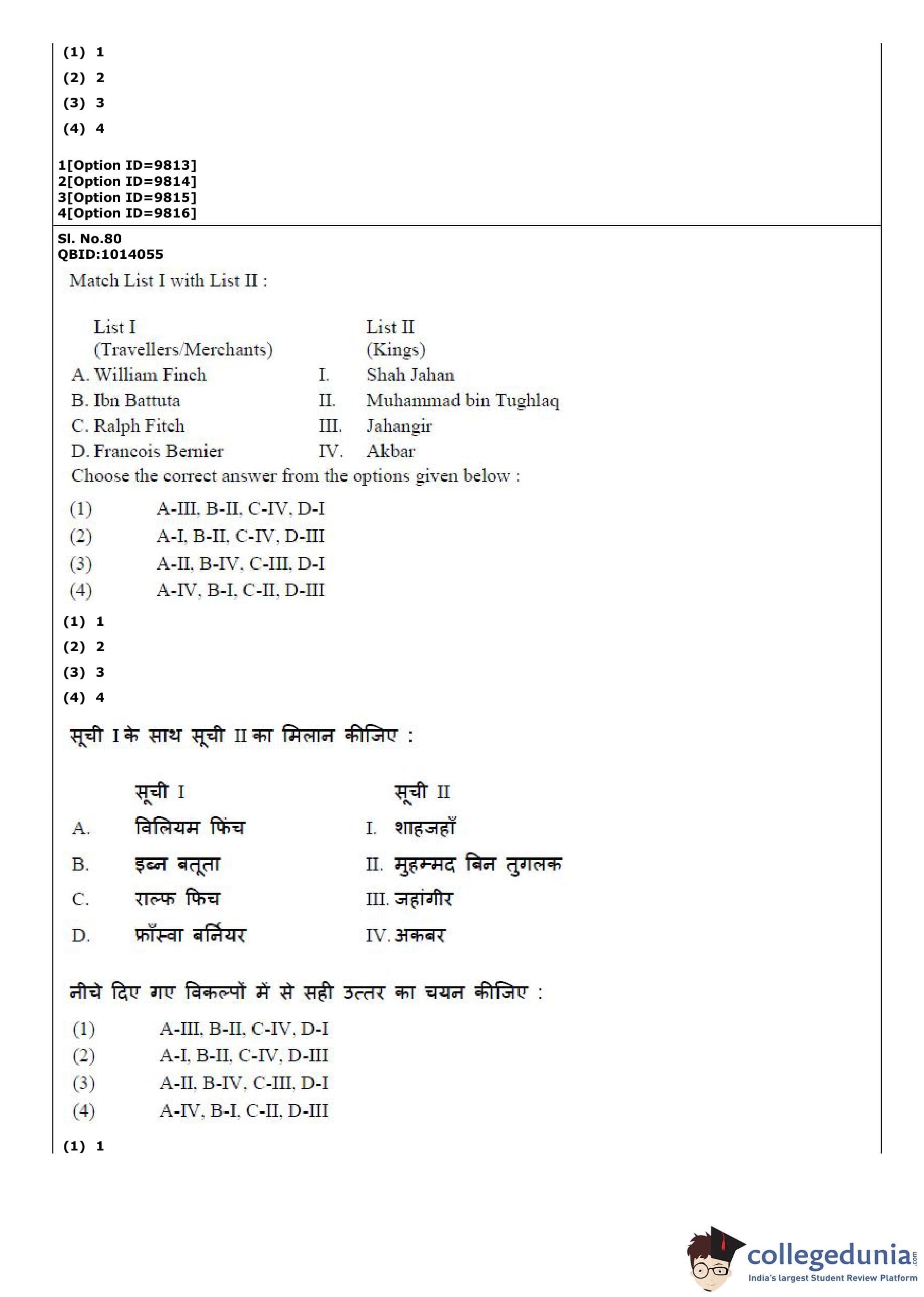 CUET PG 2022 History Question Paper with Answer Key PDF