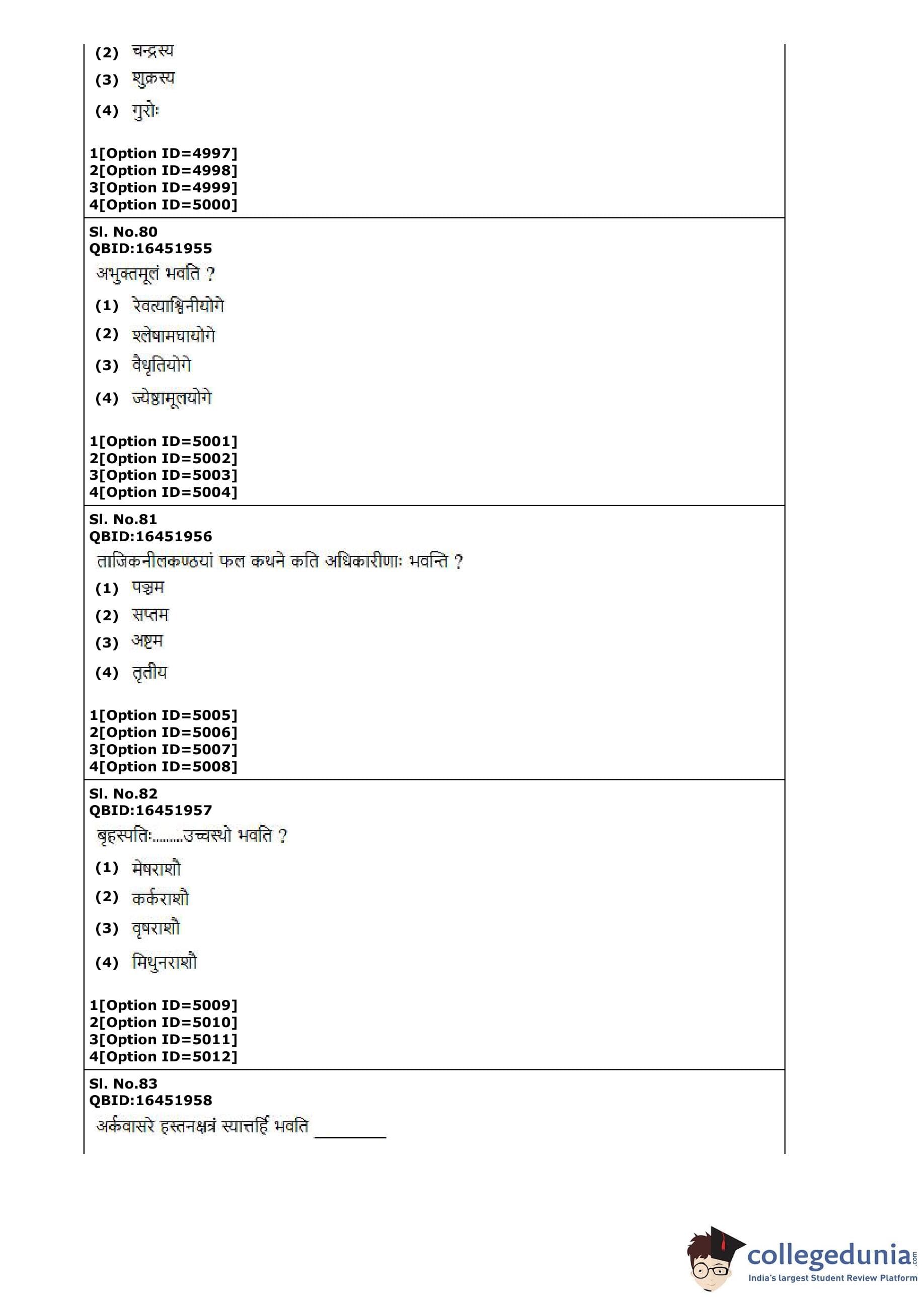 CUET PG 2022 Jyotish (Falit) Question Paper with Answer Key PDF