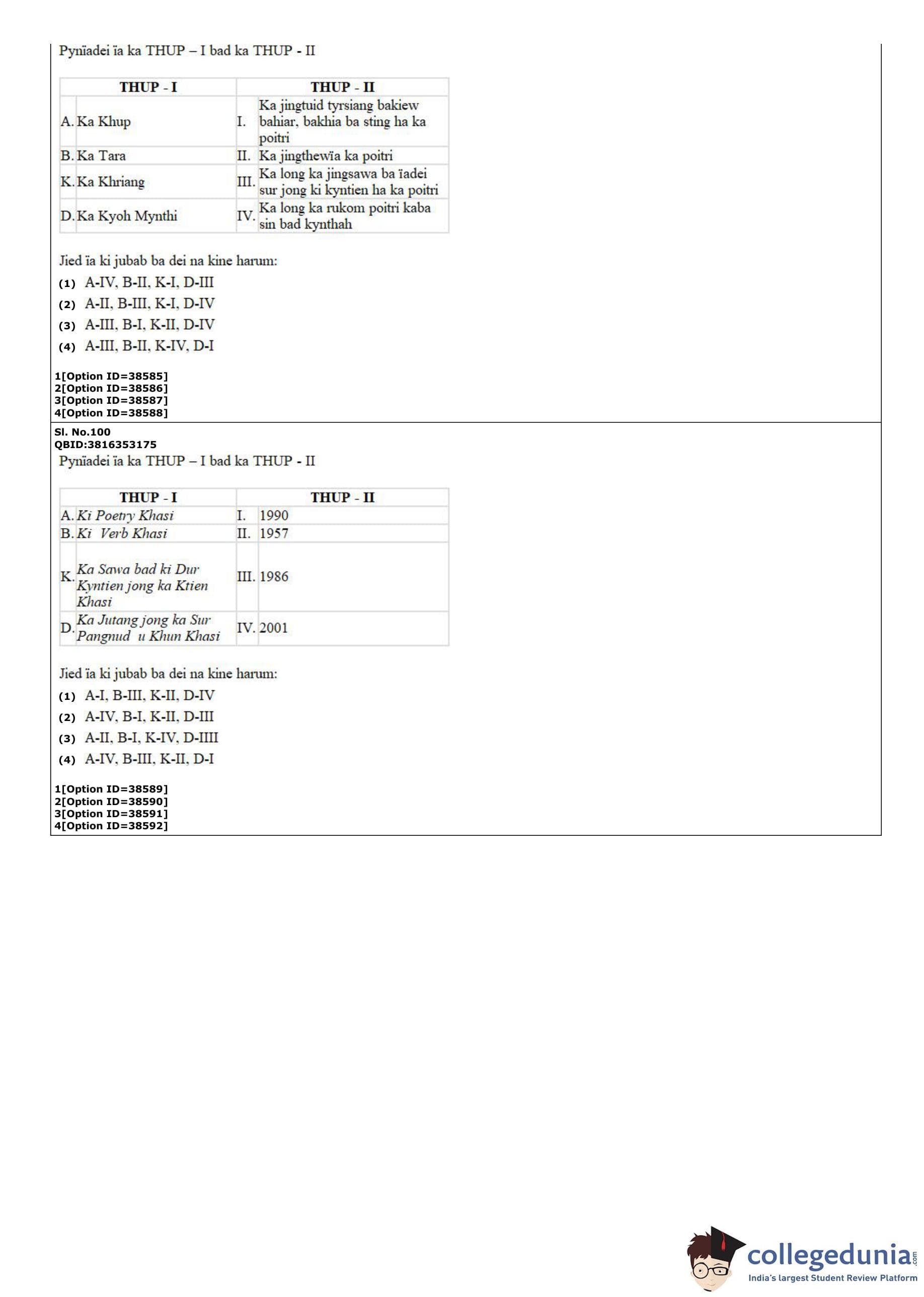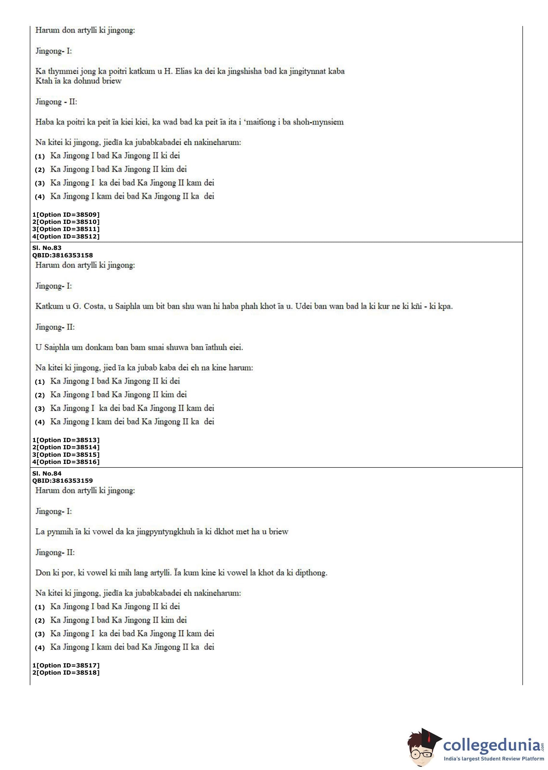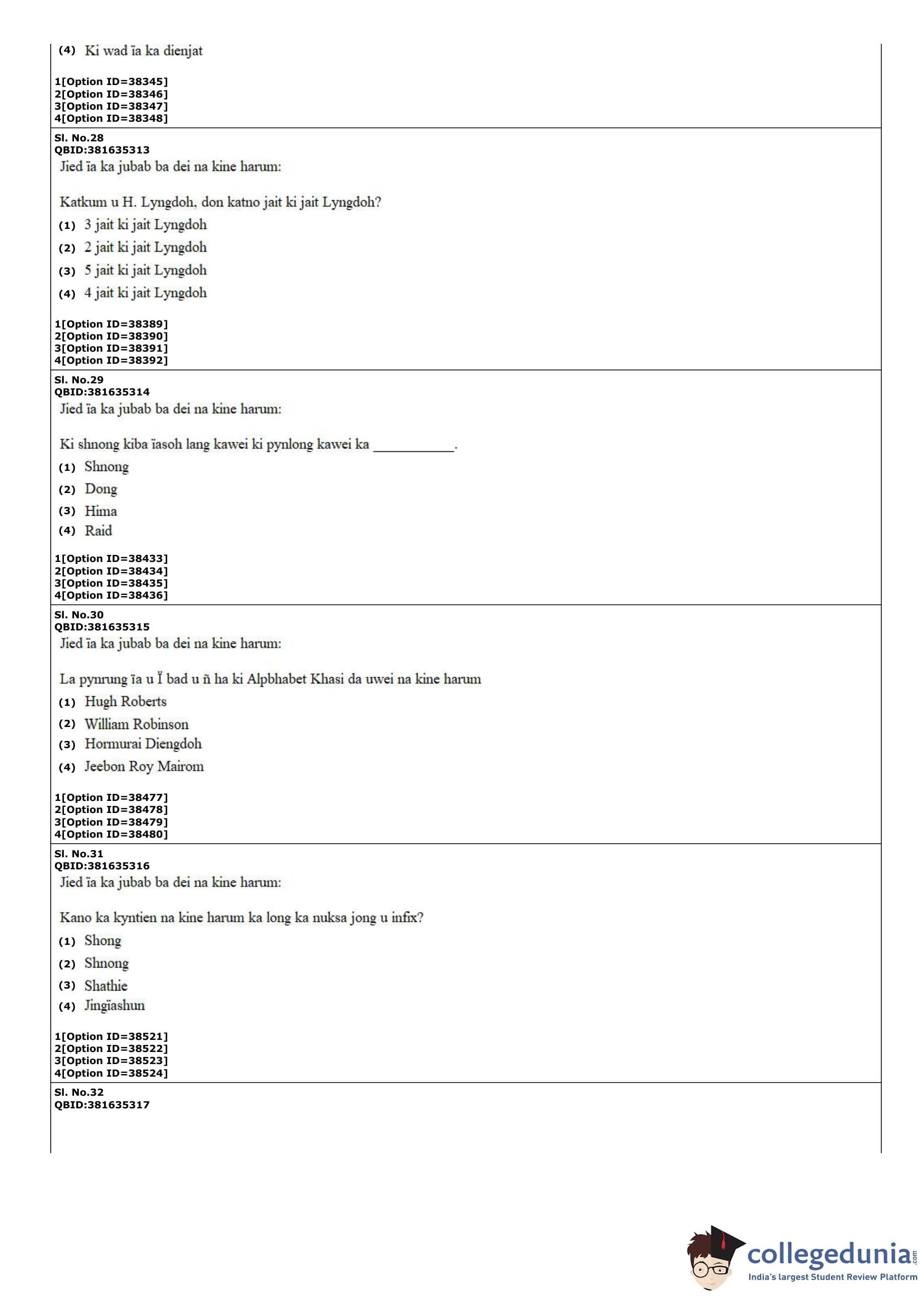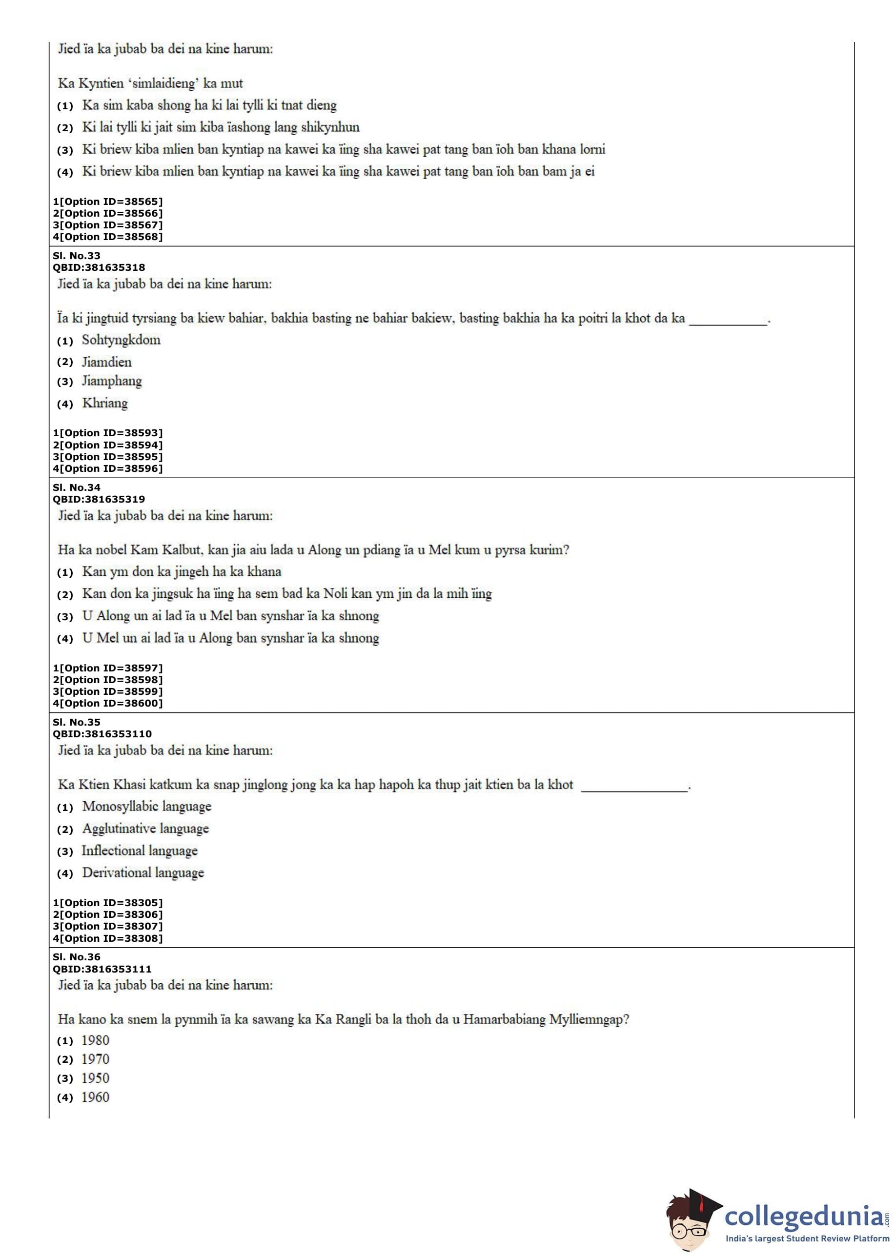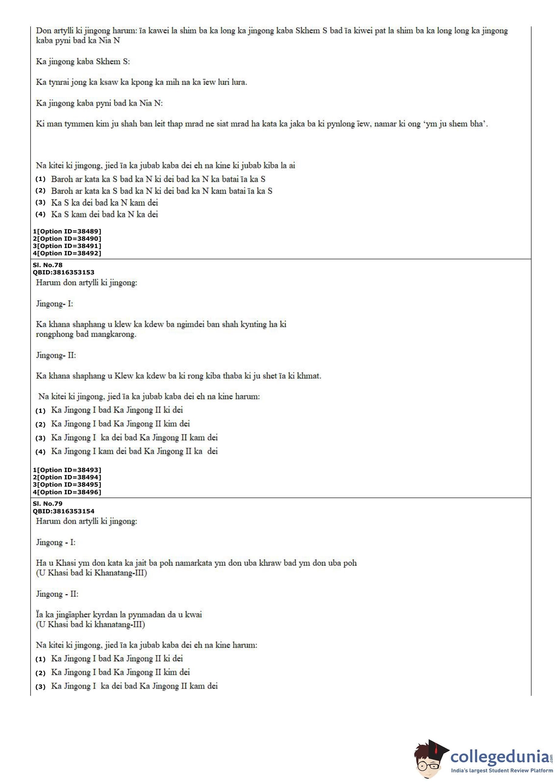 CUET PG 2022 Khasi Question Paper with Answer Key PDF