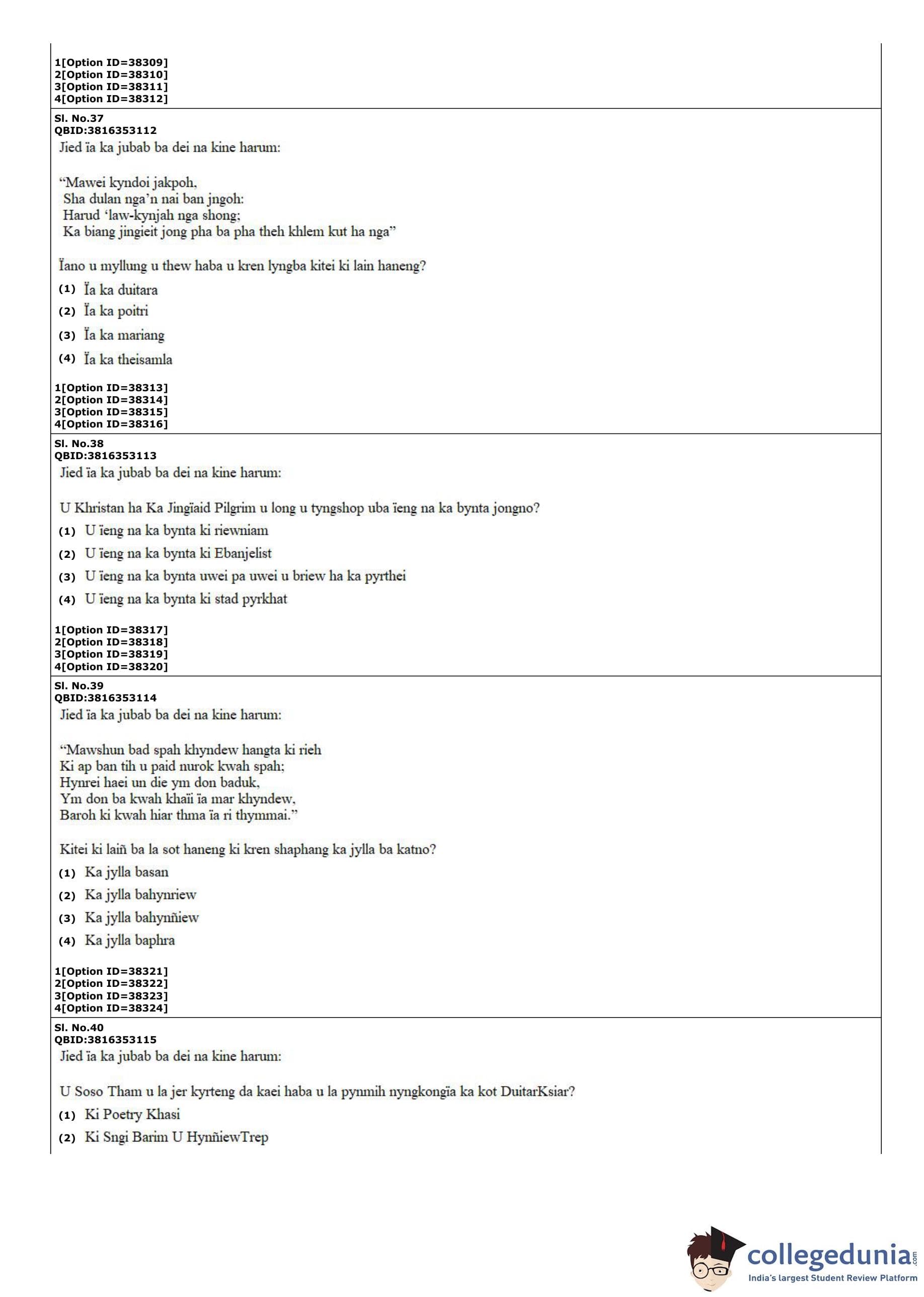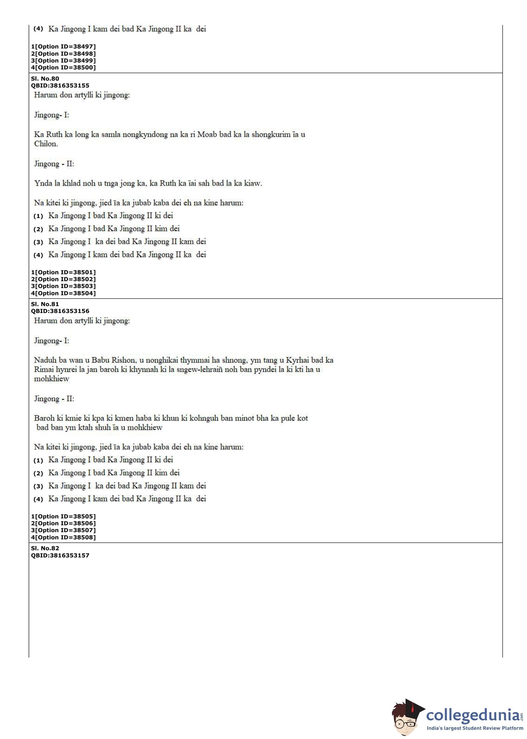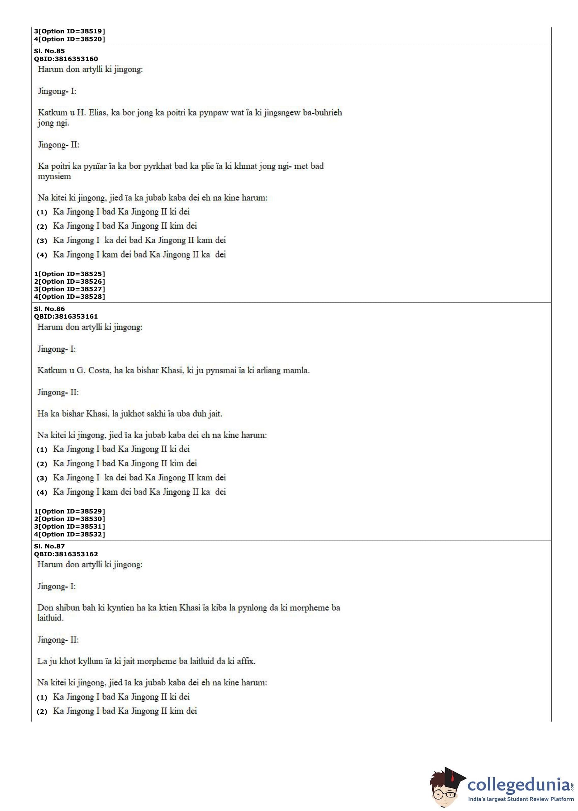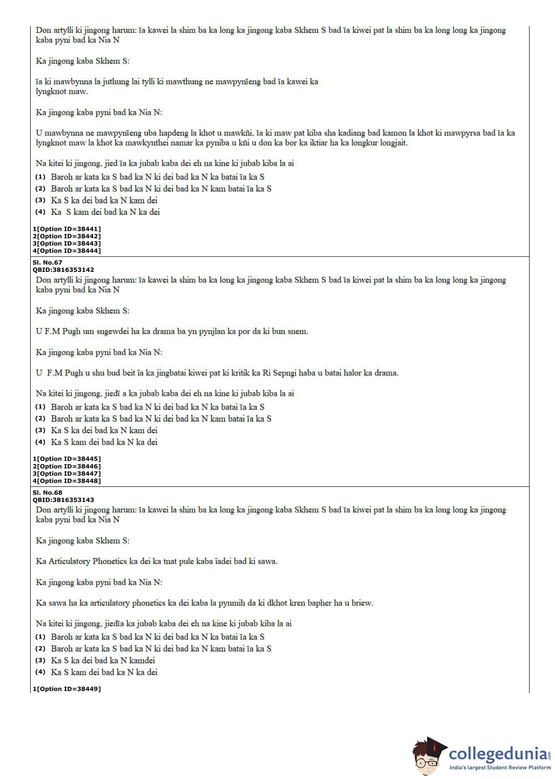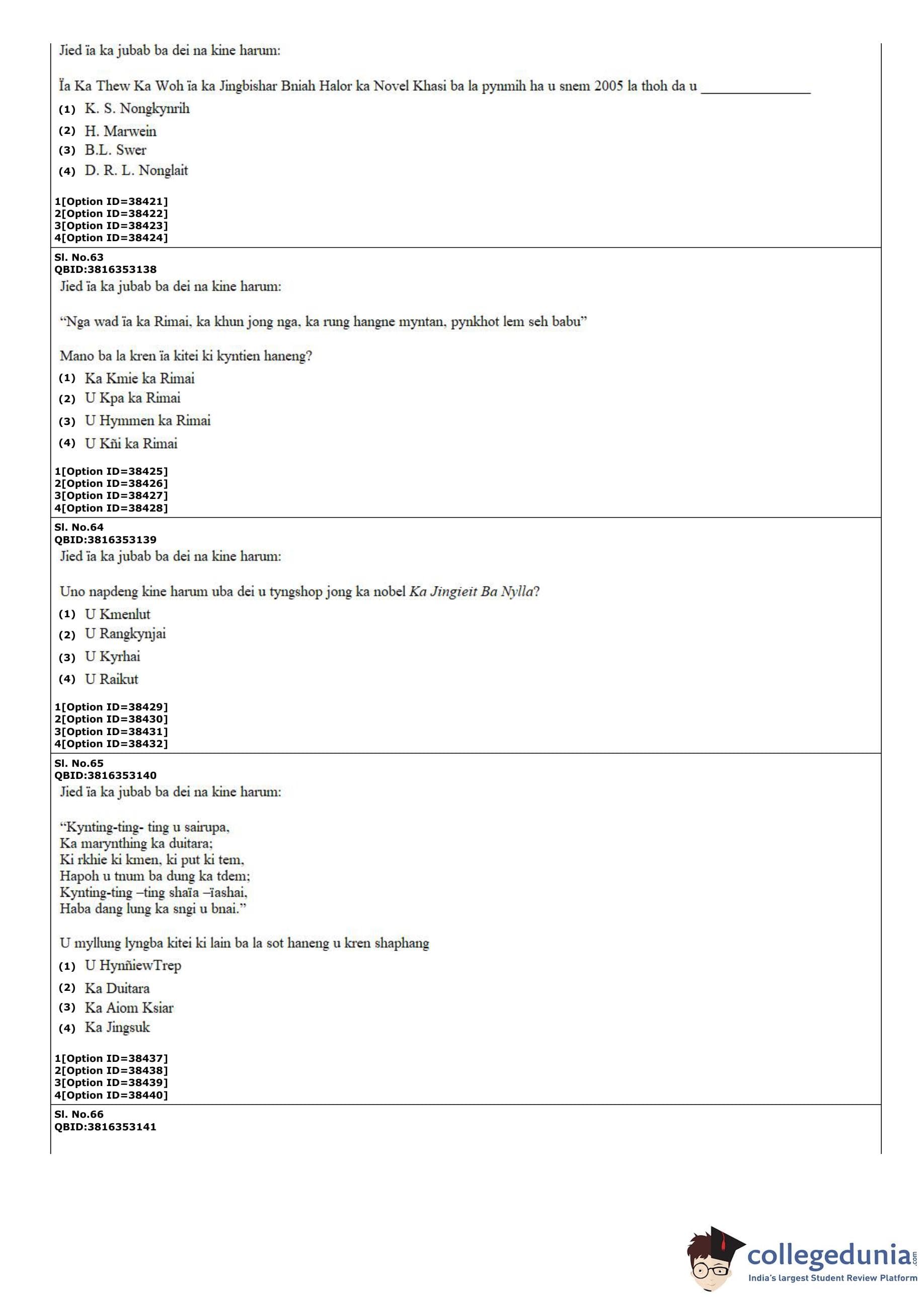 CUET PG 2022 Khasi Question Paper with Answer Key PDF