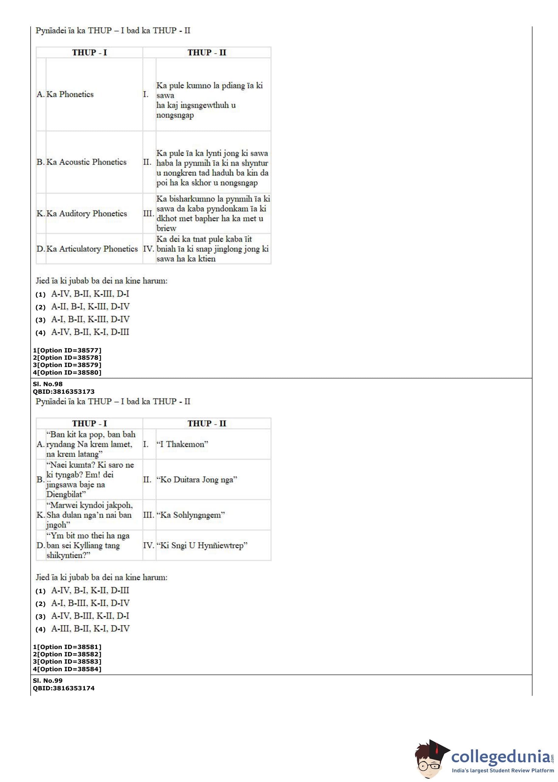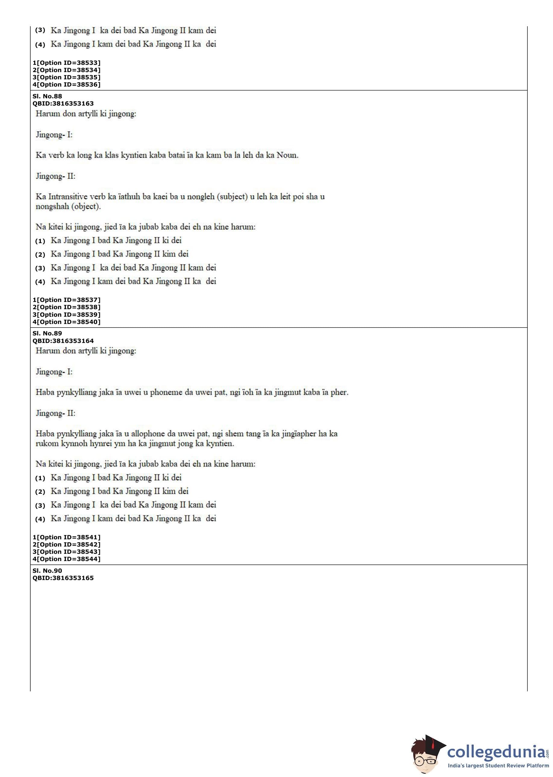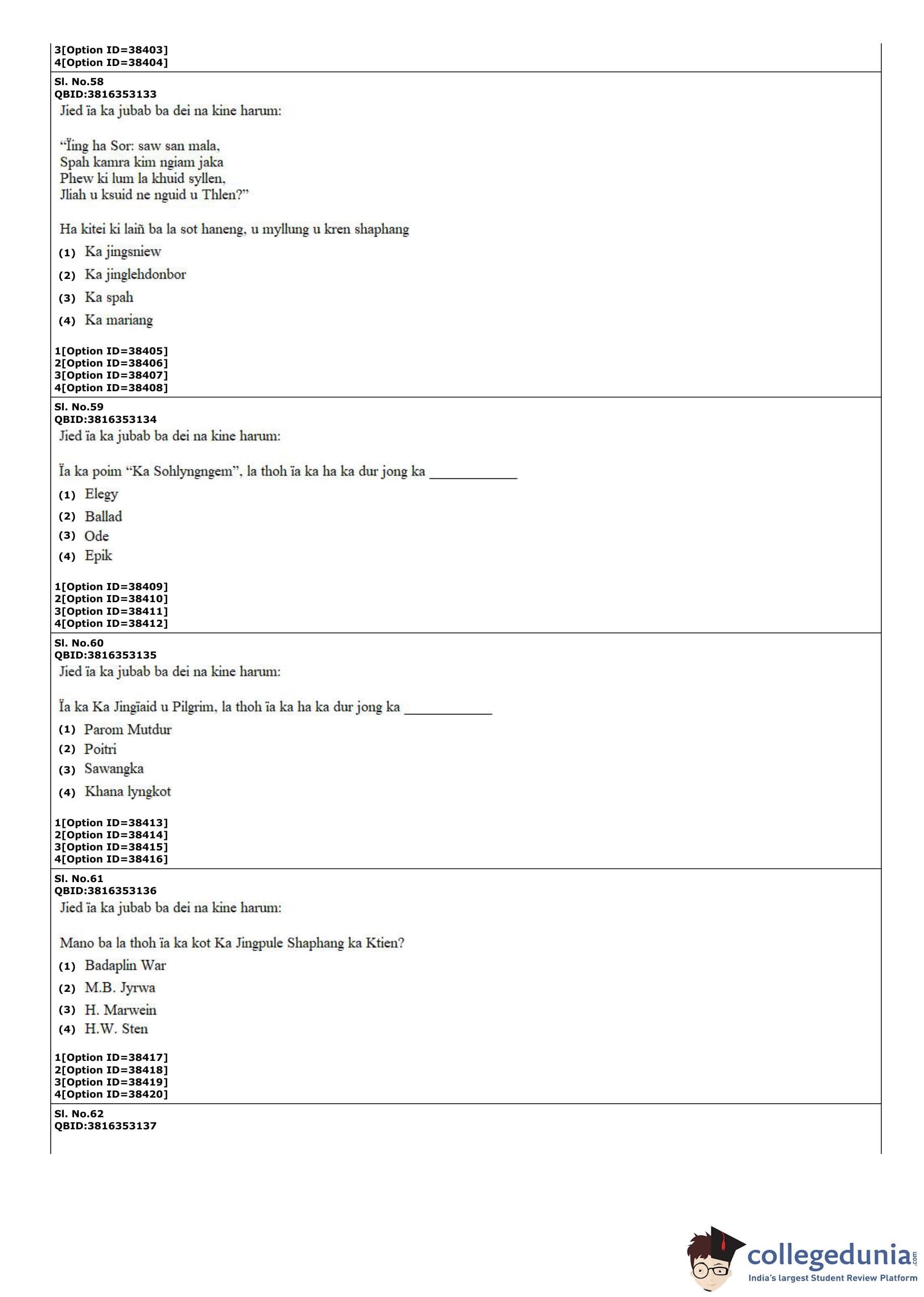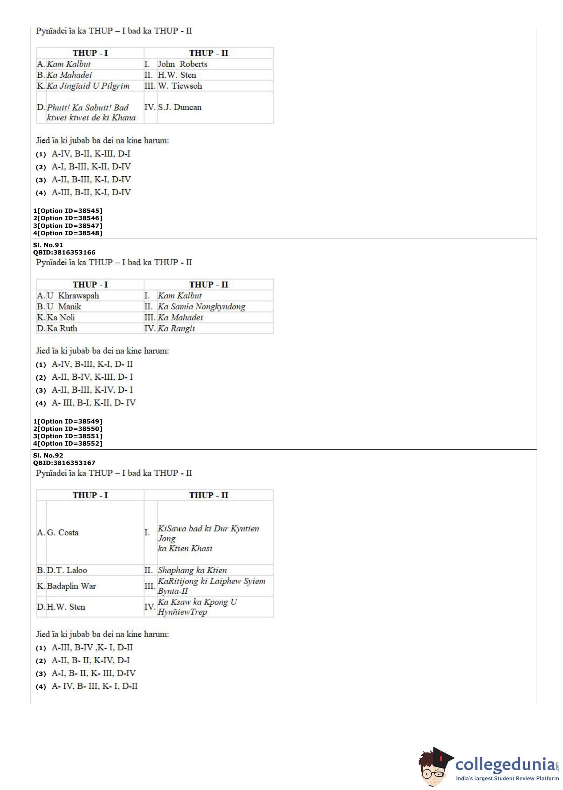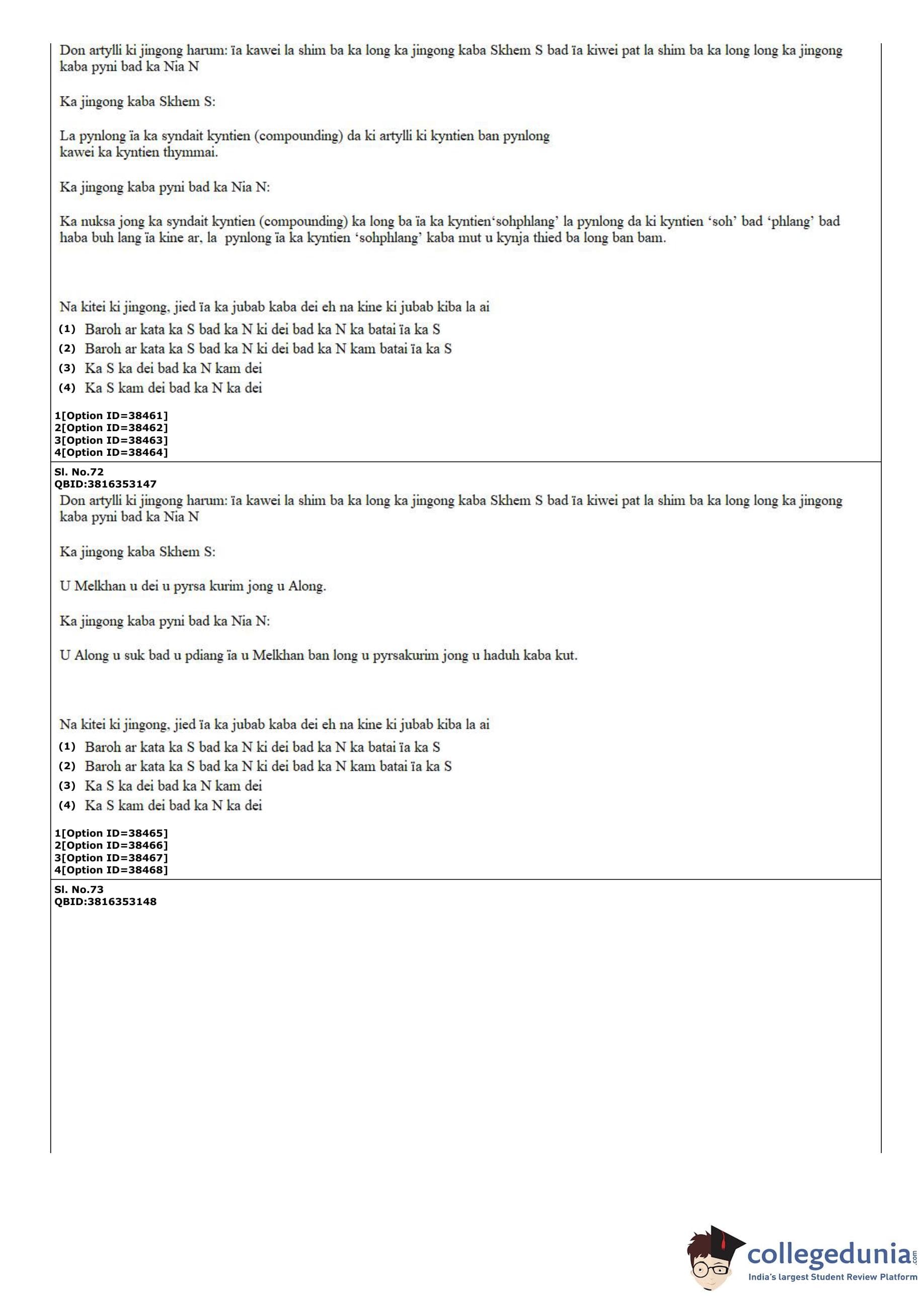 CUET PG 2022 Khasi Question Paper with Answer Key PDF