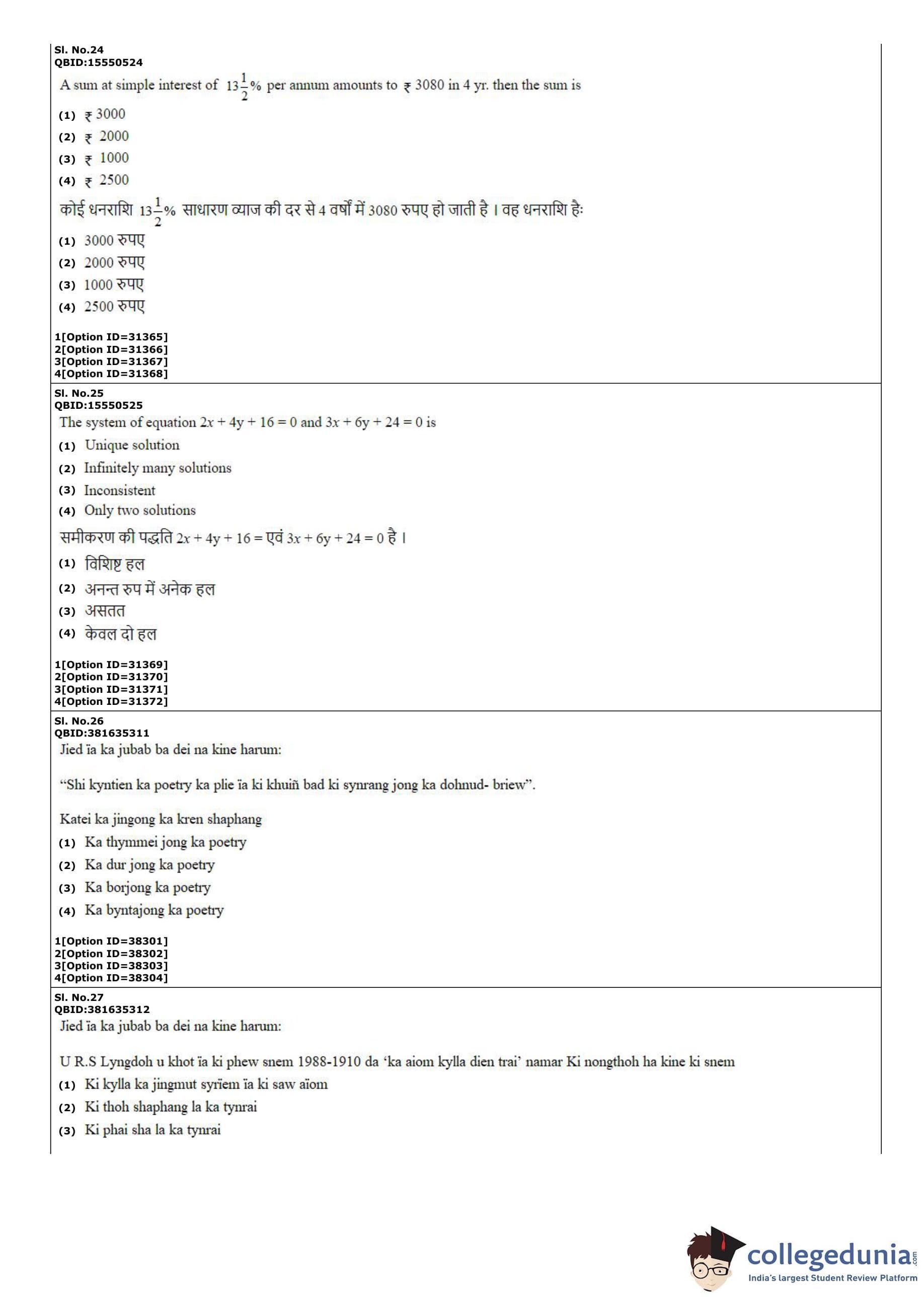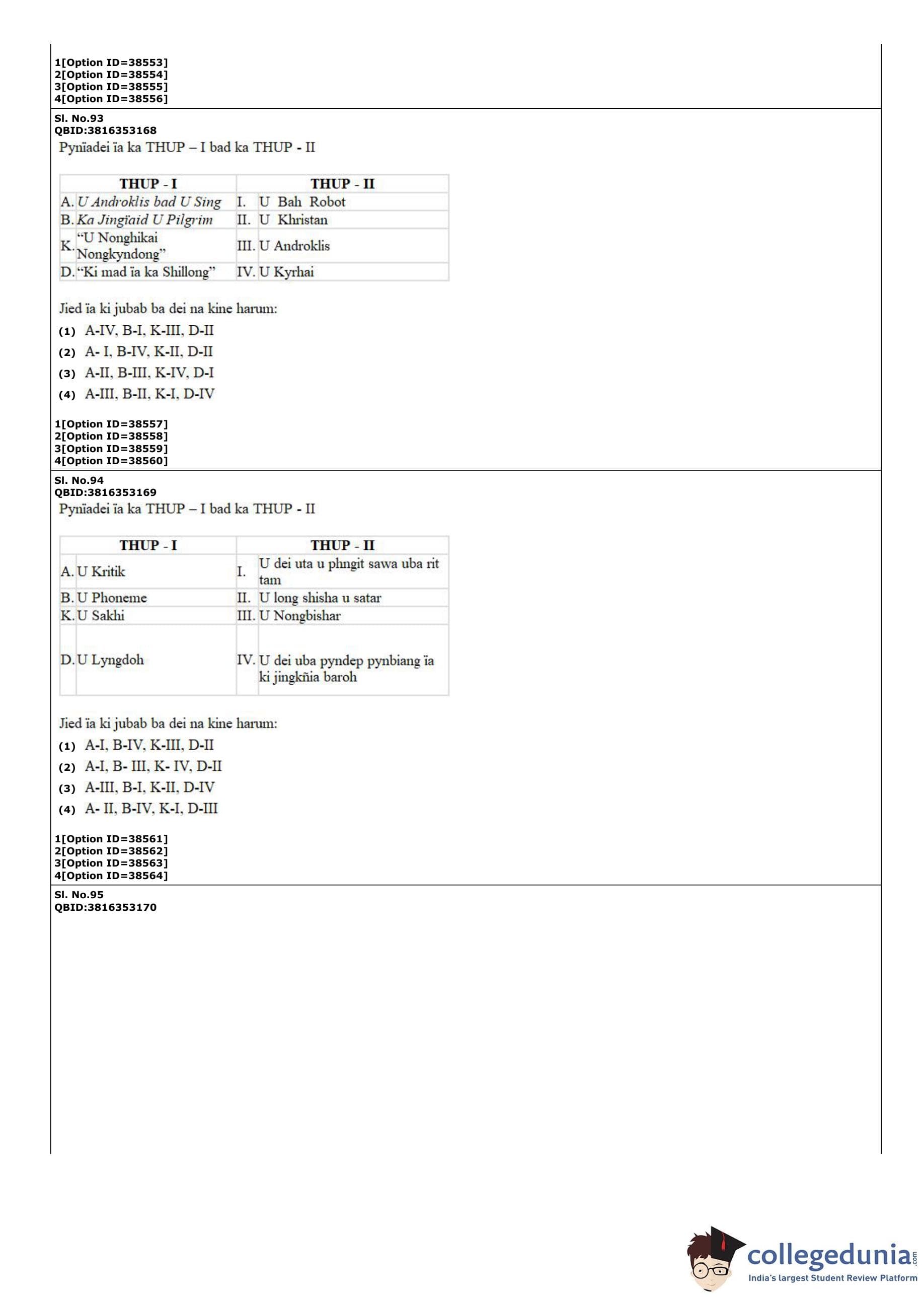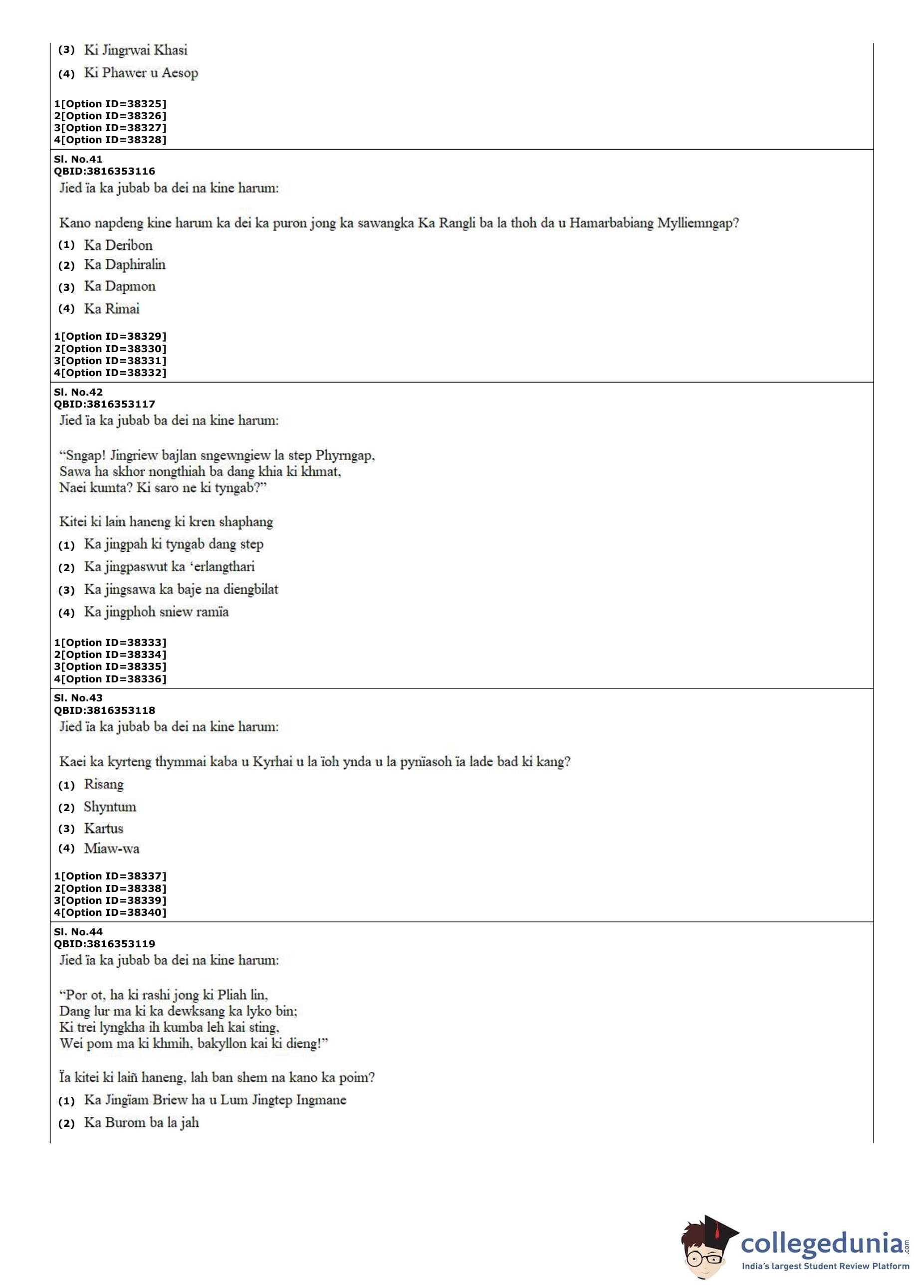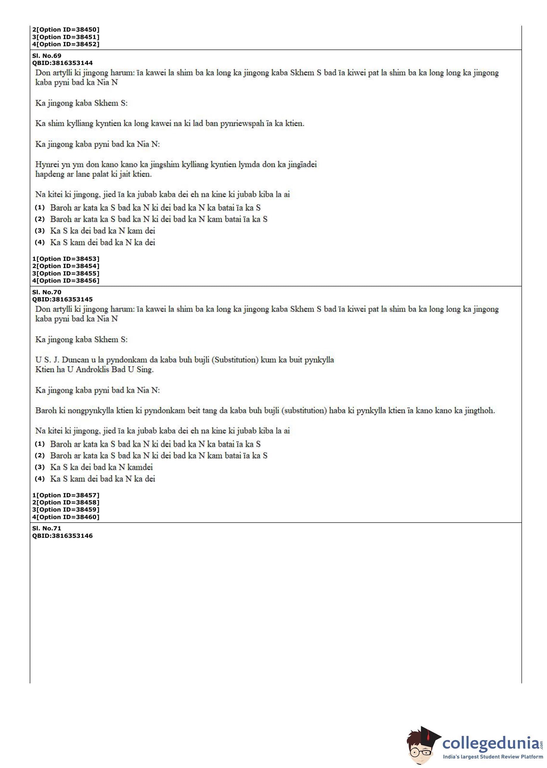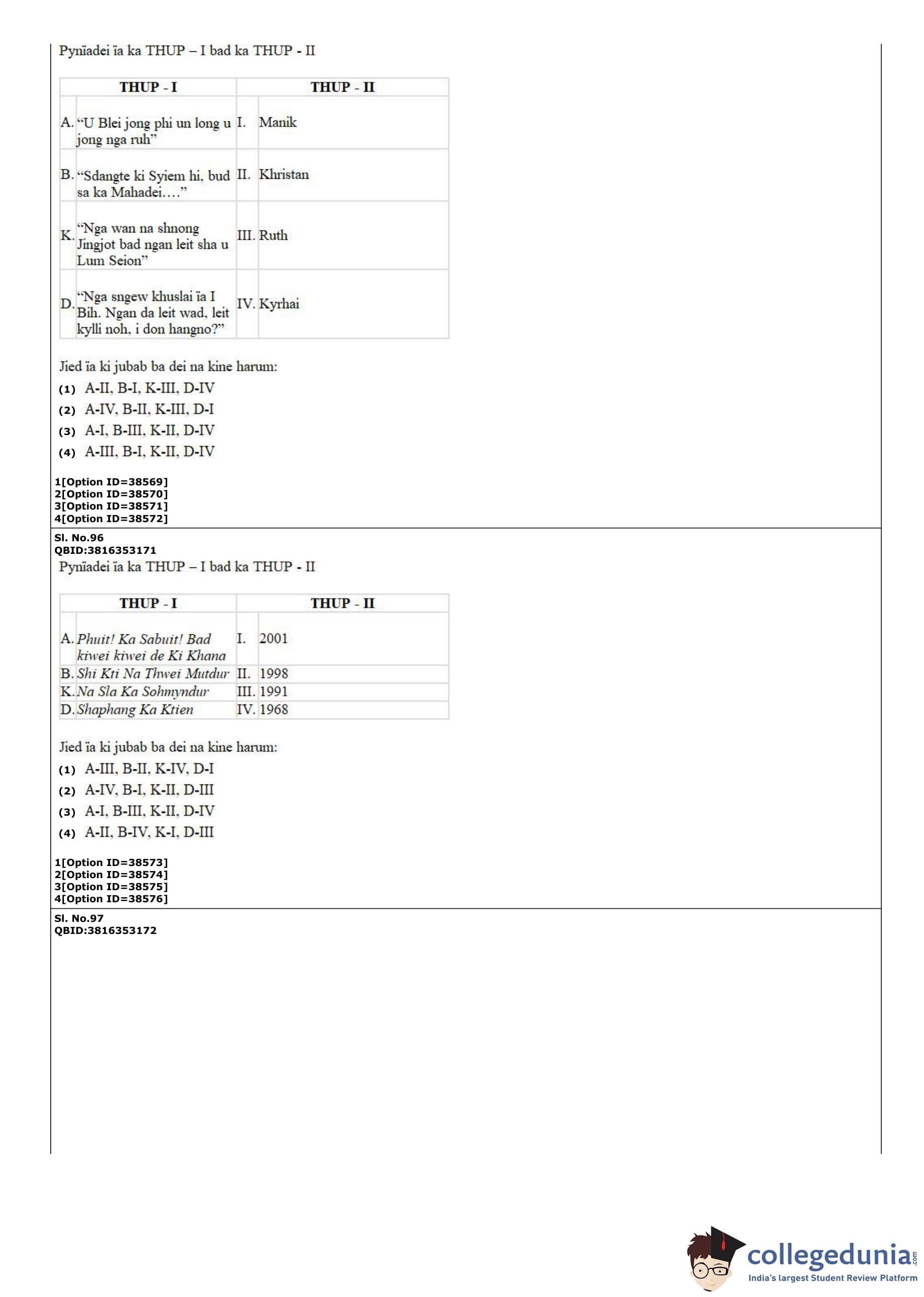 CUET PG 2022 Khasi Question Paper with Answer Key PDF