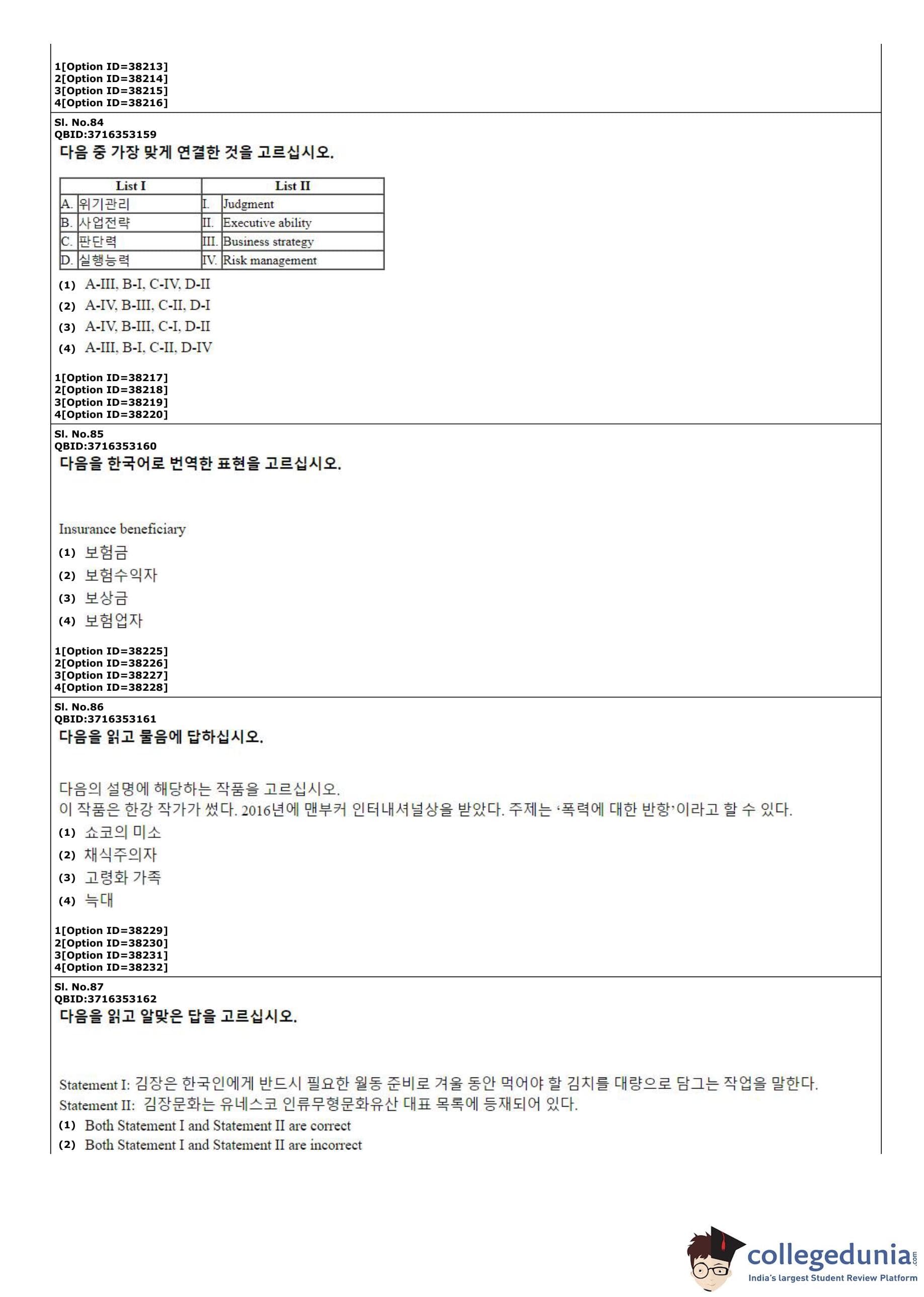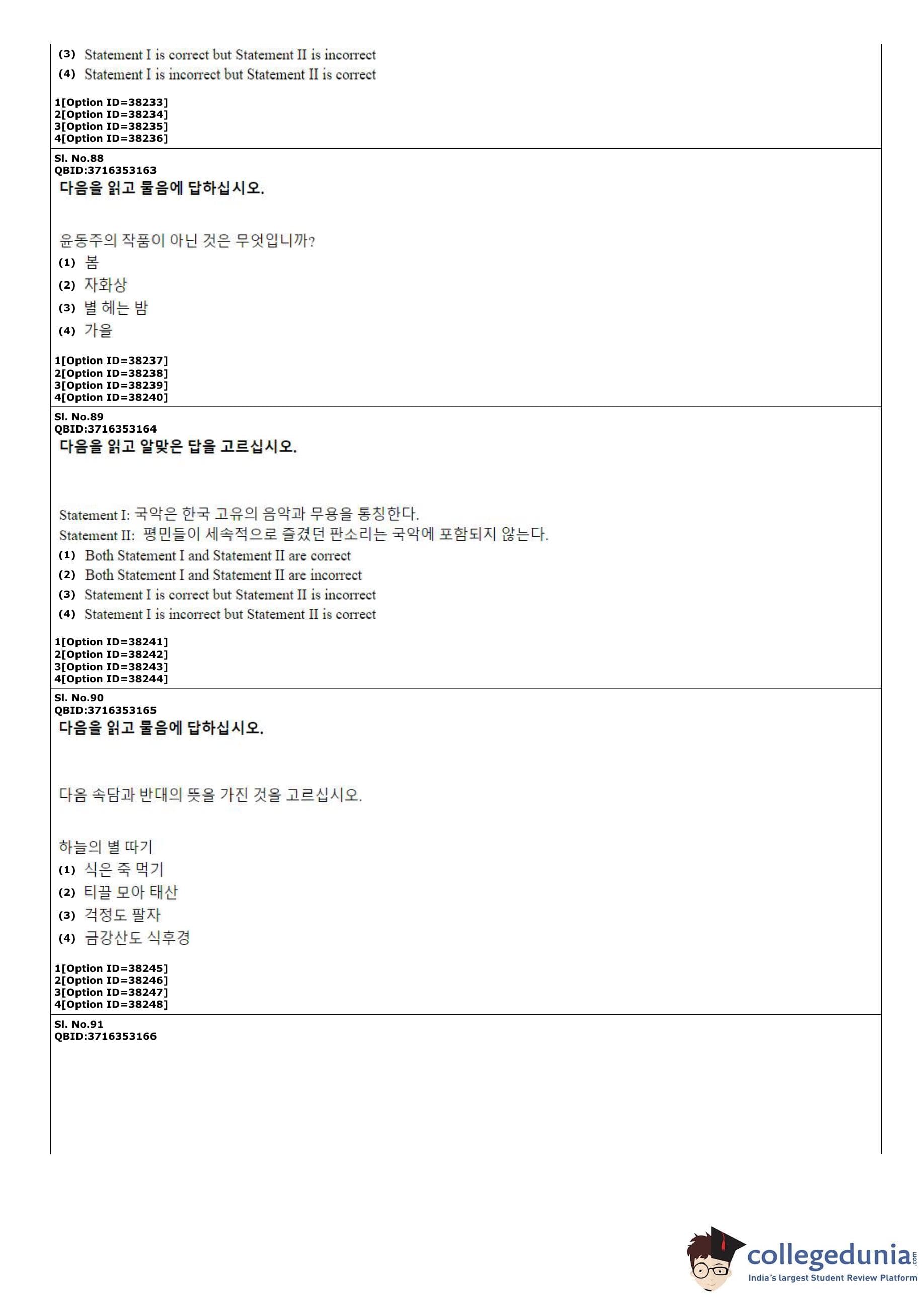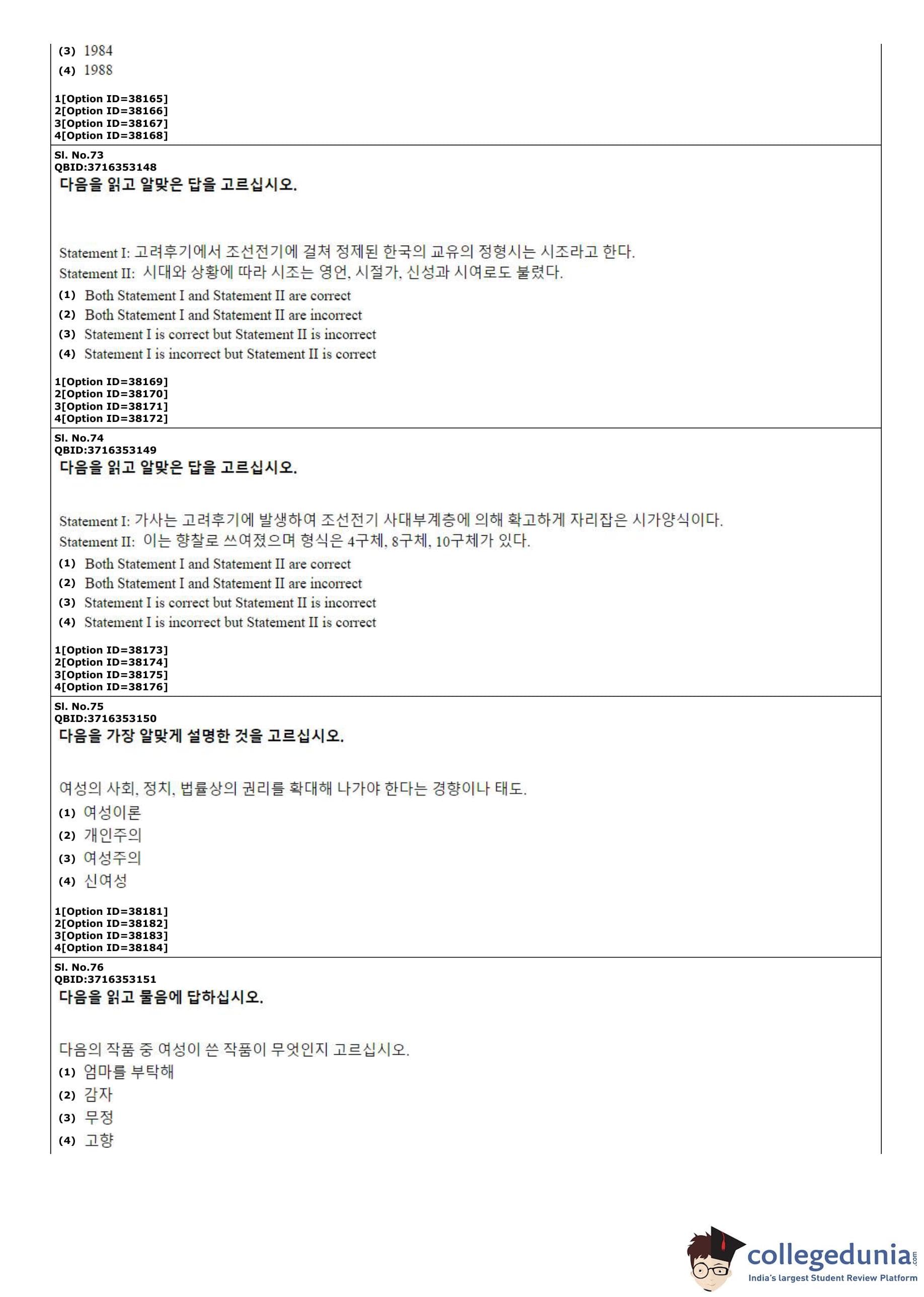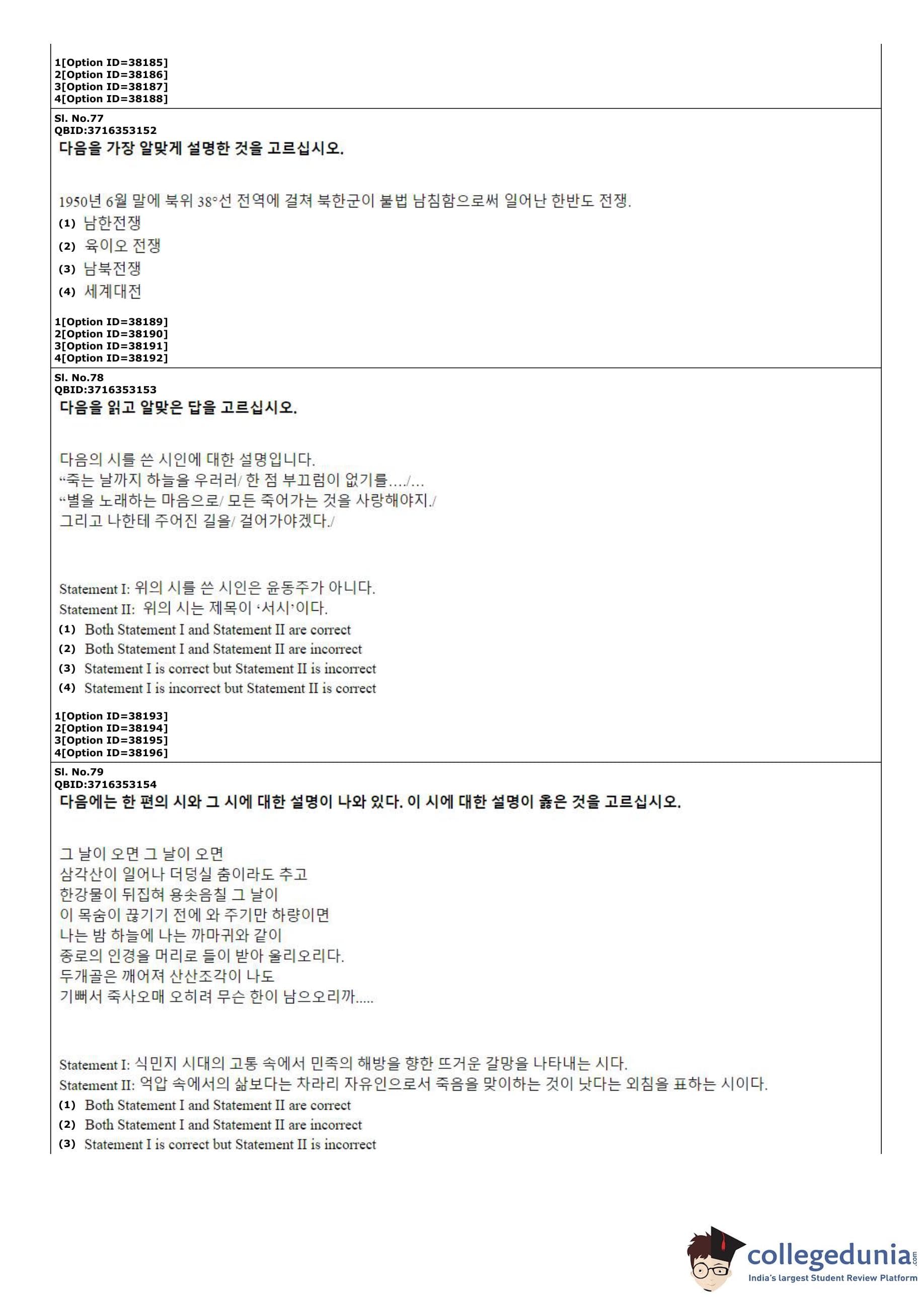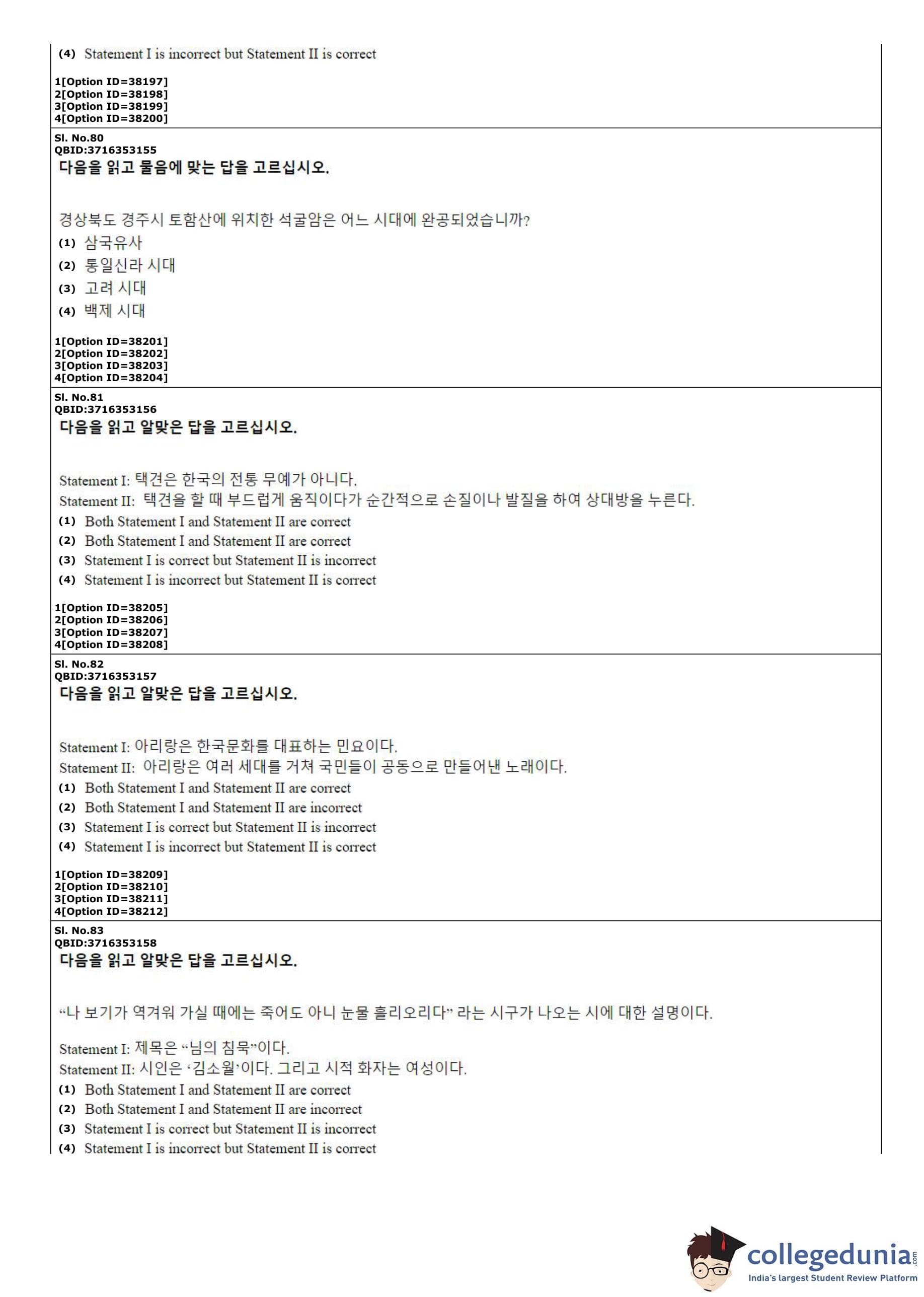 CUET PG 2022 Korean Question Paper with Answer Key PDF